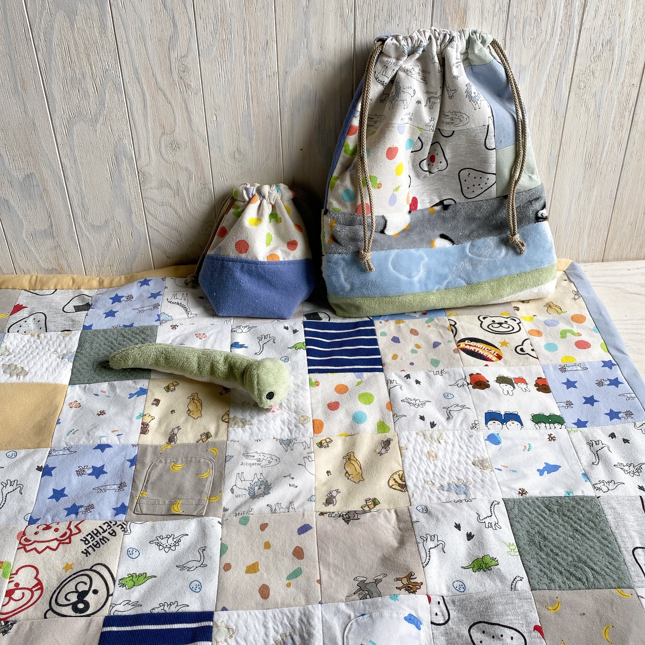 【オーダーのお品】ベビー服リメイク(ブランケット&ポーチ&巾着)