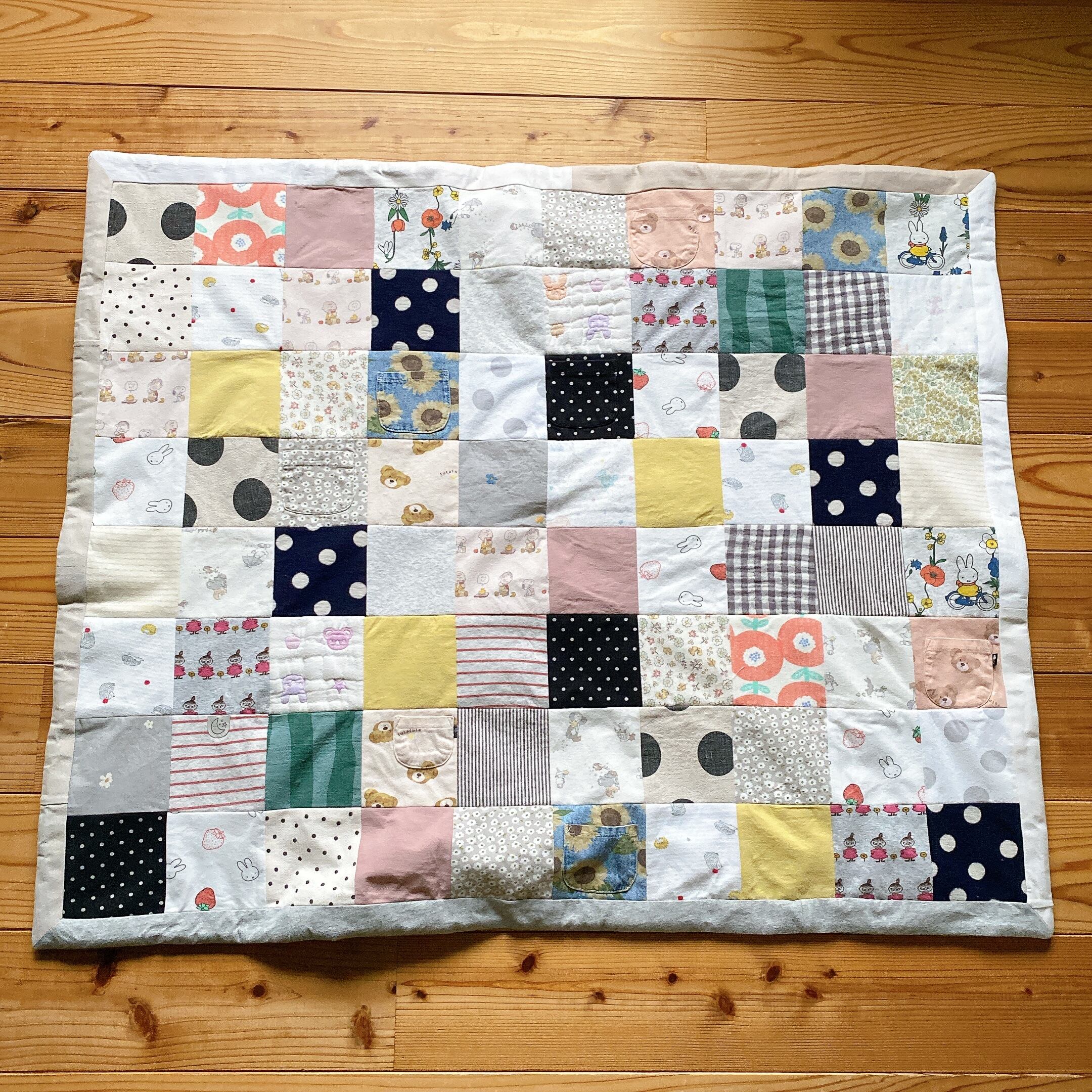 サイズアウトしたベビー服をブランケットにリメイクしました。