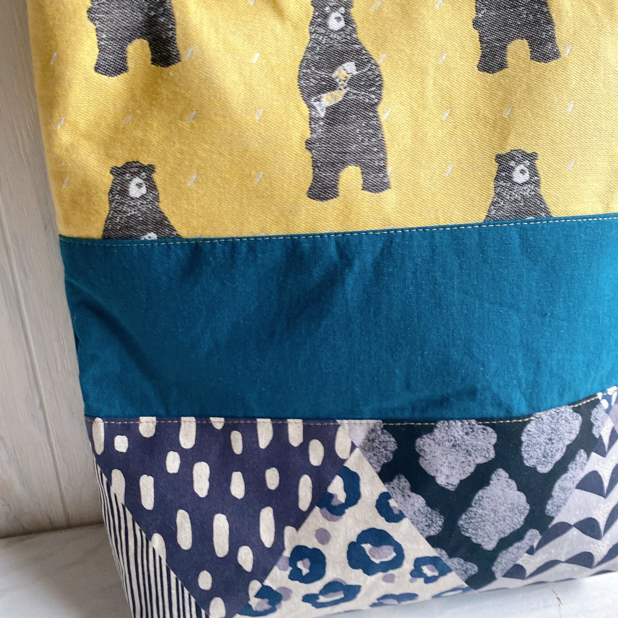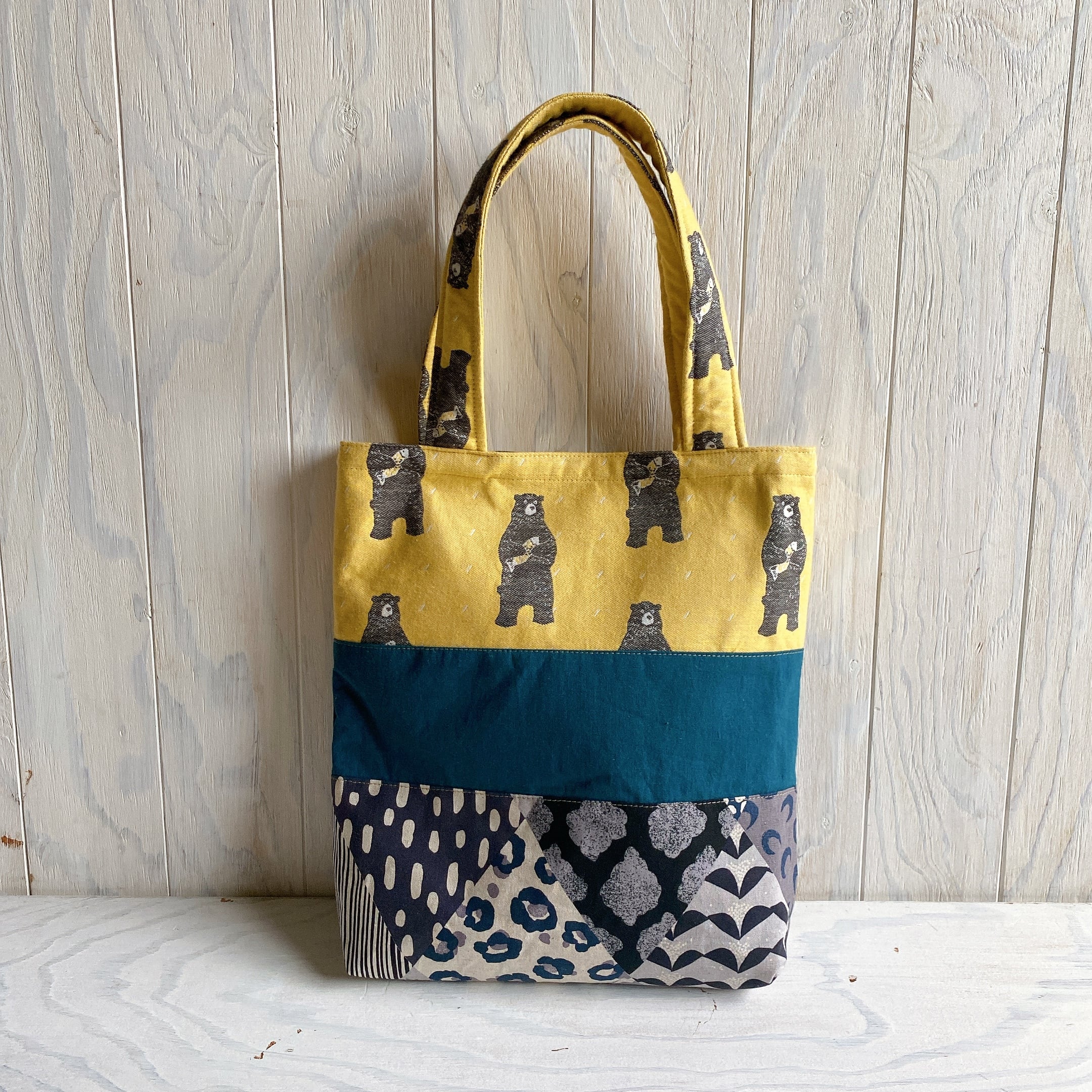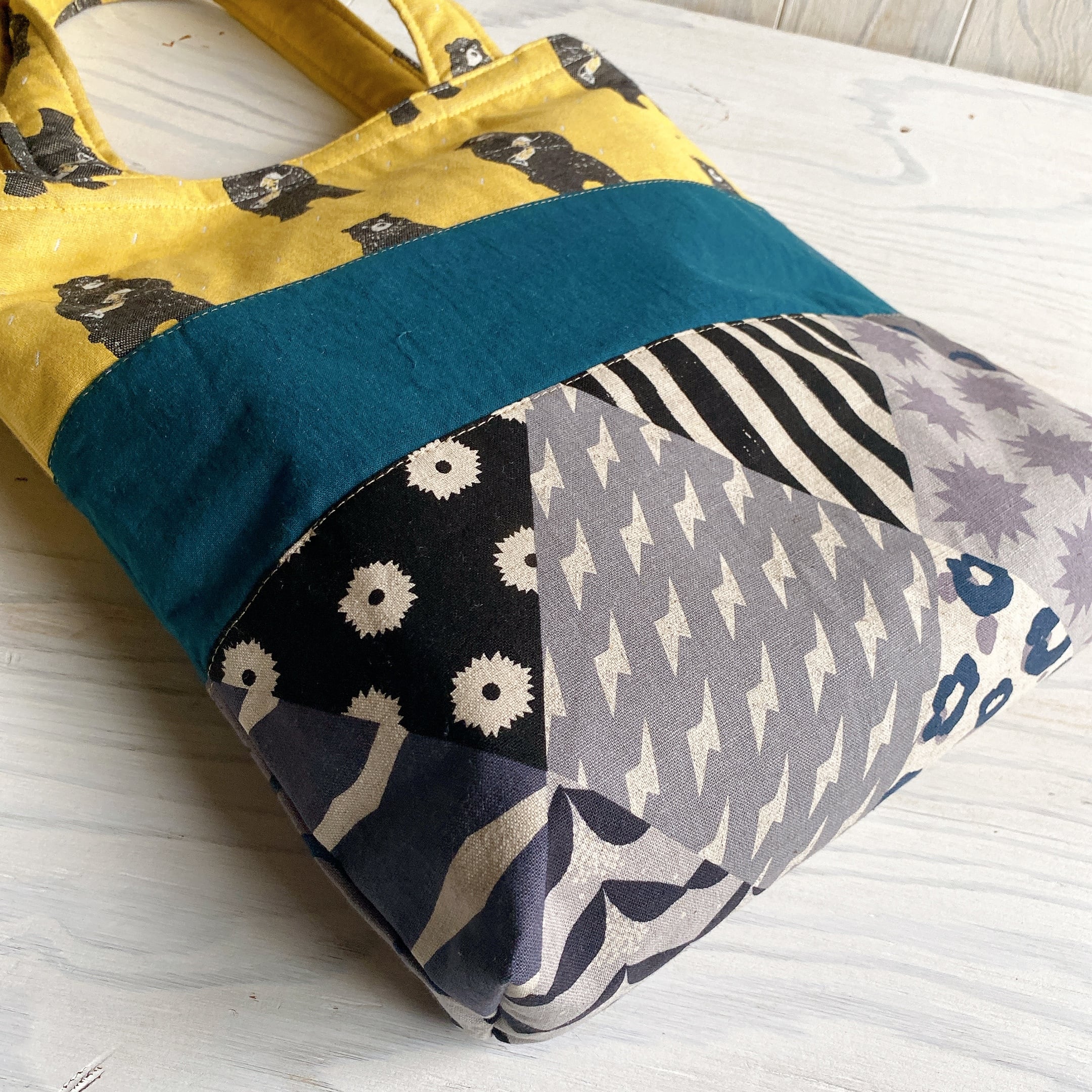 3種類の生地をつなぎ合わせたオンリーワンのバックです。