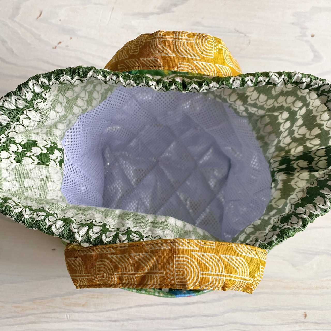裏地には保冷保温効果のあるアルミシートを使用したキルティングの生地を使用しています。