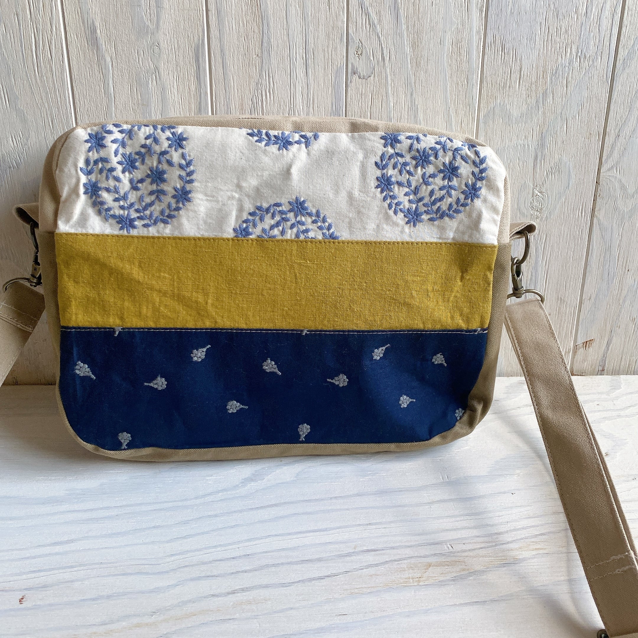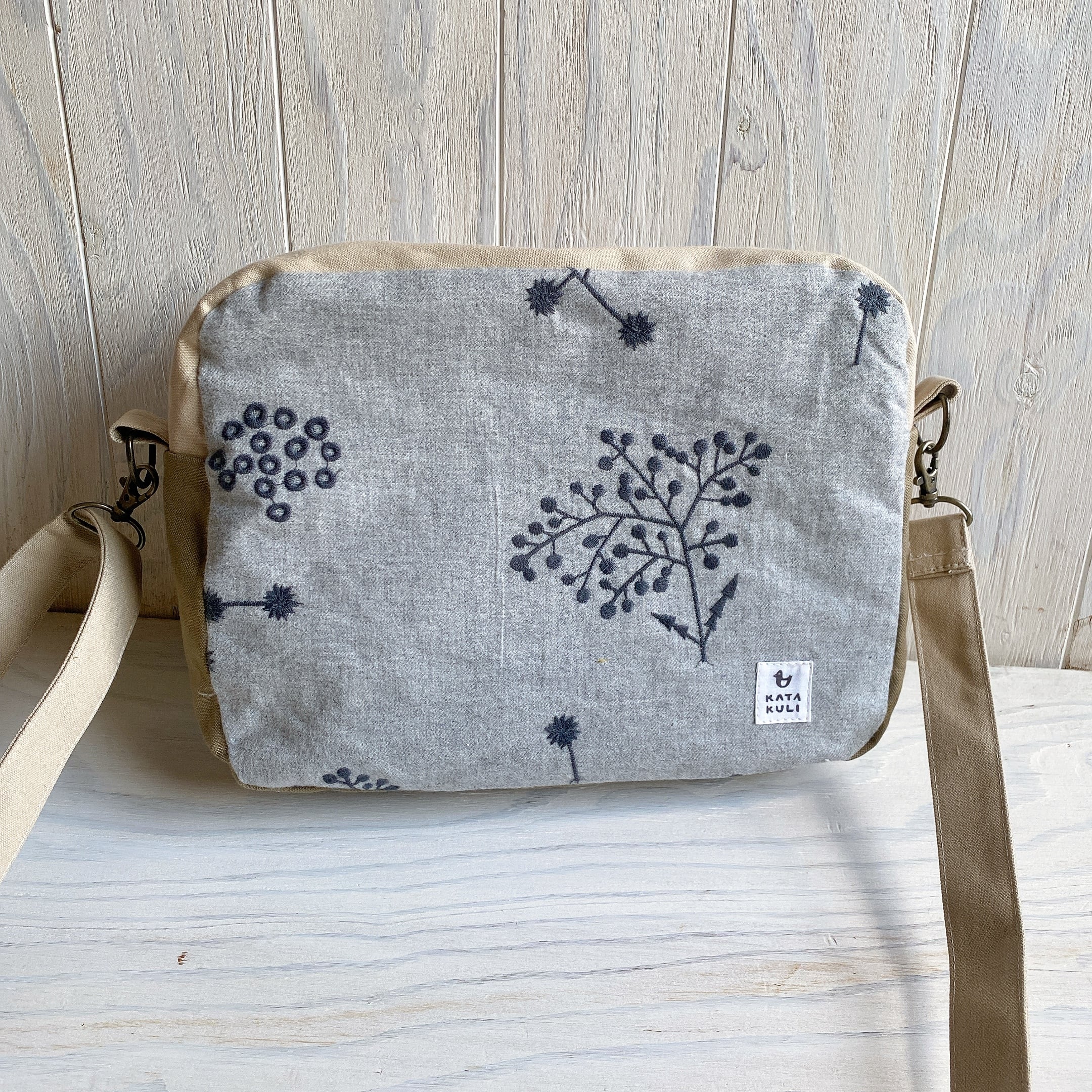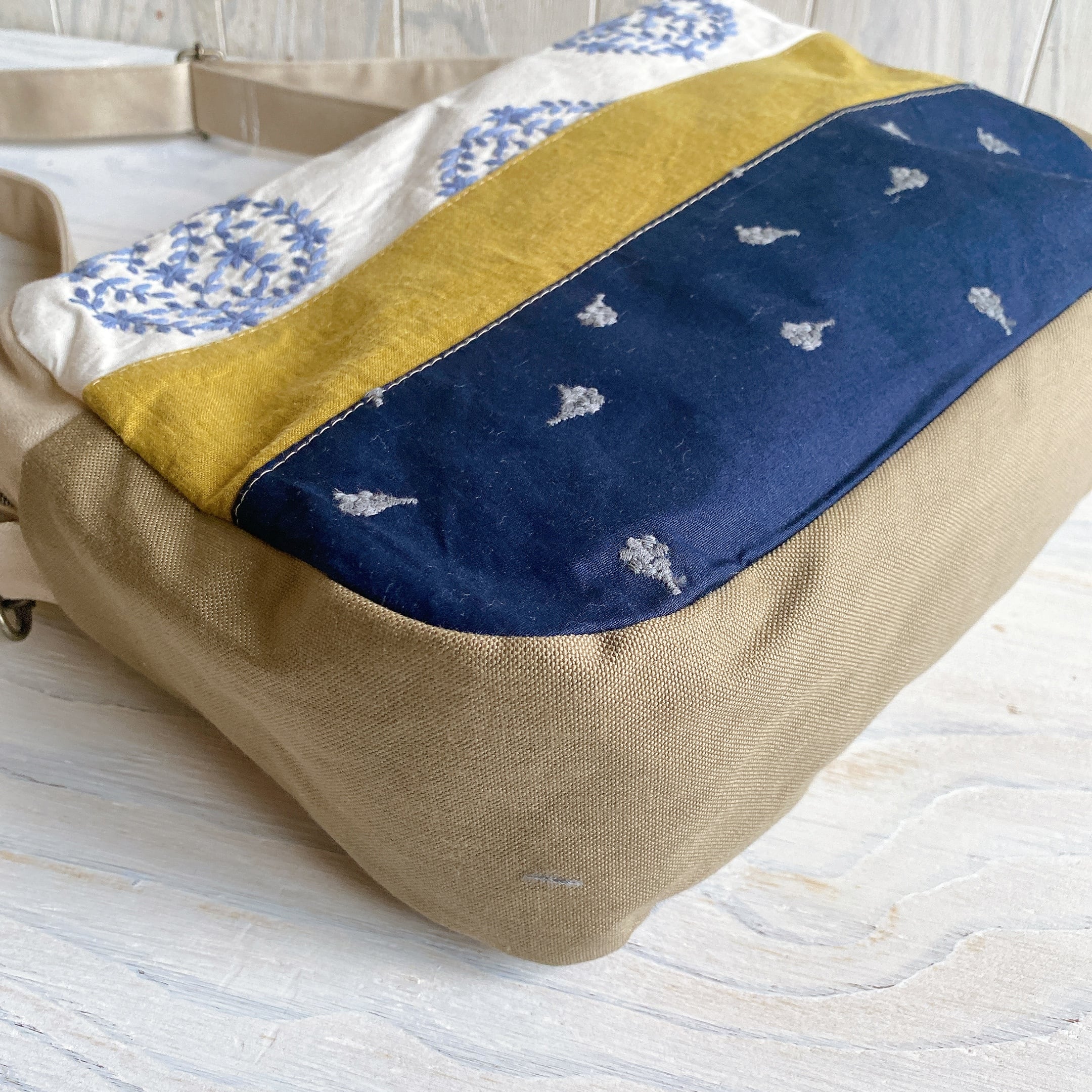 裏地は綿麻キャンバス、マチの部分はハンプの生地を使っていますのでハリがあります