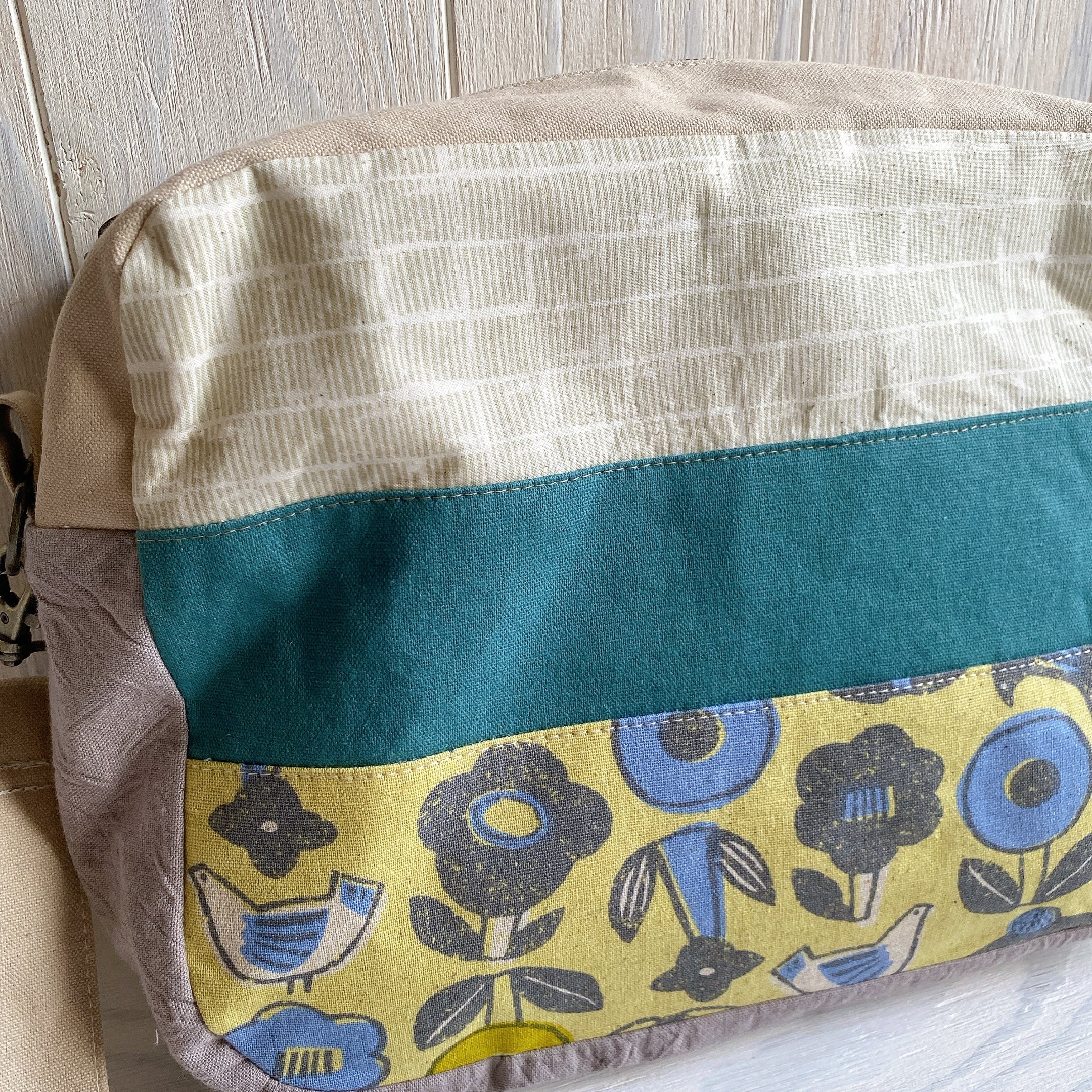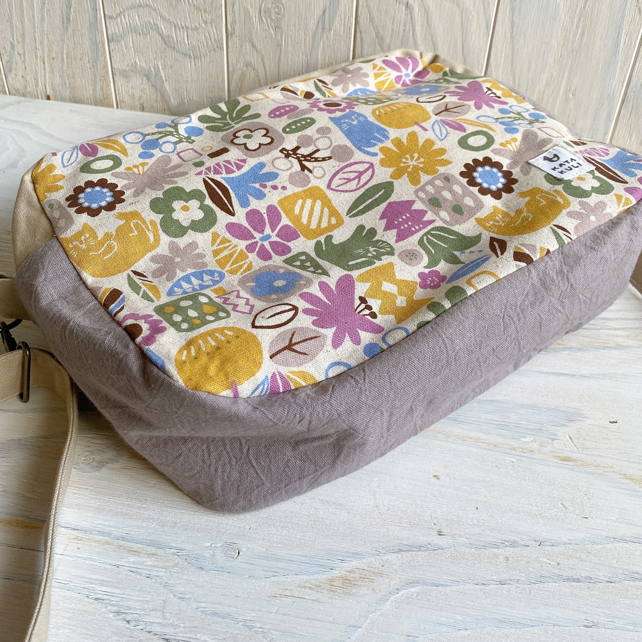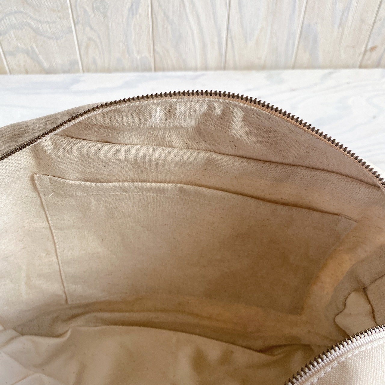 裏地は綿麻キャンバス、マチの部分はハンプの生地を使っていますのでハリがあります