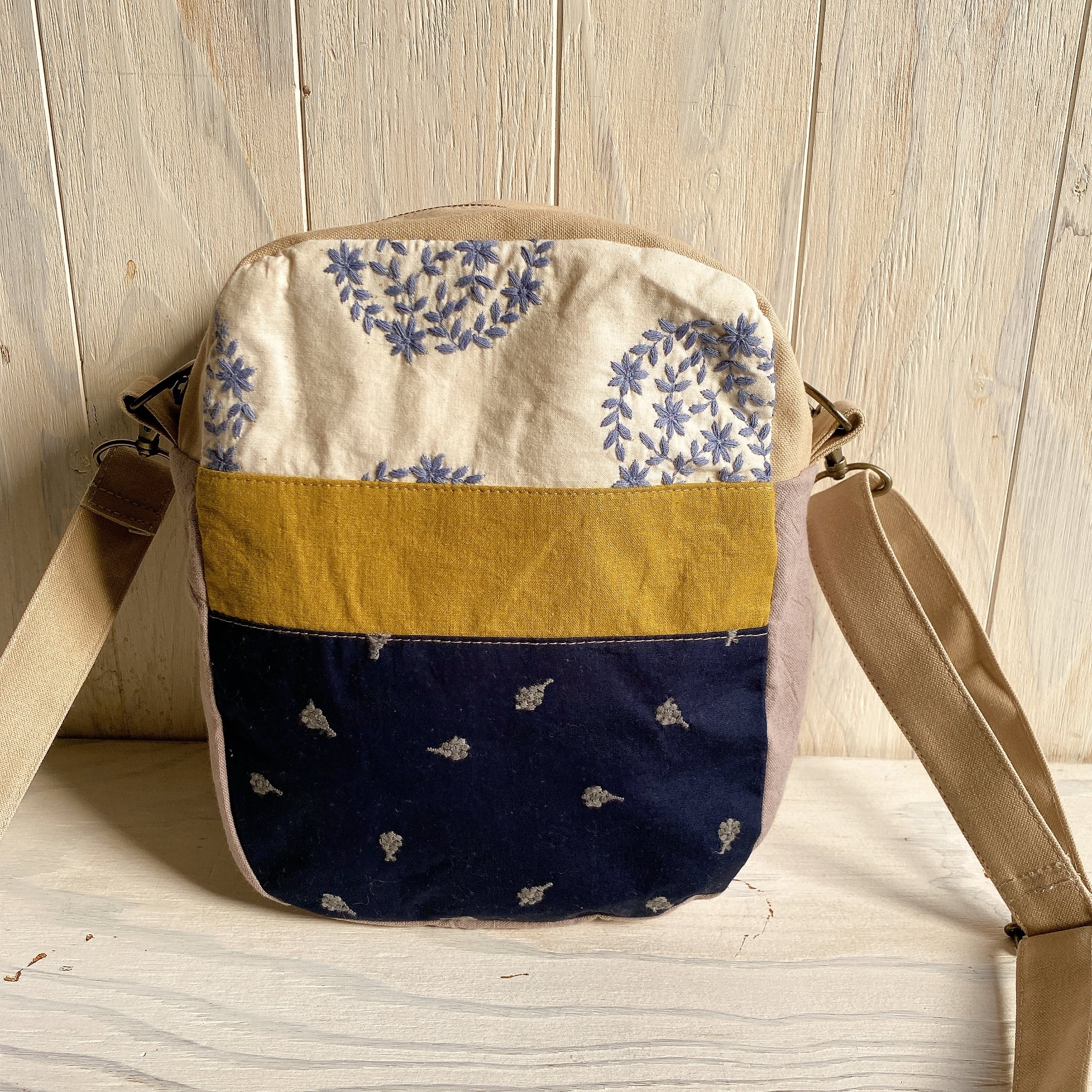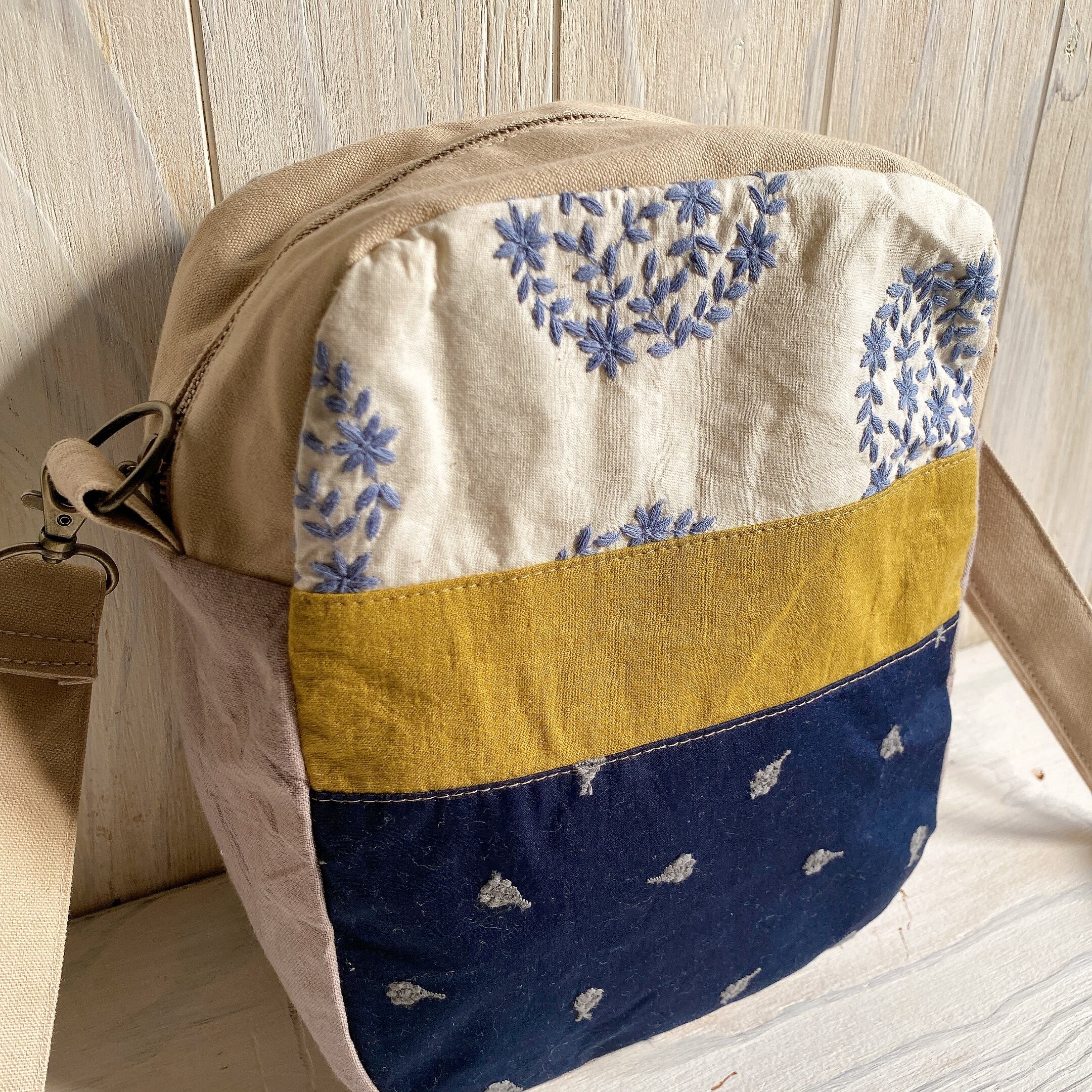 両面さまざまな相性の良い生地を組み合わせて斜め掛けできるおとなのポシェットを作りました。