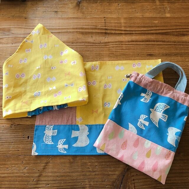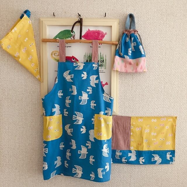 高学年キッズのエプロン4点セット(サイズ150)バード