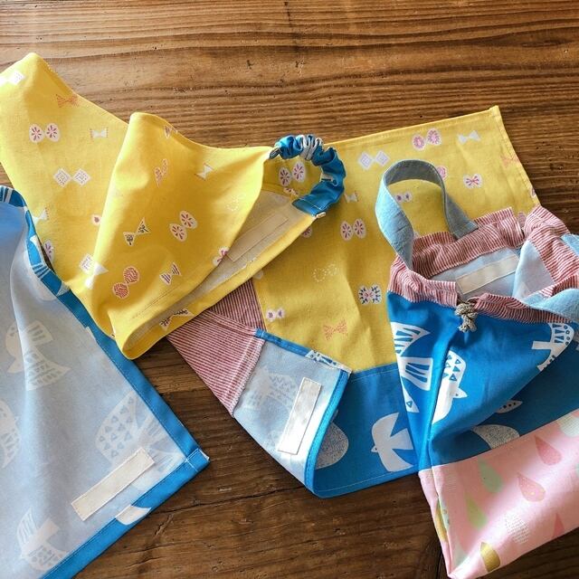 と思い、お年頃な高学年さんに気に入ってもらえそうな生地でエプロンを作りました。