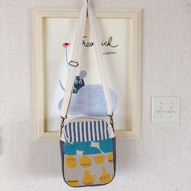 両面さまざまな相性の良い生地を組み合わせて斜め掛けできるおとなのポシェットを作りました。