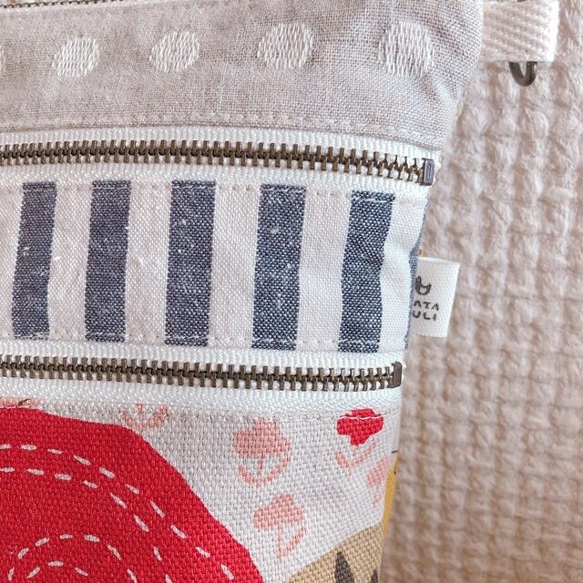 大きめな3ファスナーポーチ*ポシェットにも(丘と鳥)