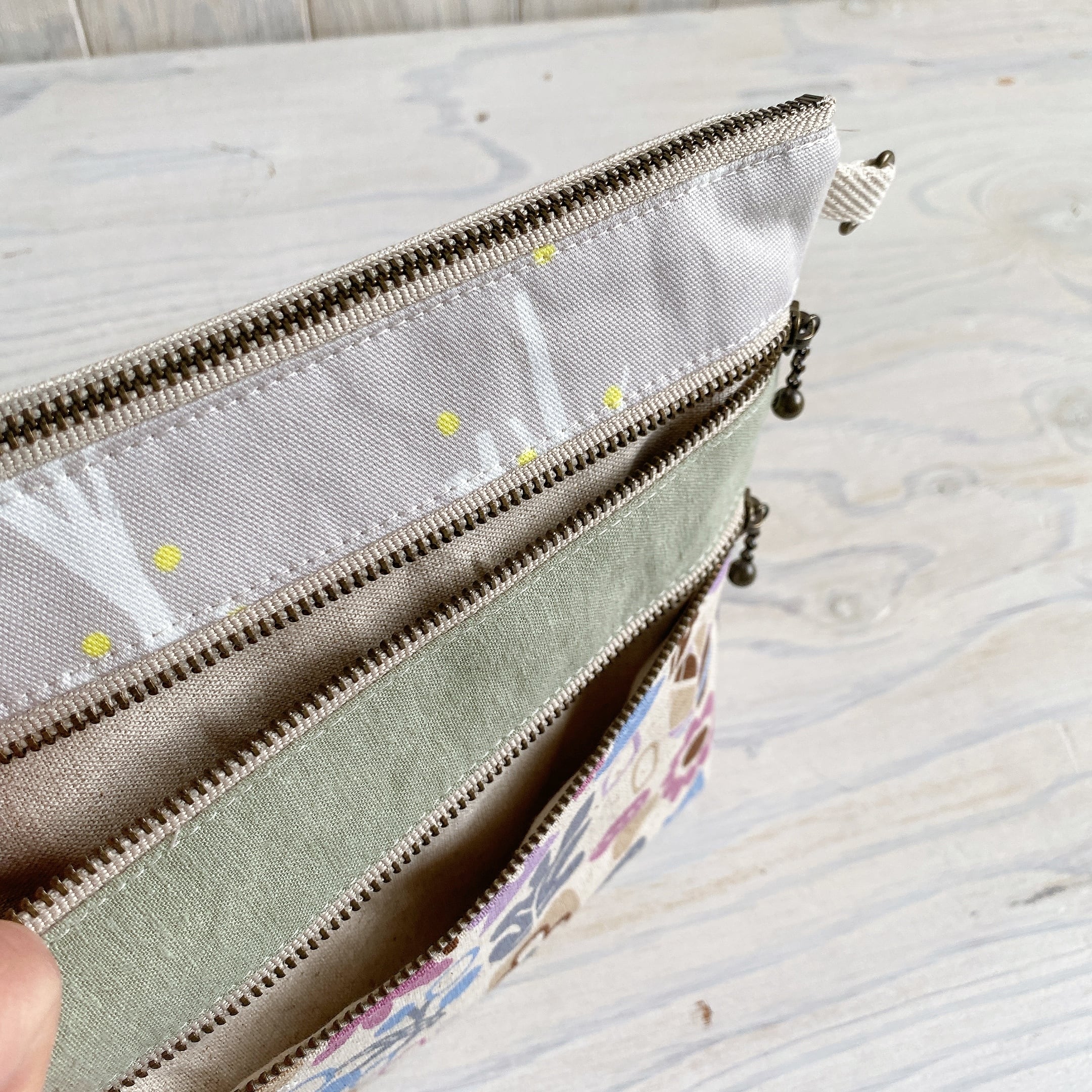 マチ付き3ファスナーポーチ・ポシェットにもなります(ねこ)