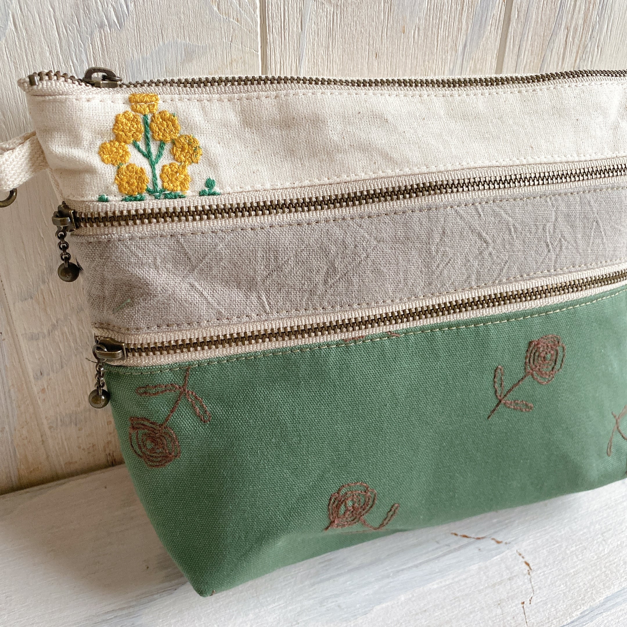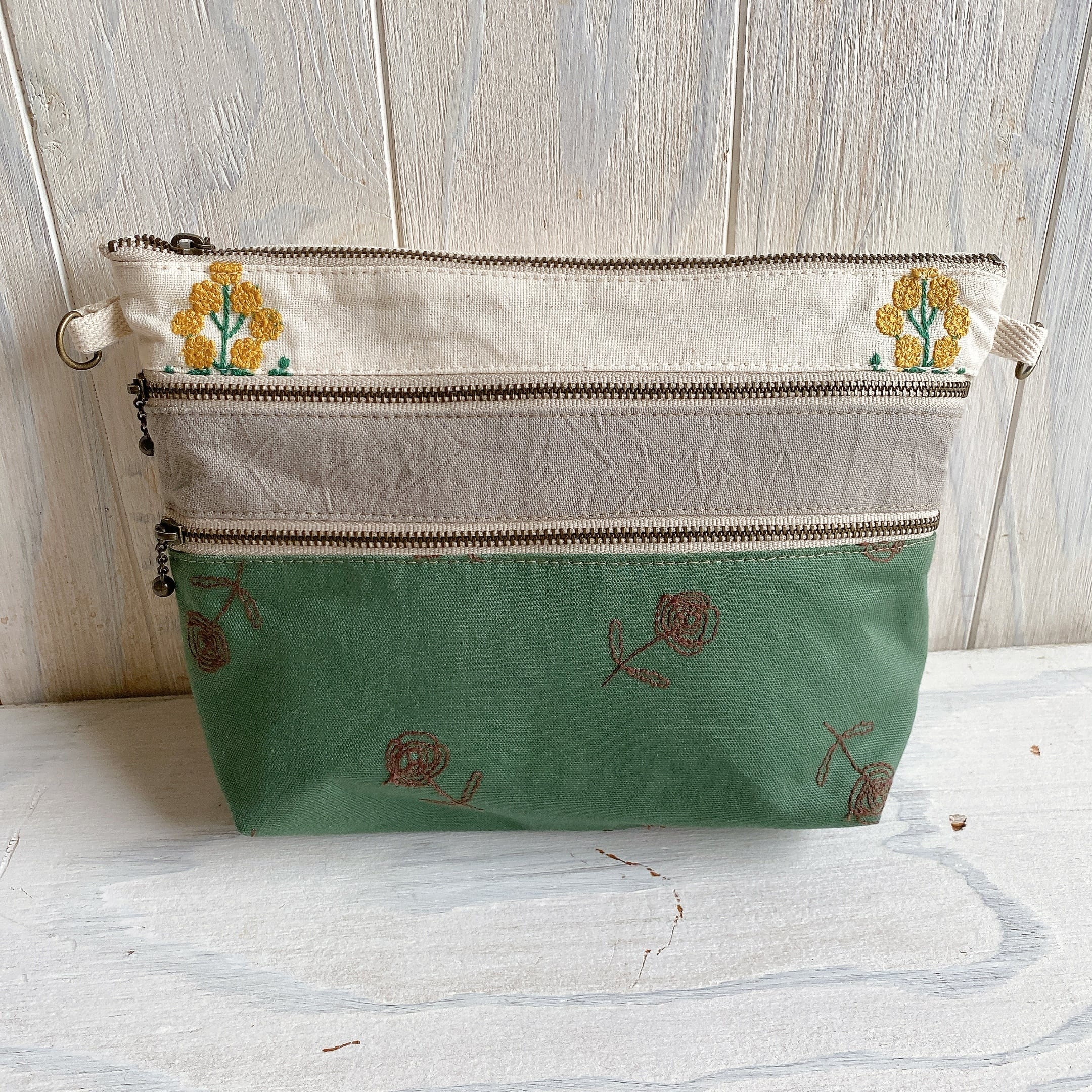 マチ付き3ファスナーポーチ・ポシェットにもなります(おはな)