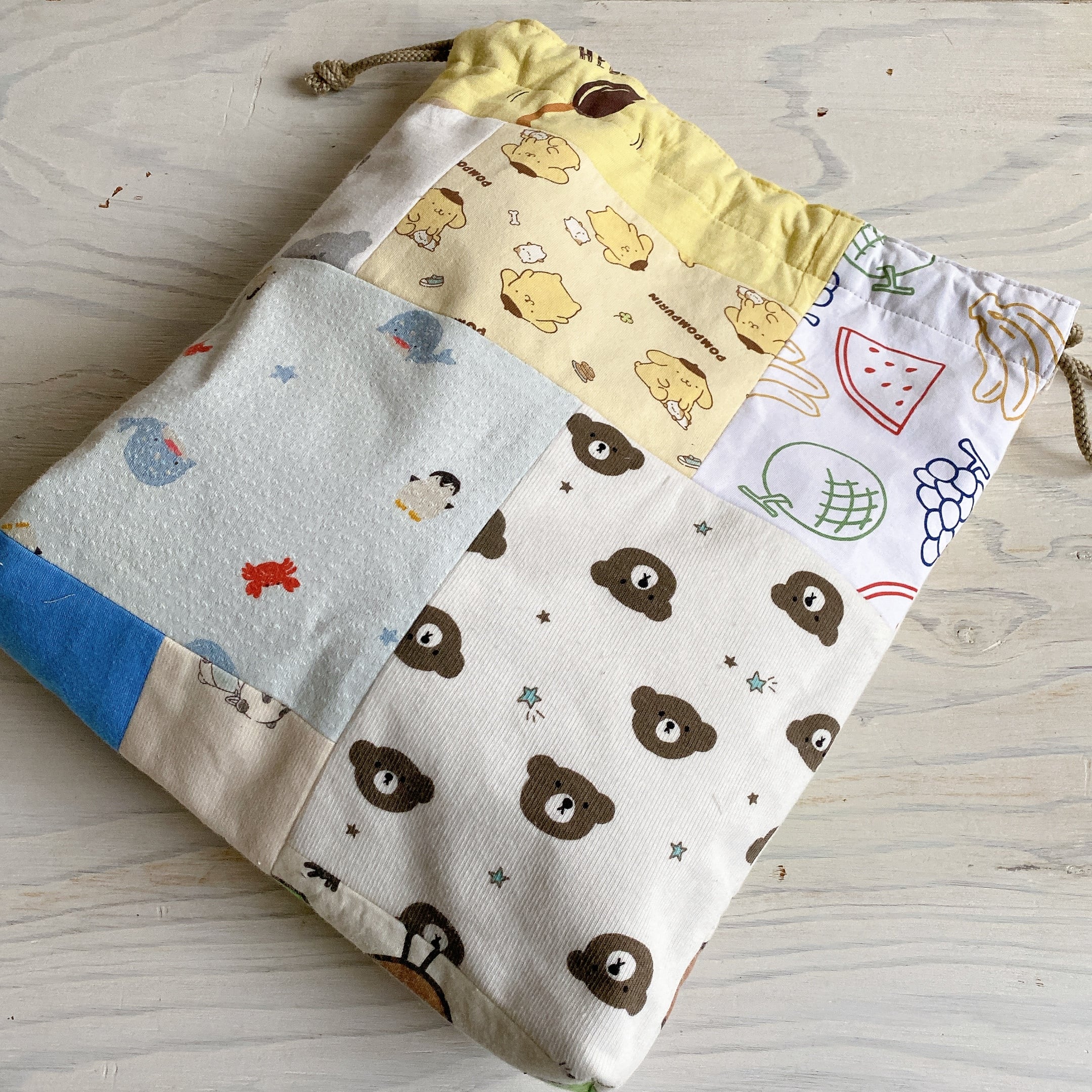 大きなプリントは裏面の大きなパッチワークに使っています。