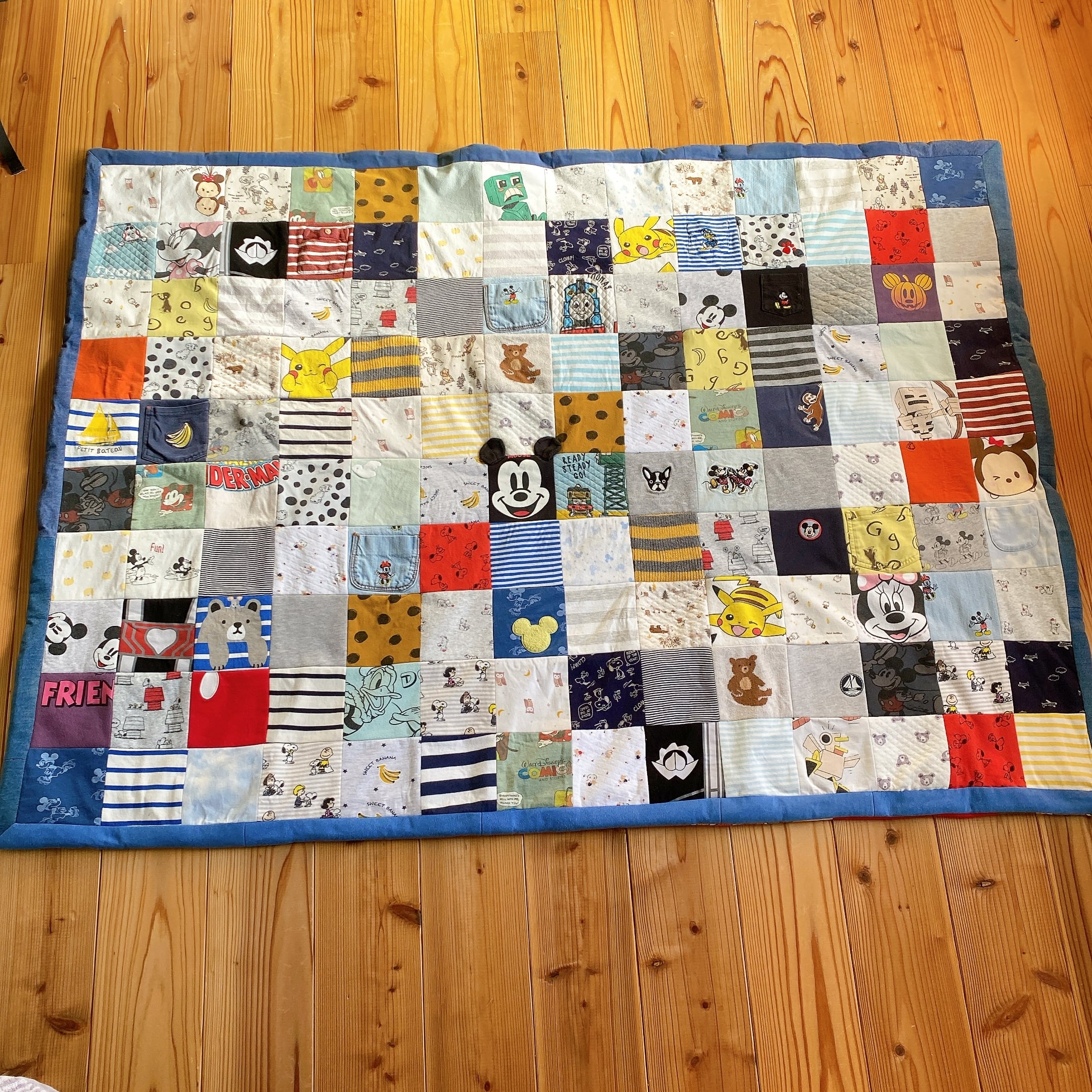 【オーダーのお品】ベビー服をリメイク:大判ブランケット&大きな布バック