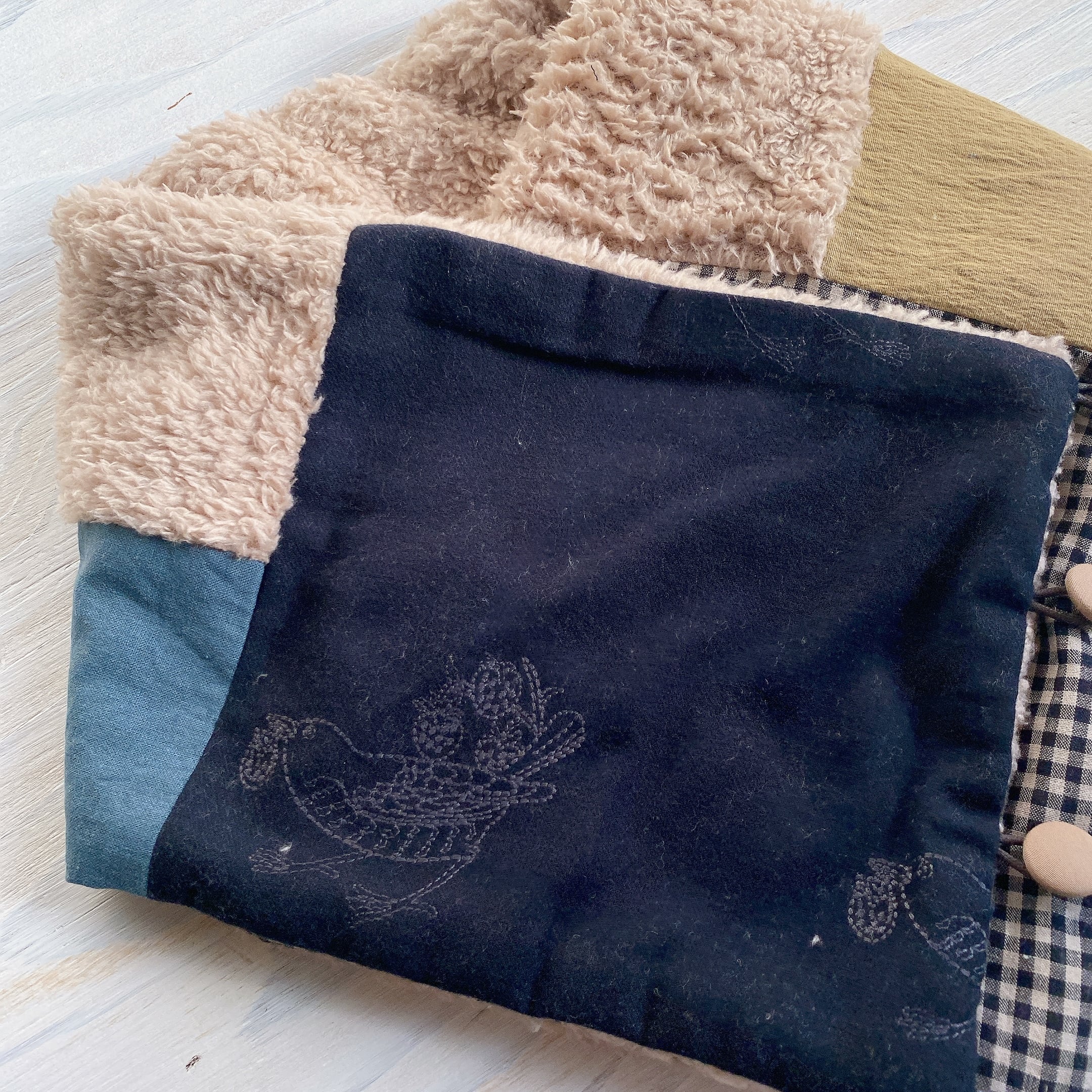くるみボタンのあったかmixスヌード(刺繍とり)