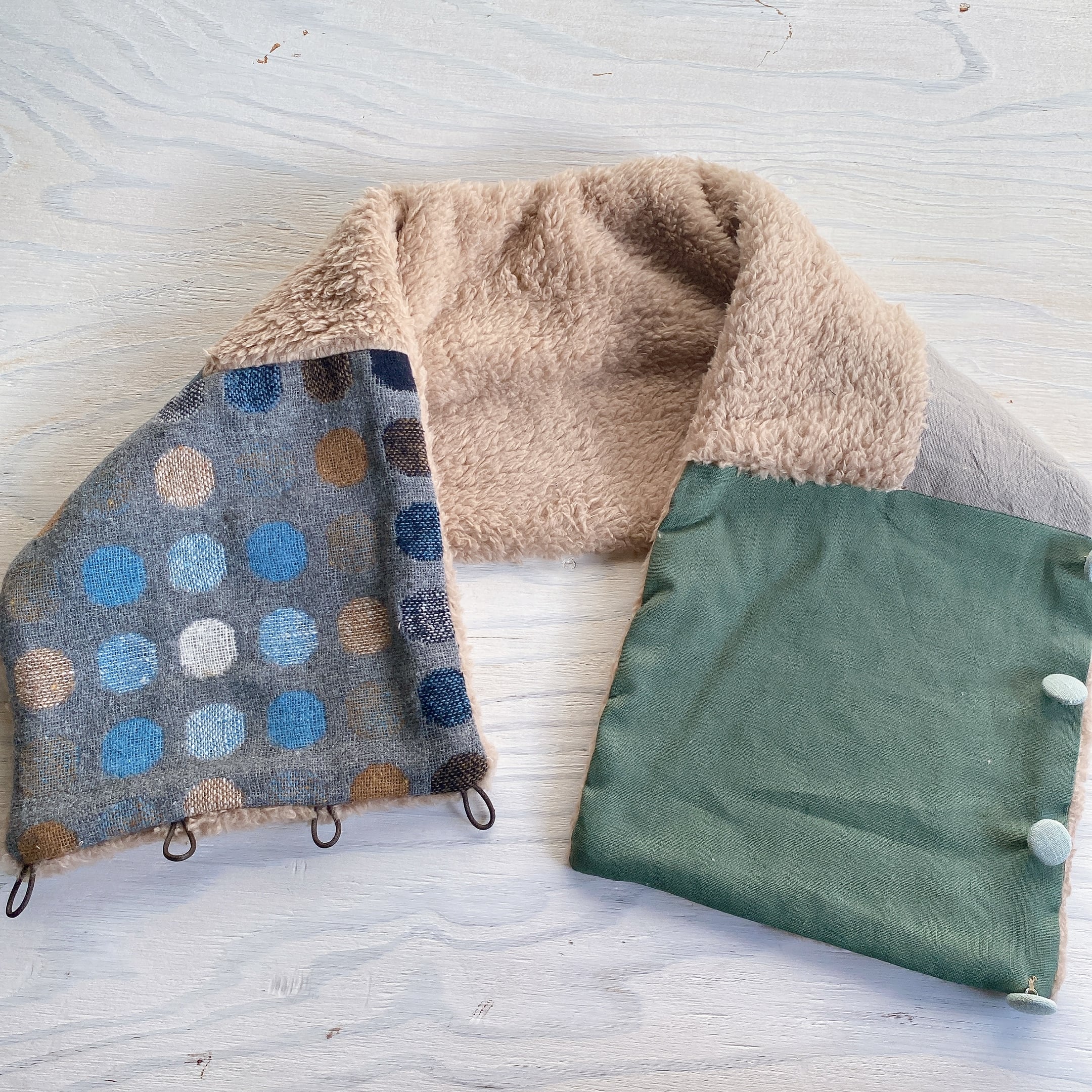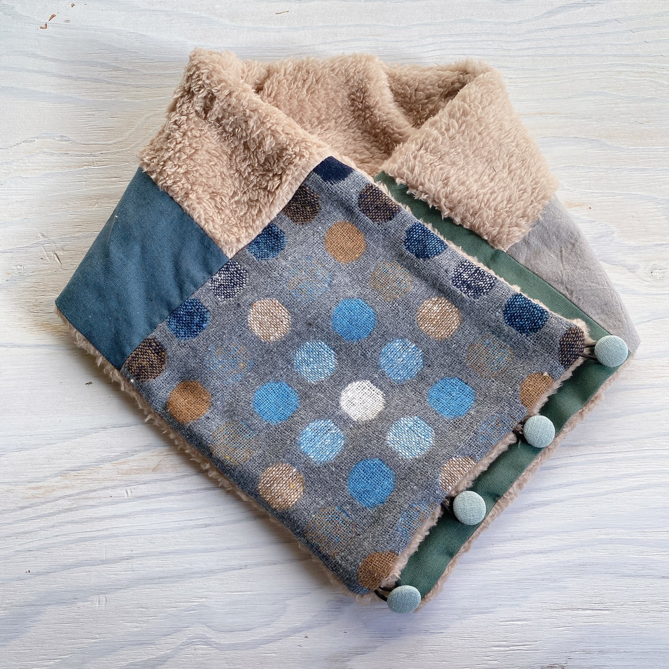 くるみボタンのあったかmixスヌード(ドット×ミドリ)