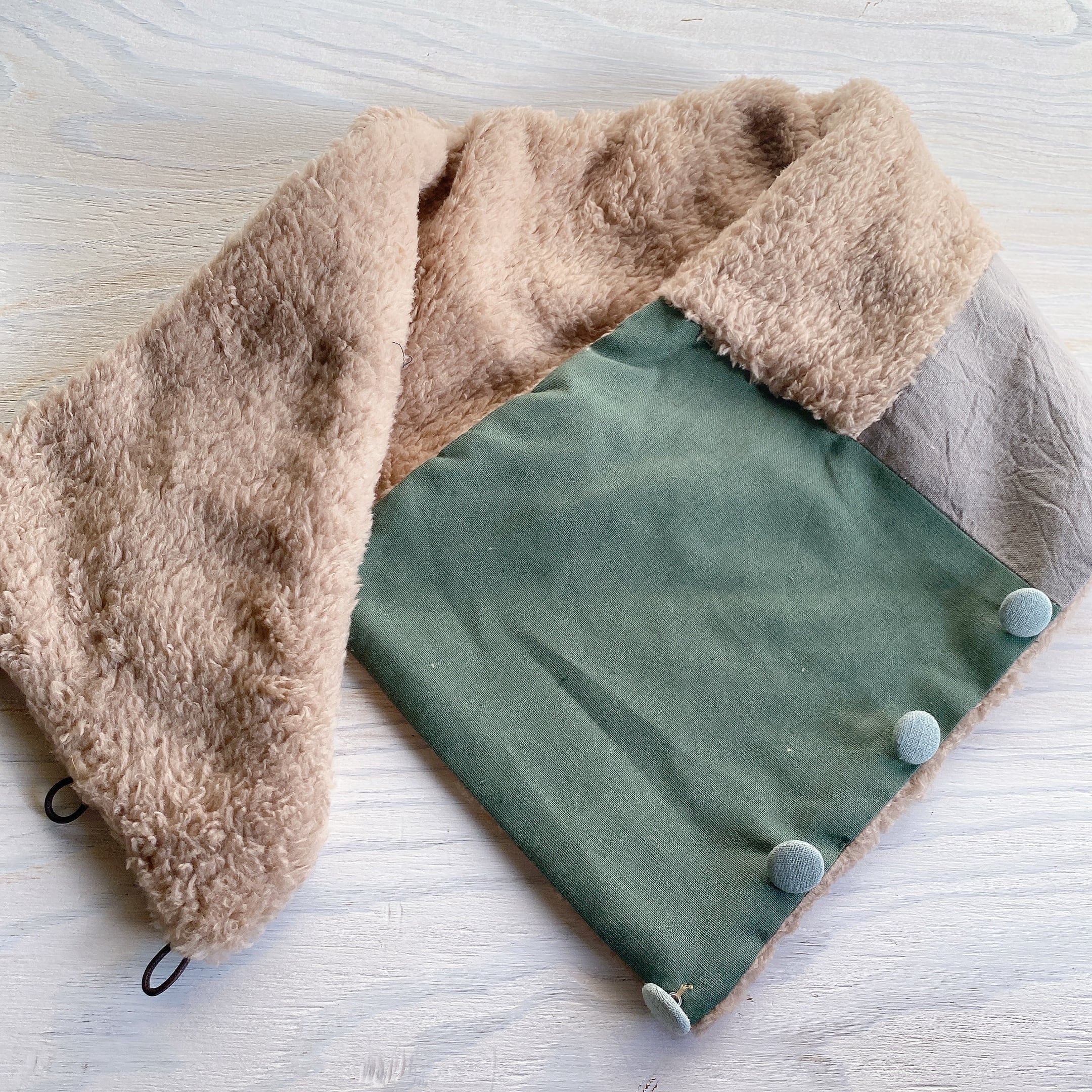 首元と裏面はふかふかなボアの生地を使っています。