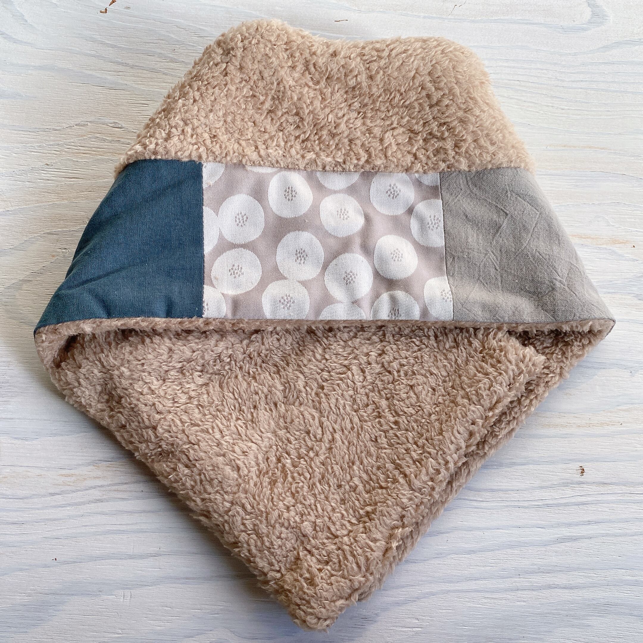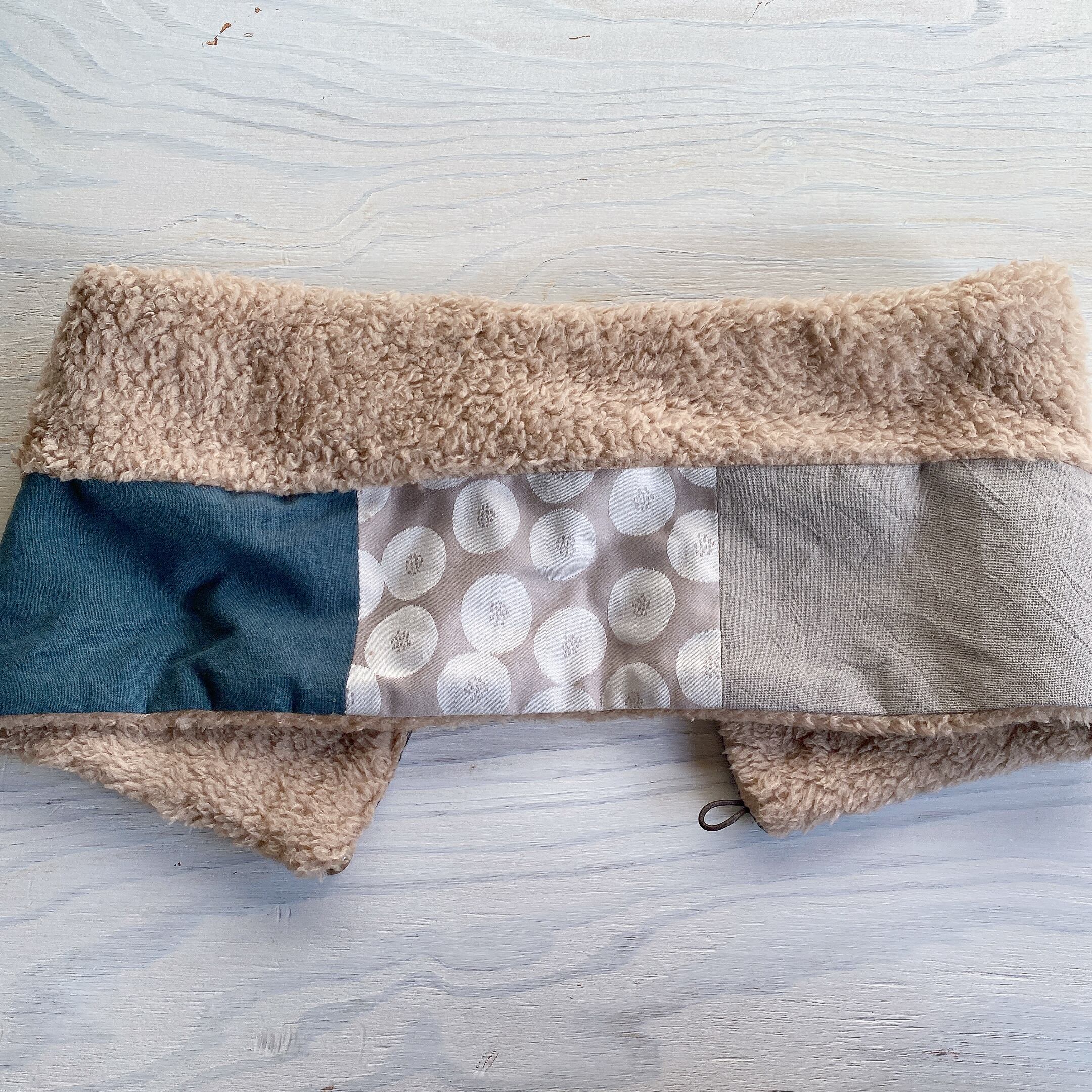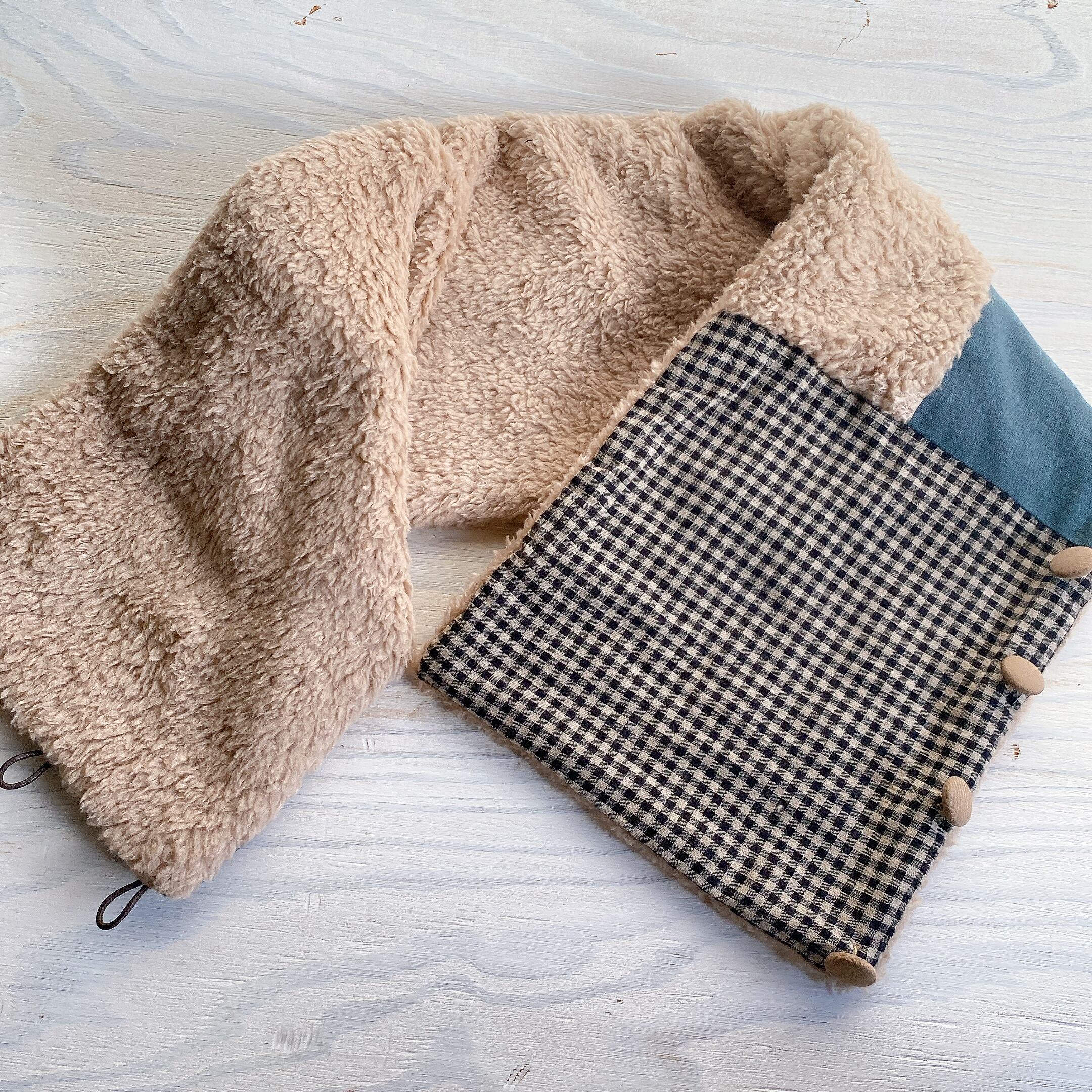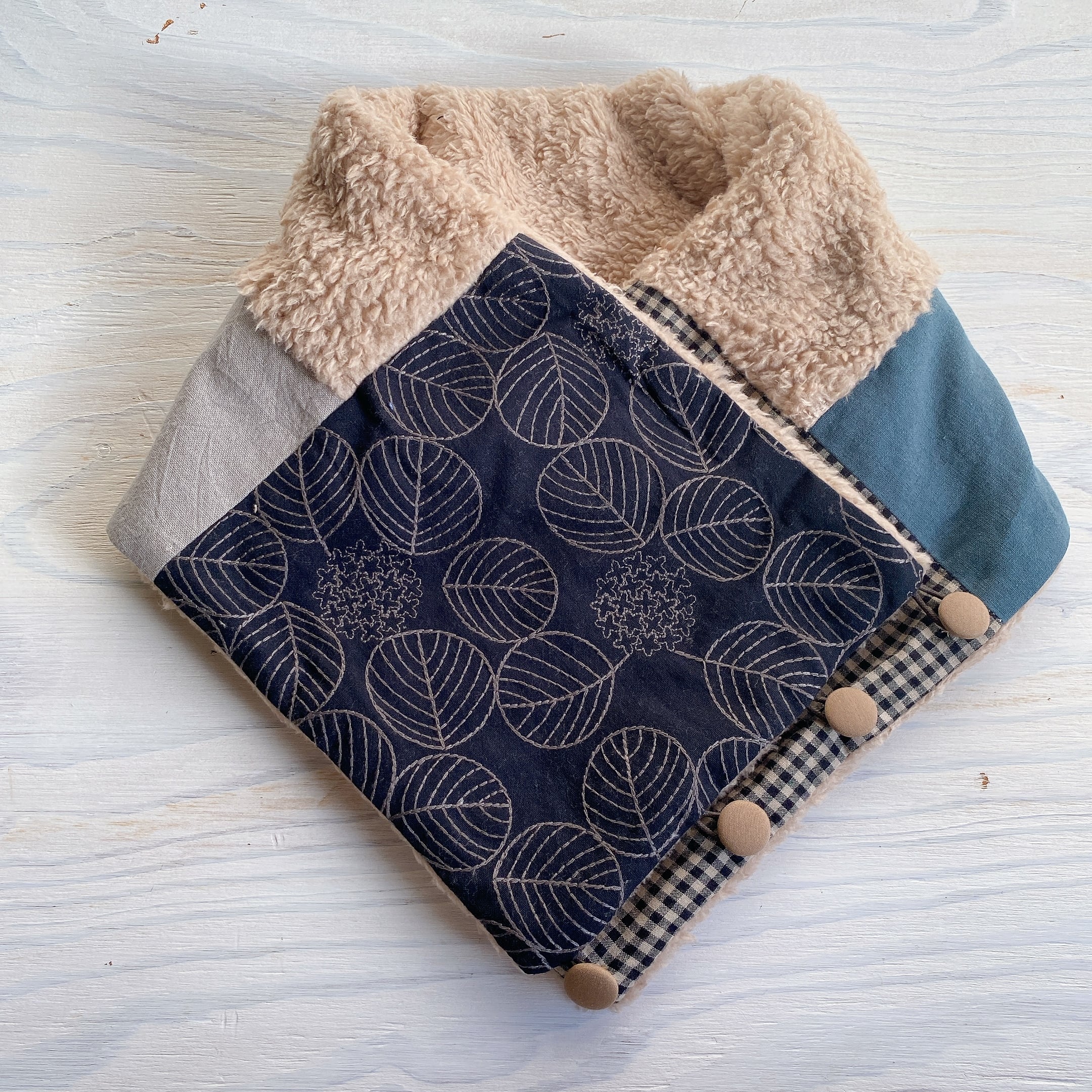 くるみボタンのあったかmixスヌード(葉っぱ刺繍×ギンガム)