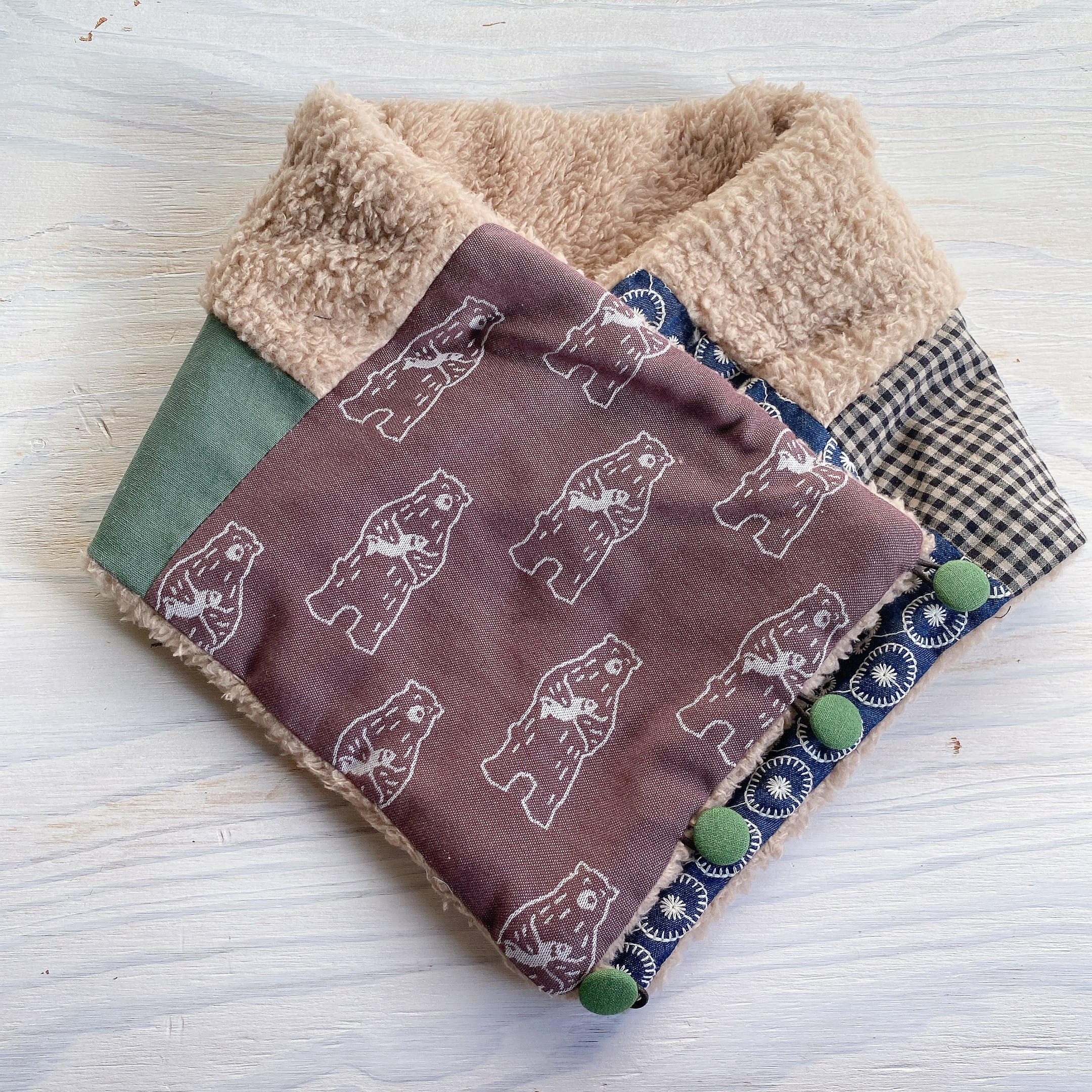 くるみボタンのあったかmixスヌード(くま)