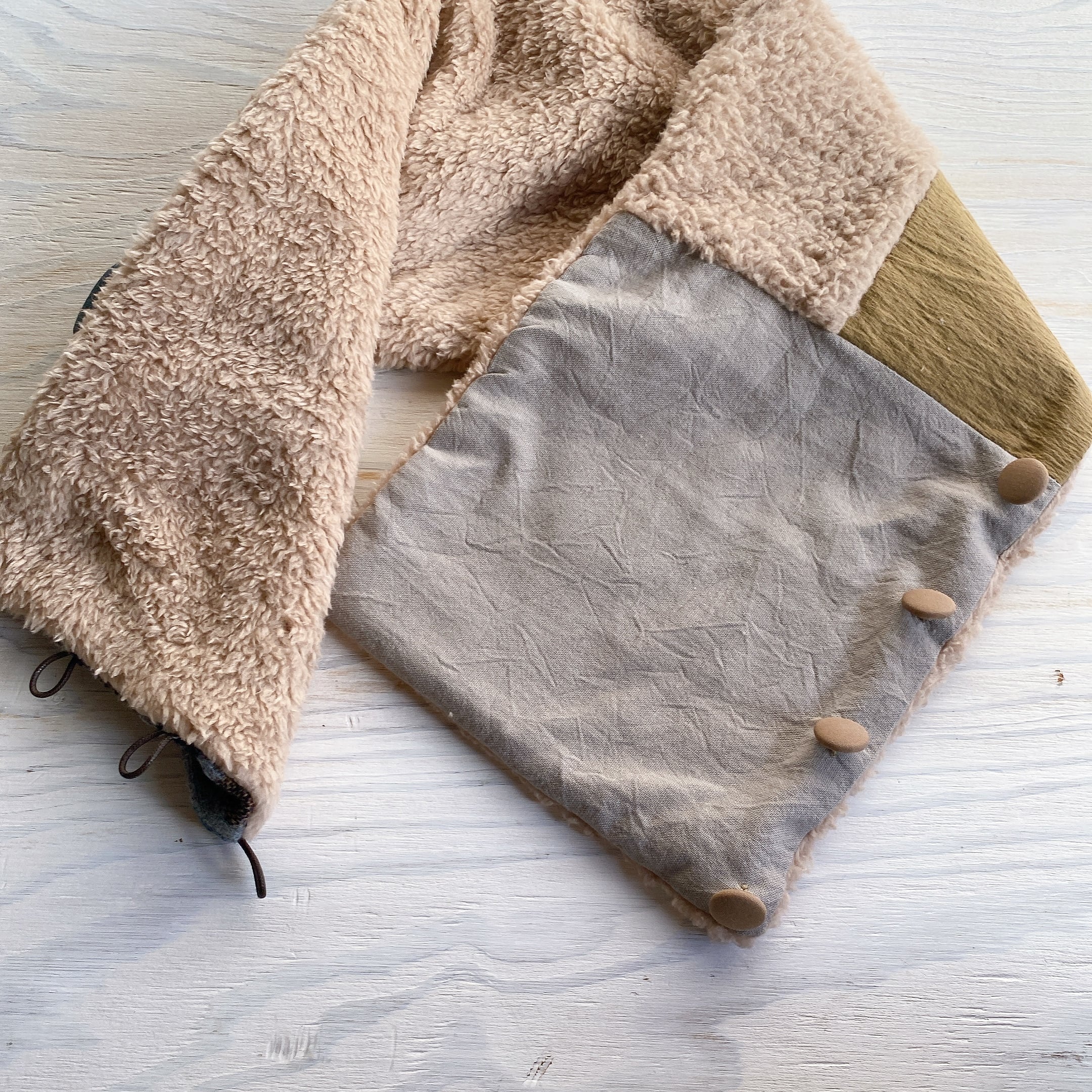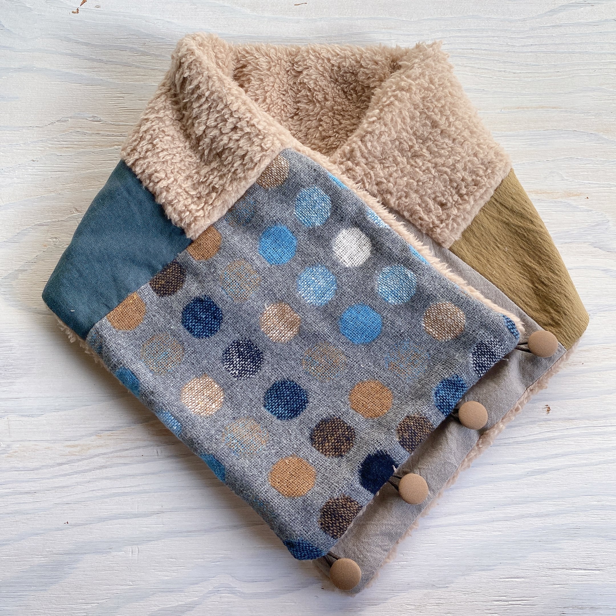 くるみボタンのあったかmixスヌード(ドット×ベージュ)