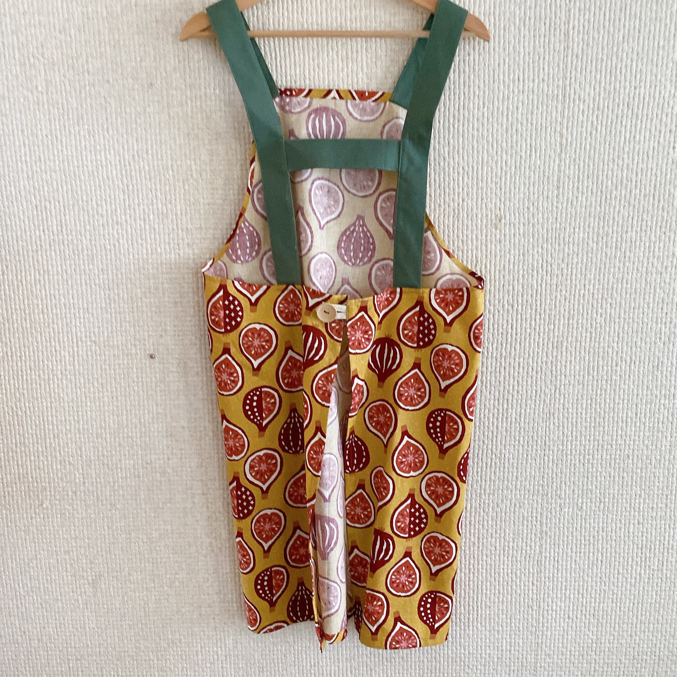 肩ひも後ろはHの形。おとなエプロン(イチジク)