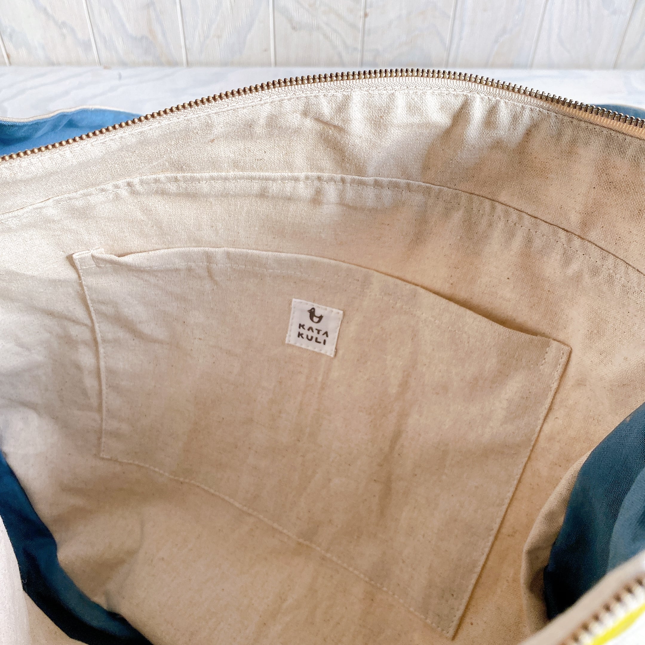 綿麻キャンバスの裏地付きで、大き目な内ポケットがありますので