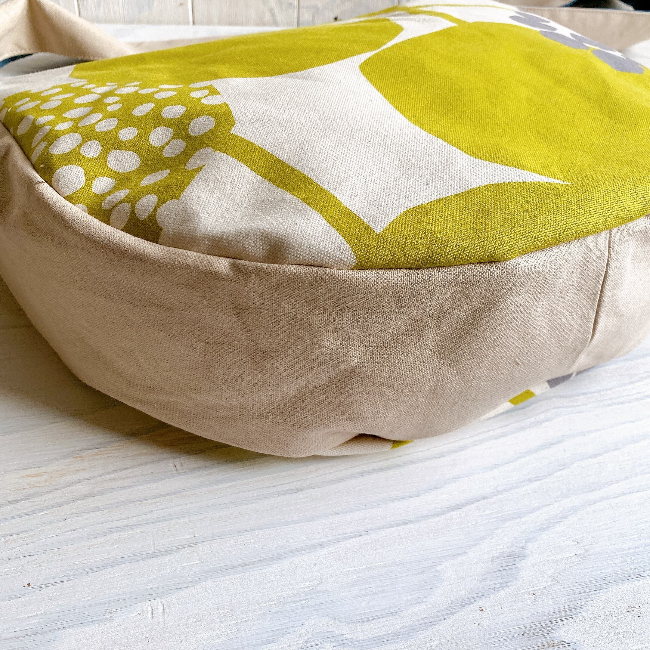 ころんと丸いフォルム、アンパン柄の色味がとても素敵なバックです。
