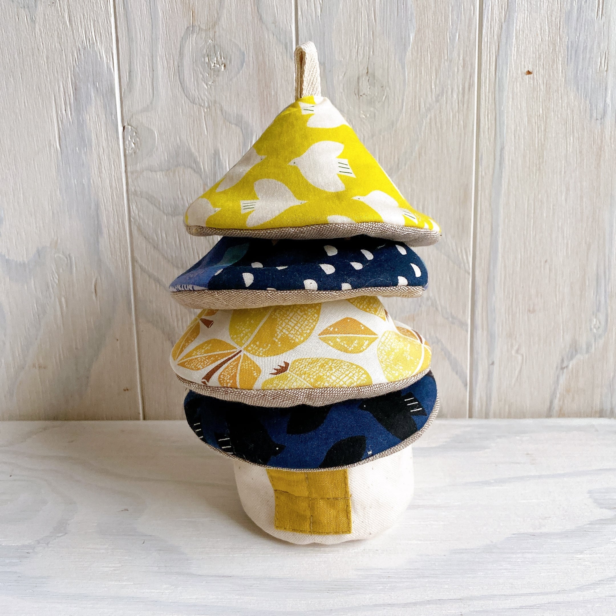 屋根が鍋つかみになった、ちいさなおうちの形の小物入れ