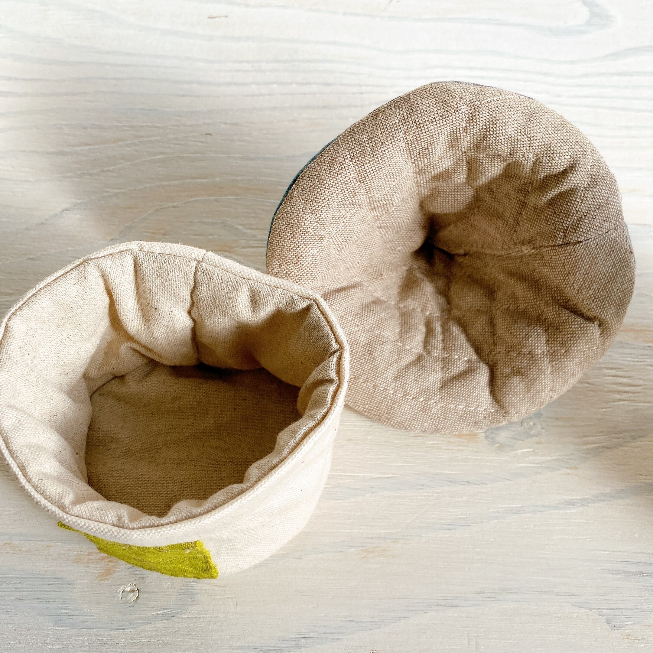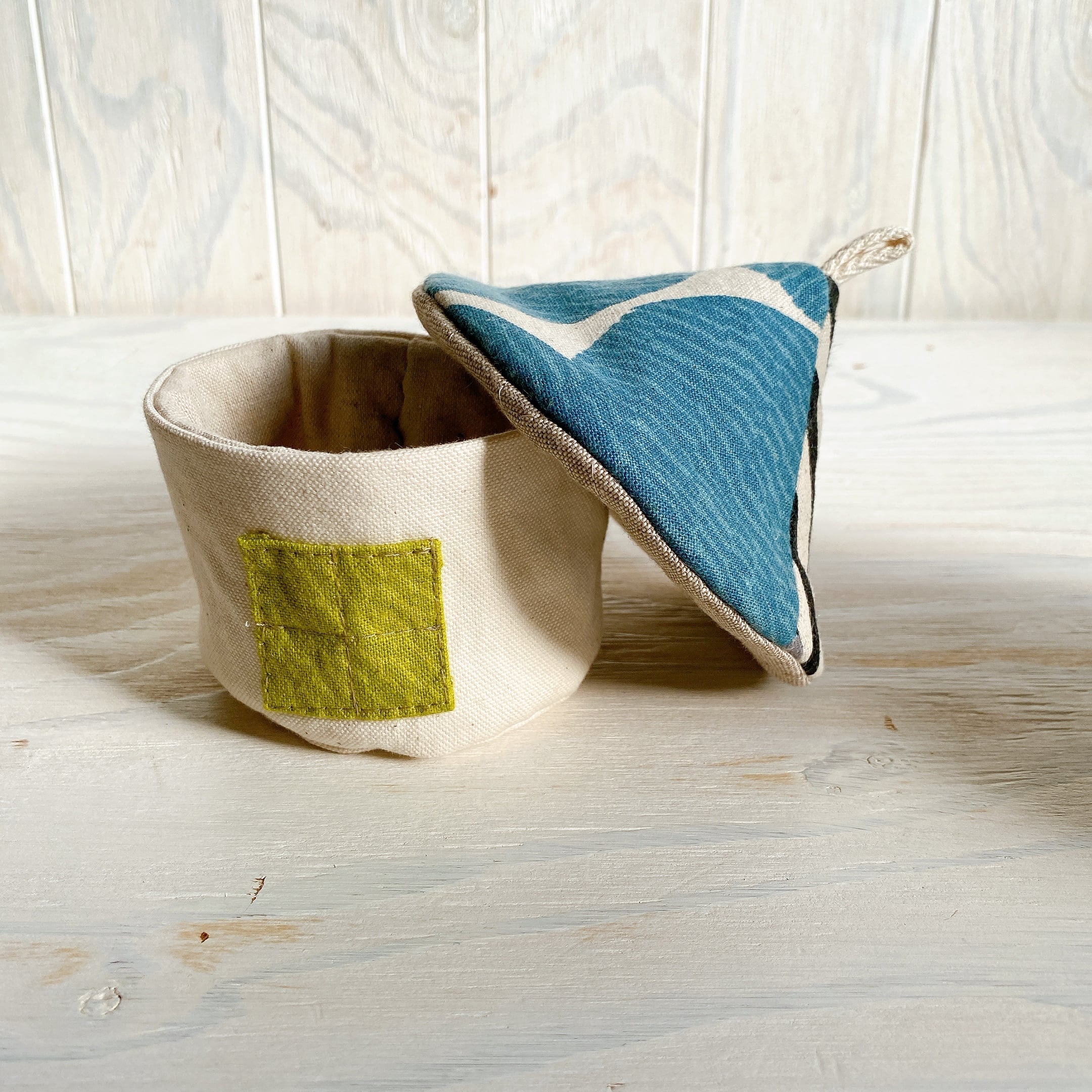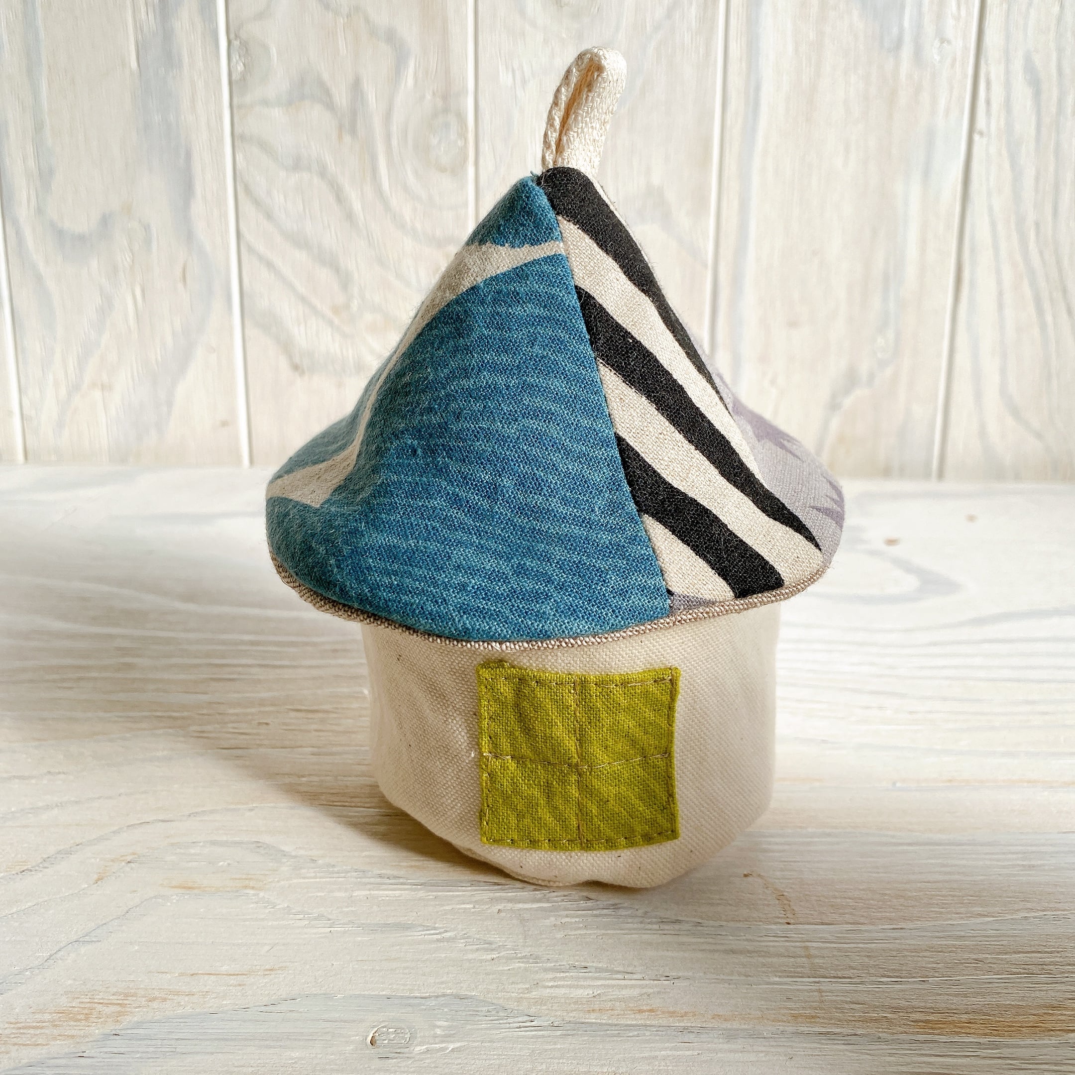 屋根が鍋つかみになった、ちいさなおうちの形の小物入れ