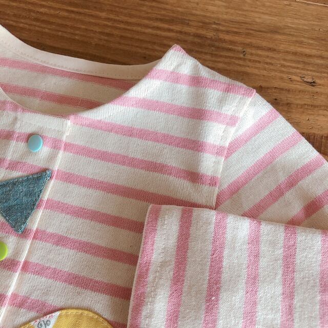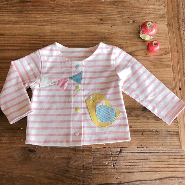 ことりパーティ★スナップカーディガン(ピンクボーダー・きいろことり)★サイズ80