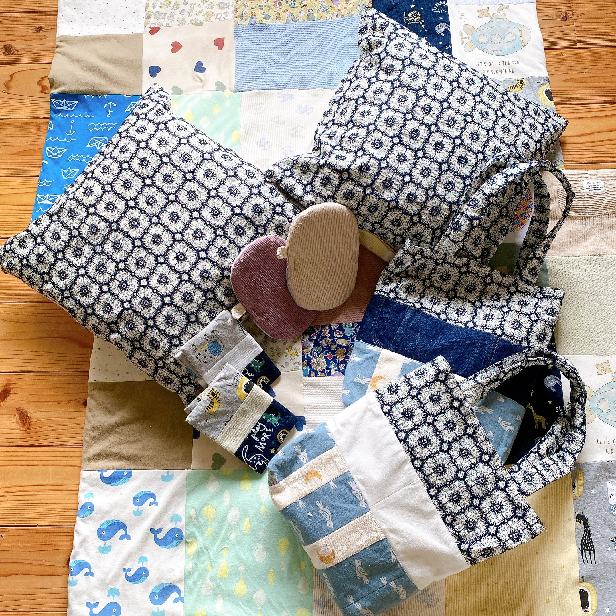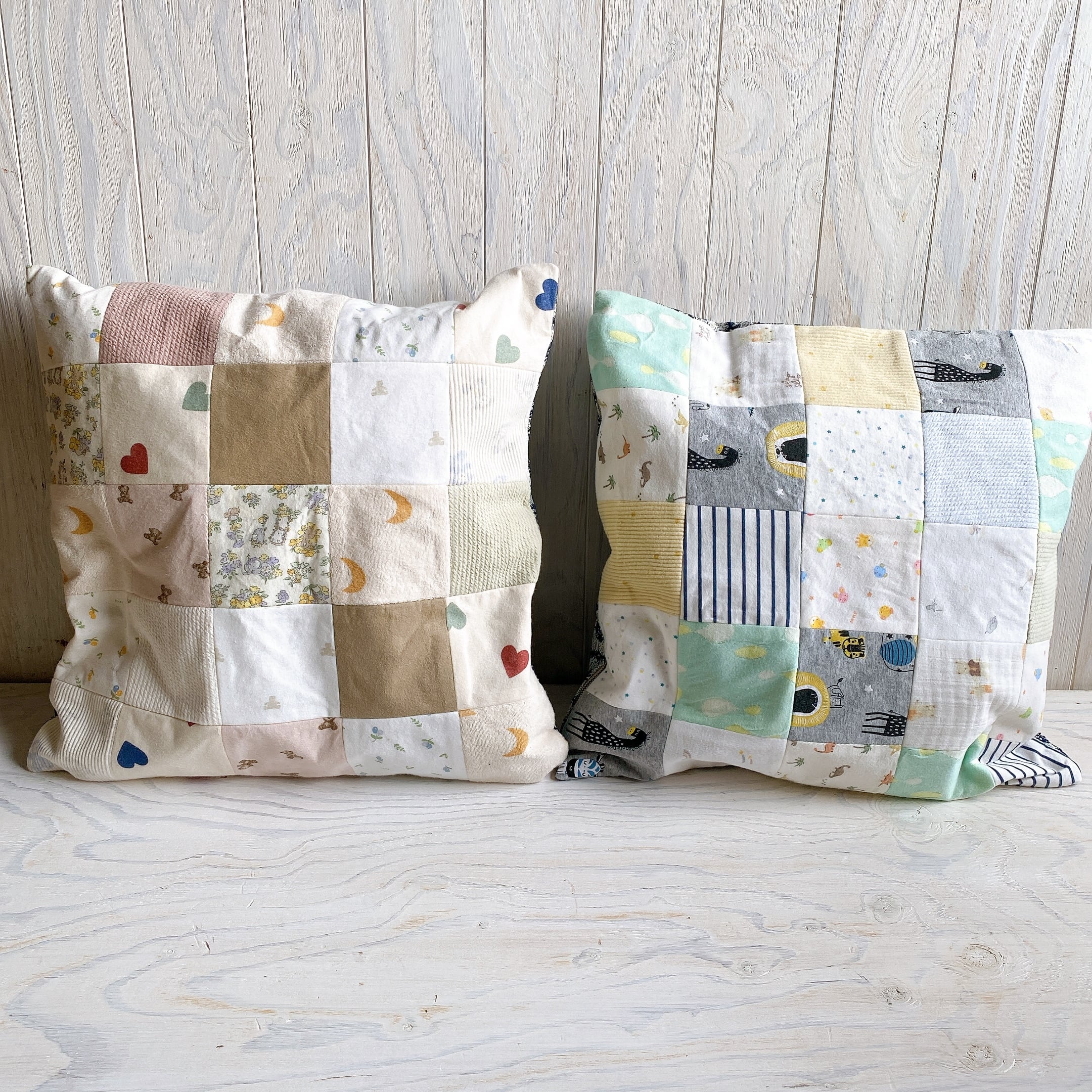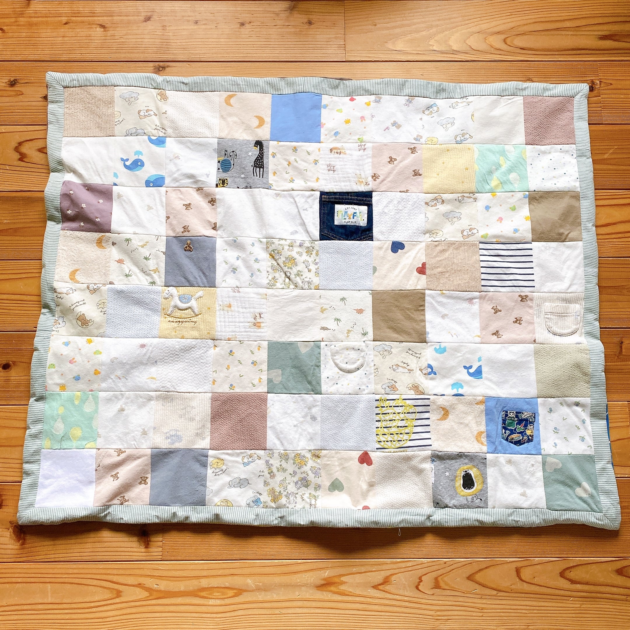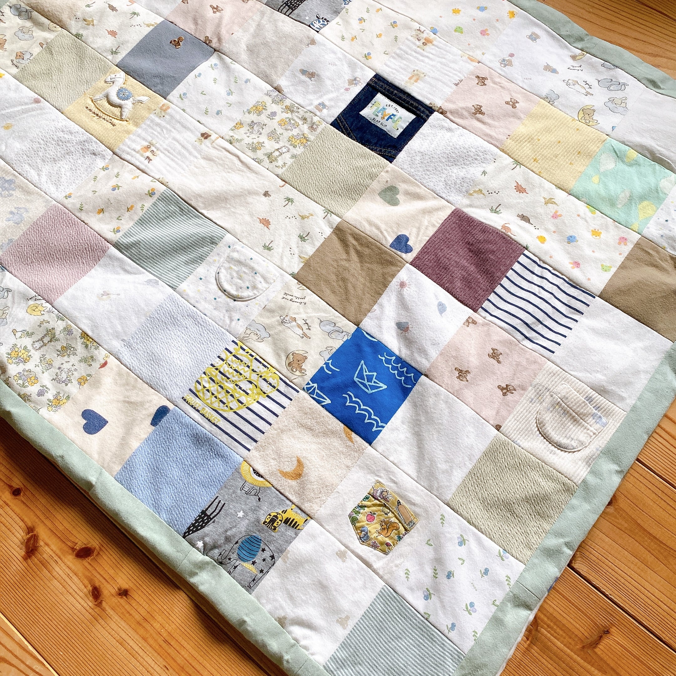 サイズアウトしたベビー服をブランケットにリメイクしました。
