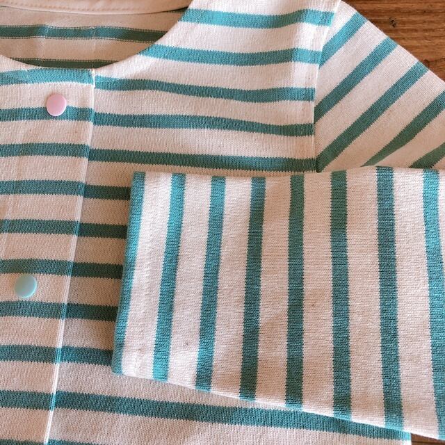 りんごしずく★スナップカーディガン(みずいろボーダー)★サイズ110