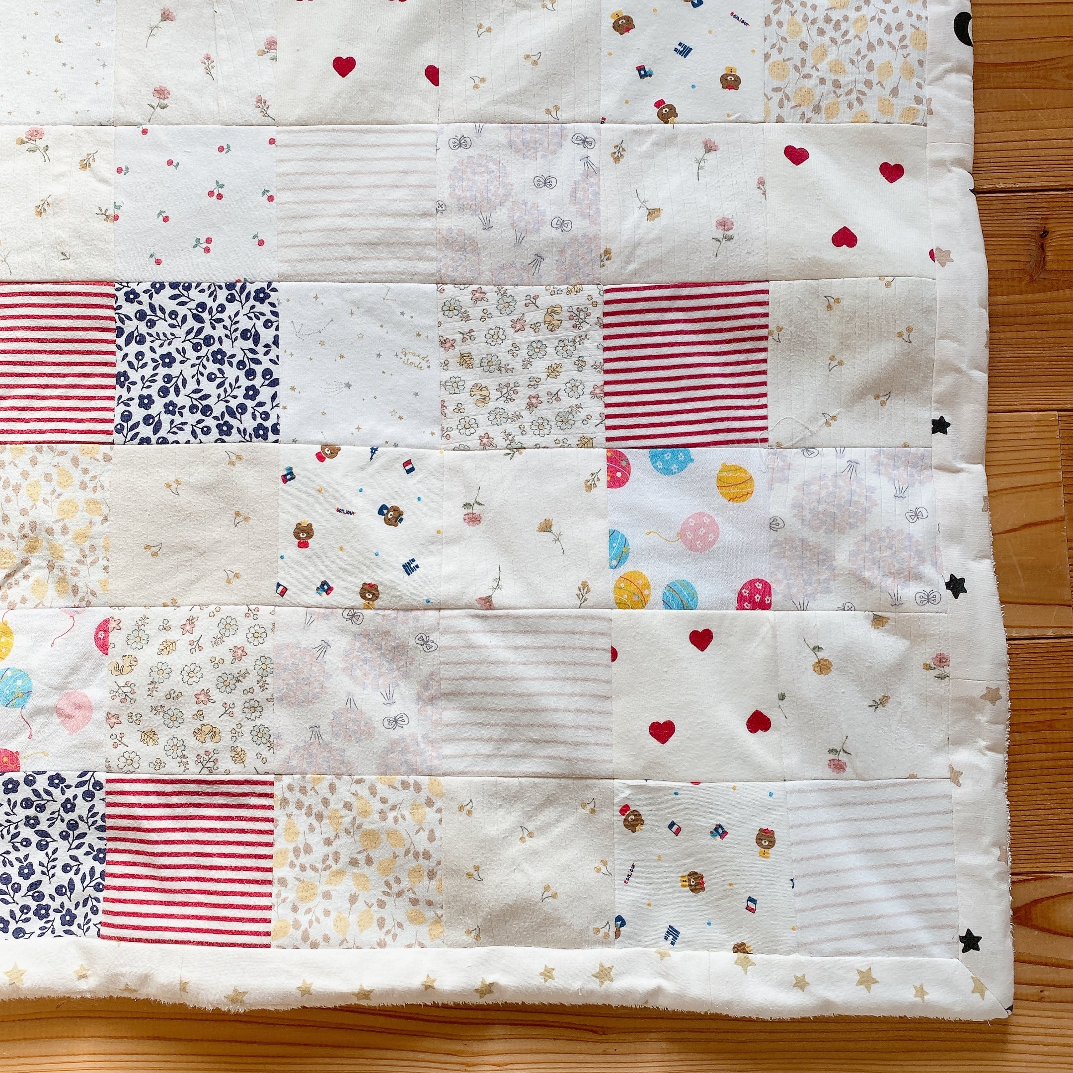 大きなプリントは裏面の大きなパッチワークに使っています。