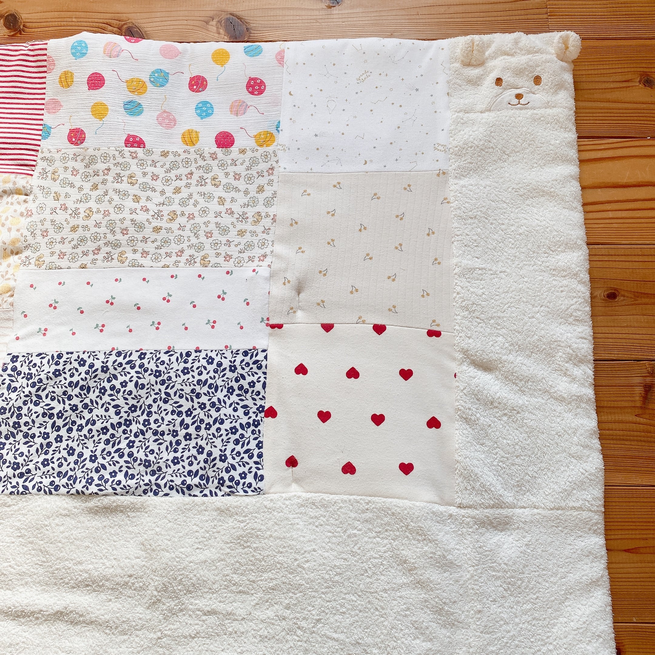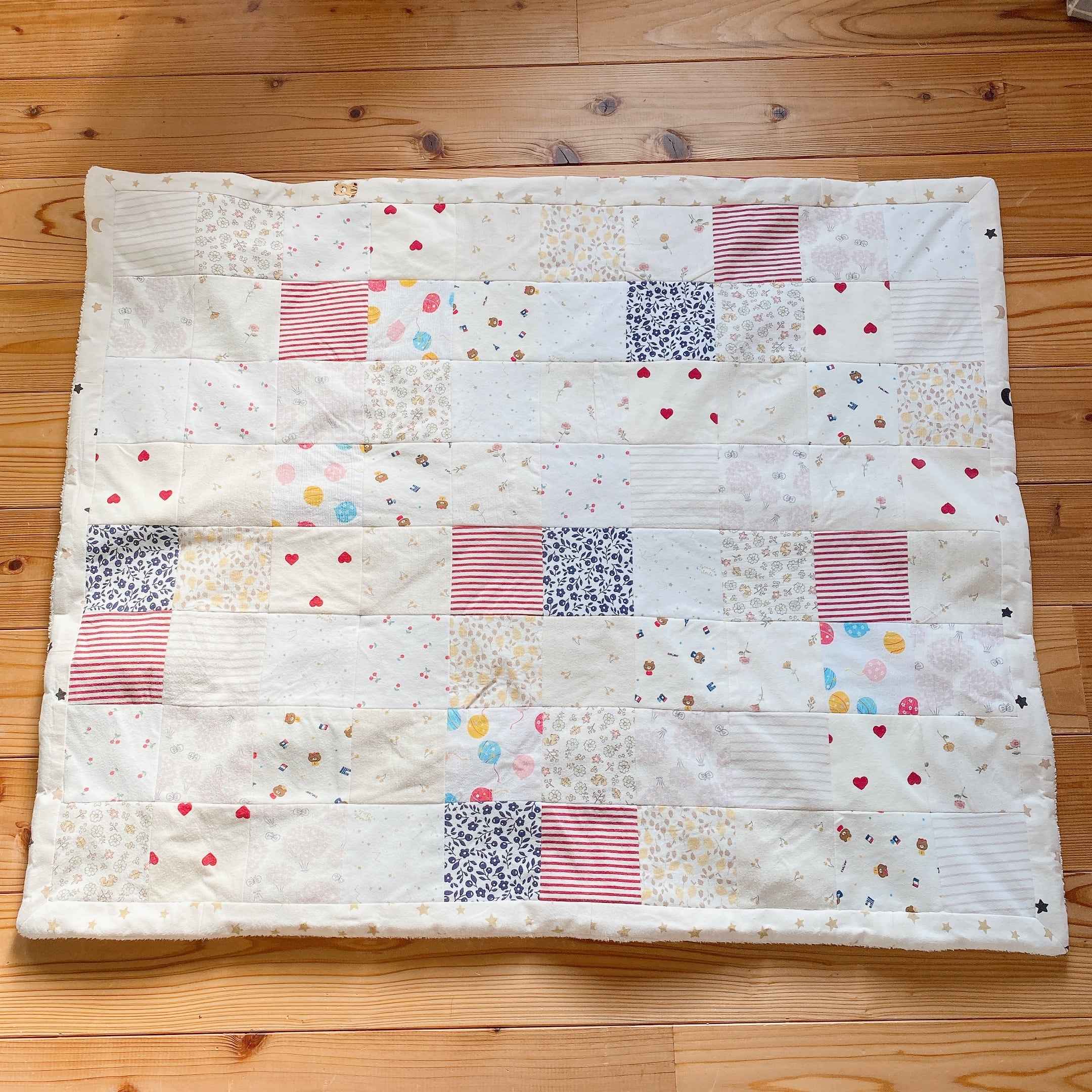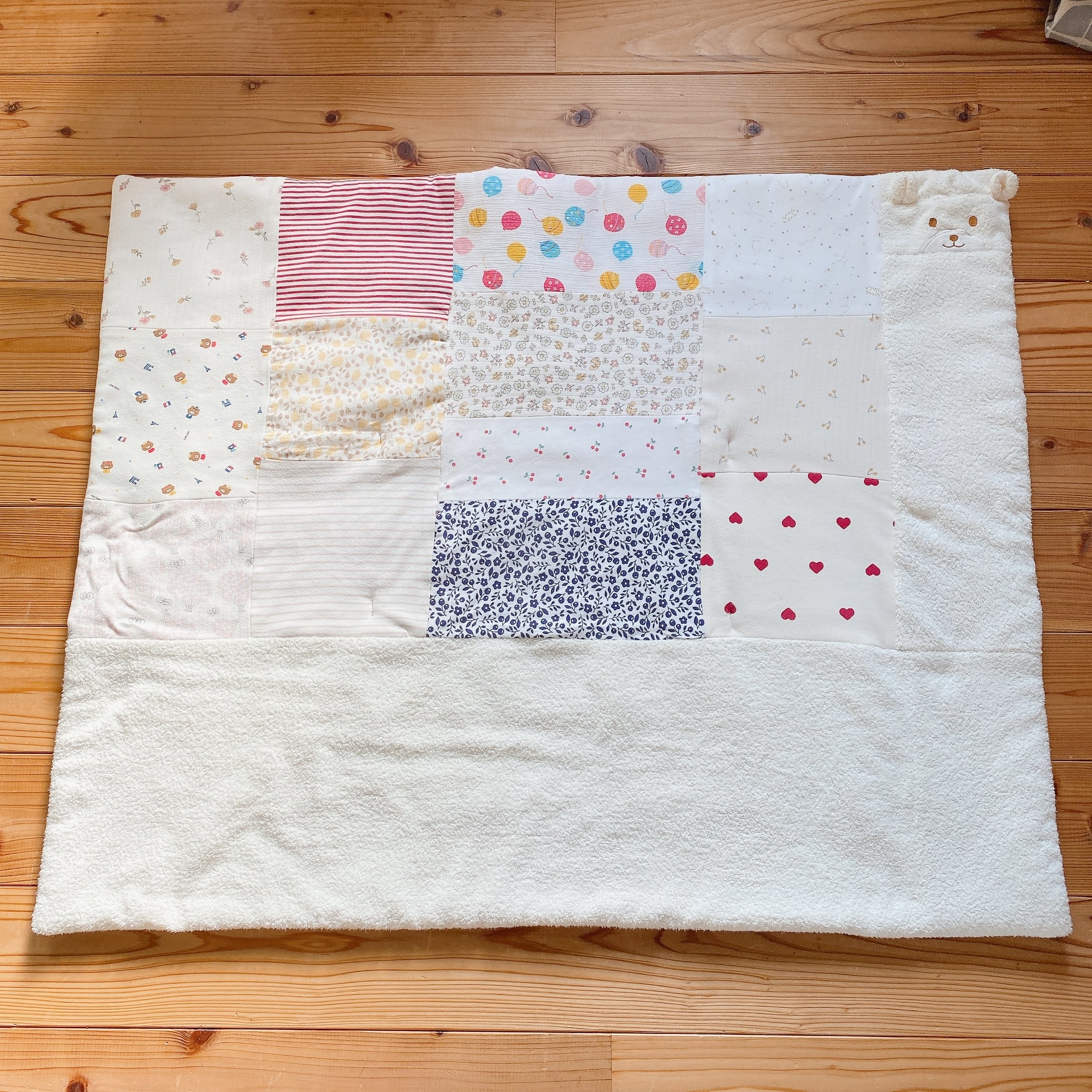サイズアウトした子供服をブランケットにリメイクしました。