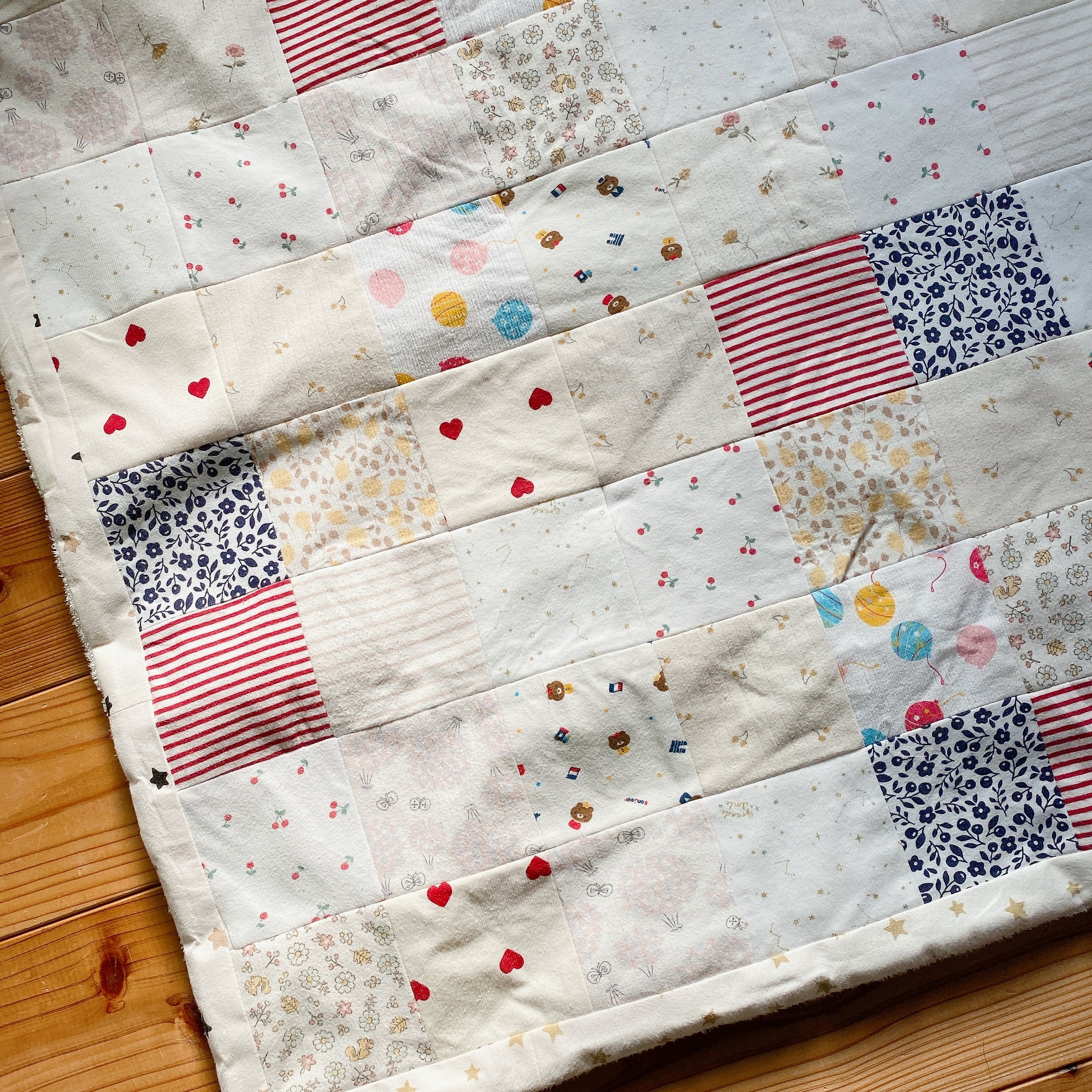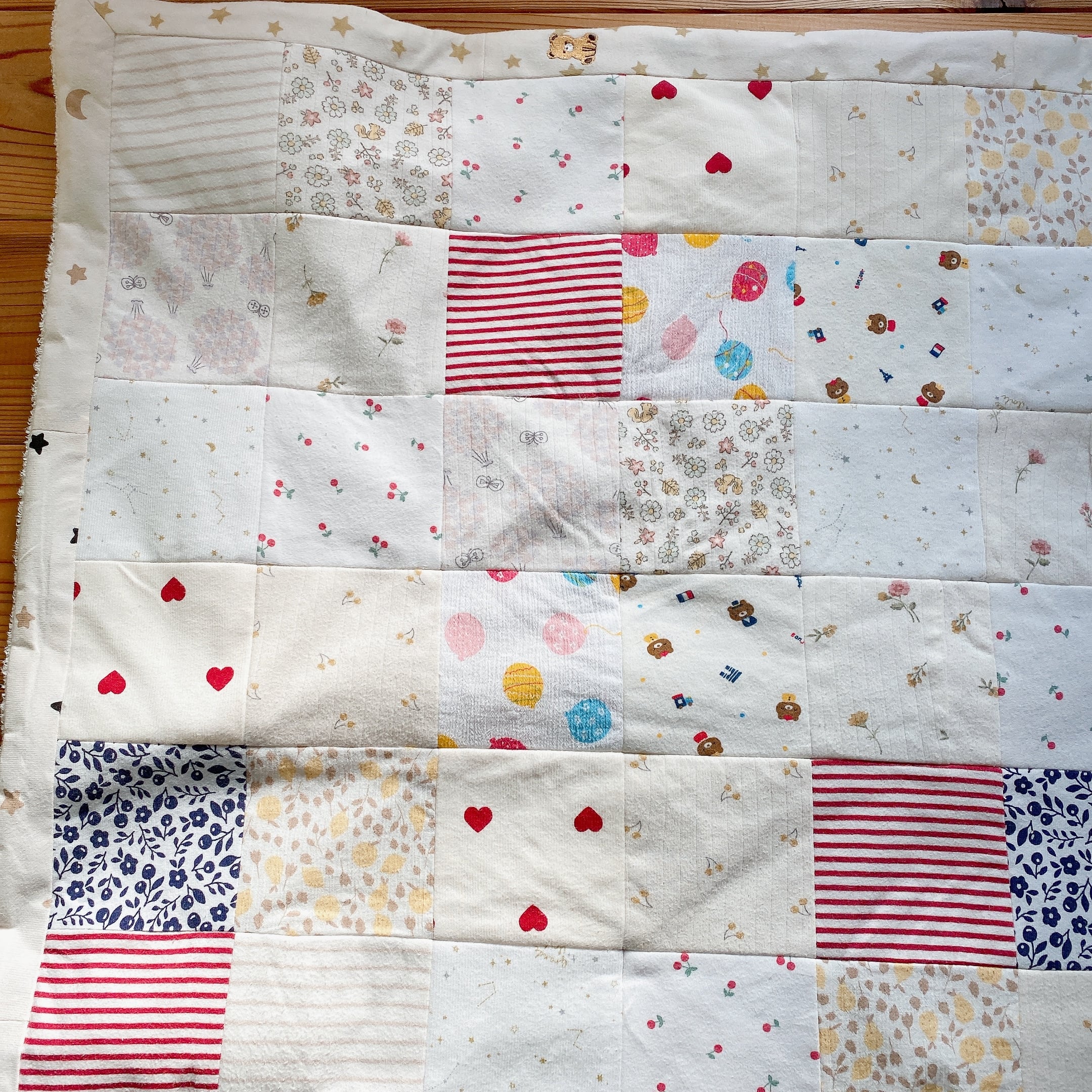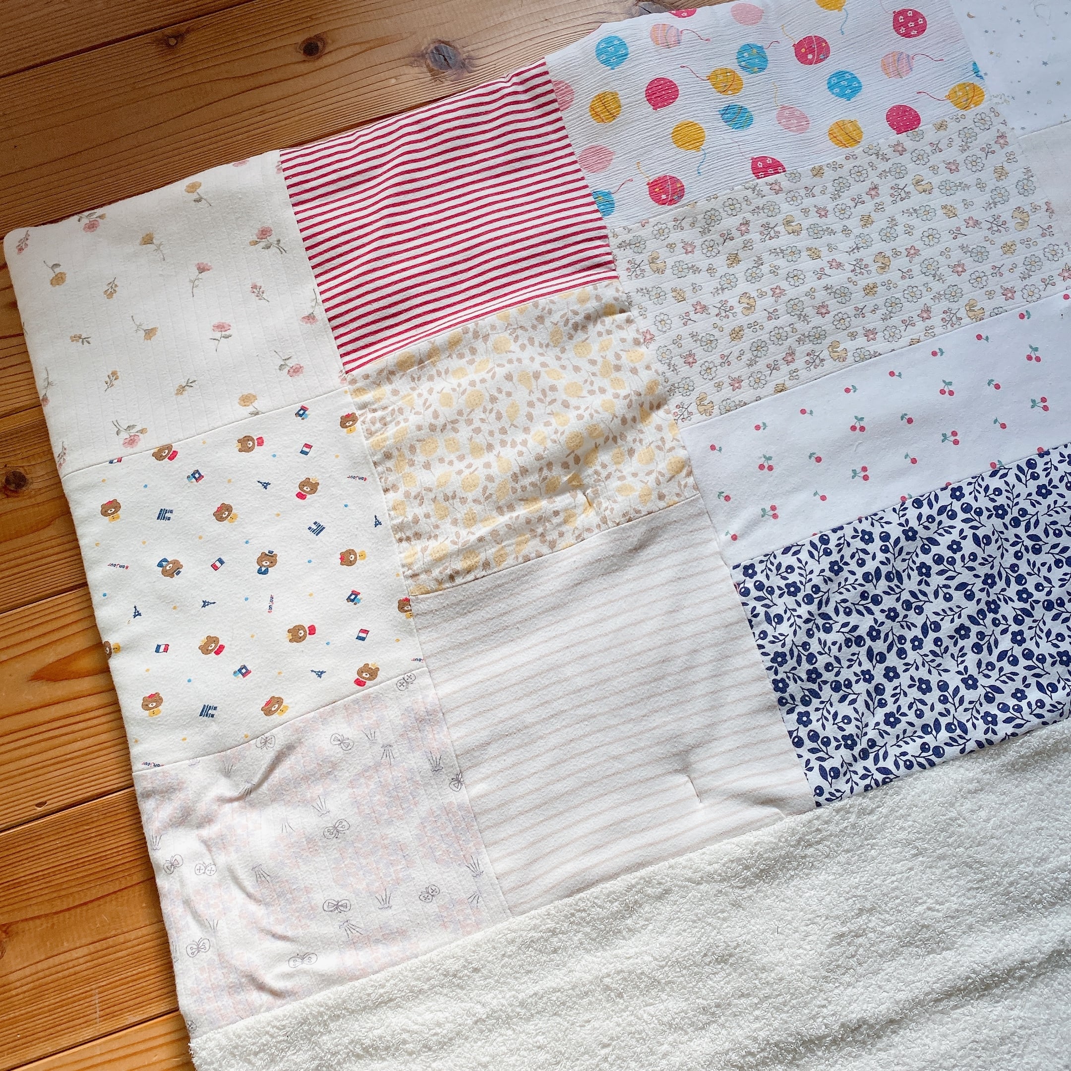 サイズアウトした子供服をブランケットにリメイクしました。