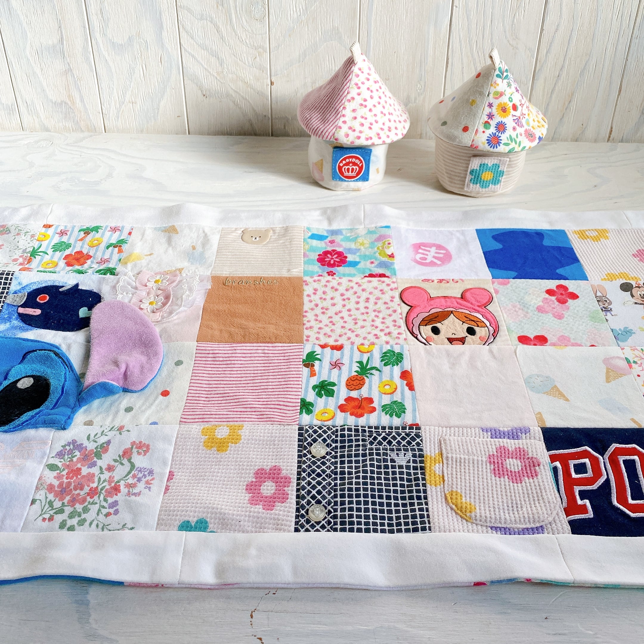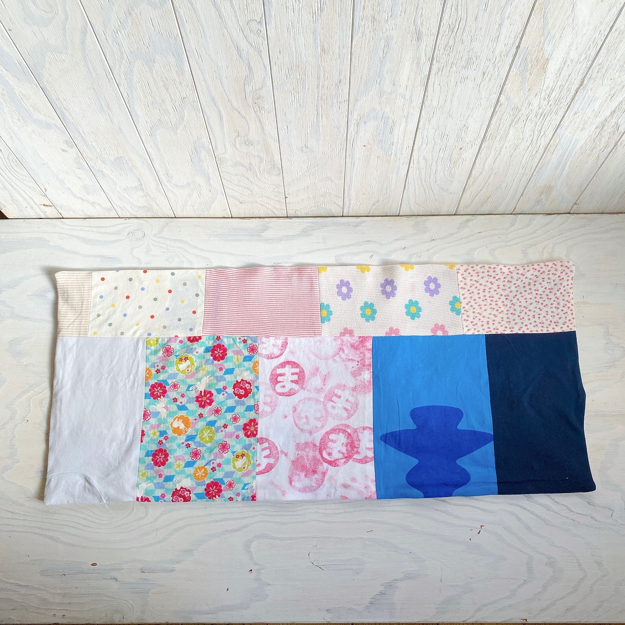 サイズアウトした子供服をパッチワークして壁掛けを作りました