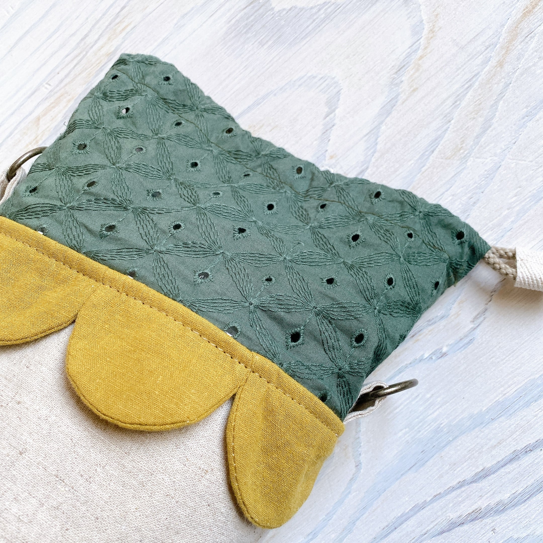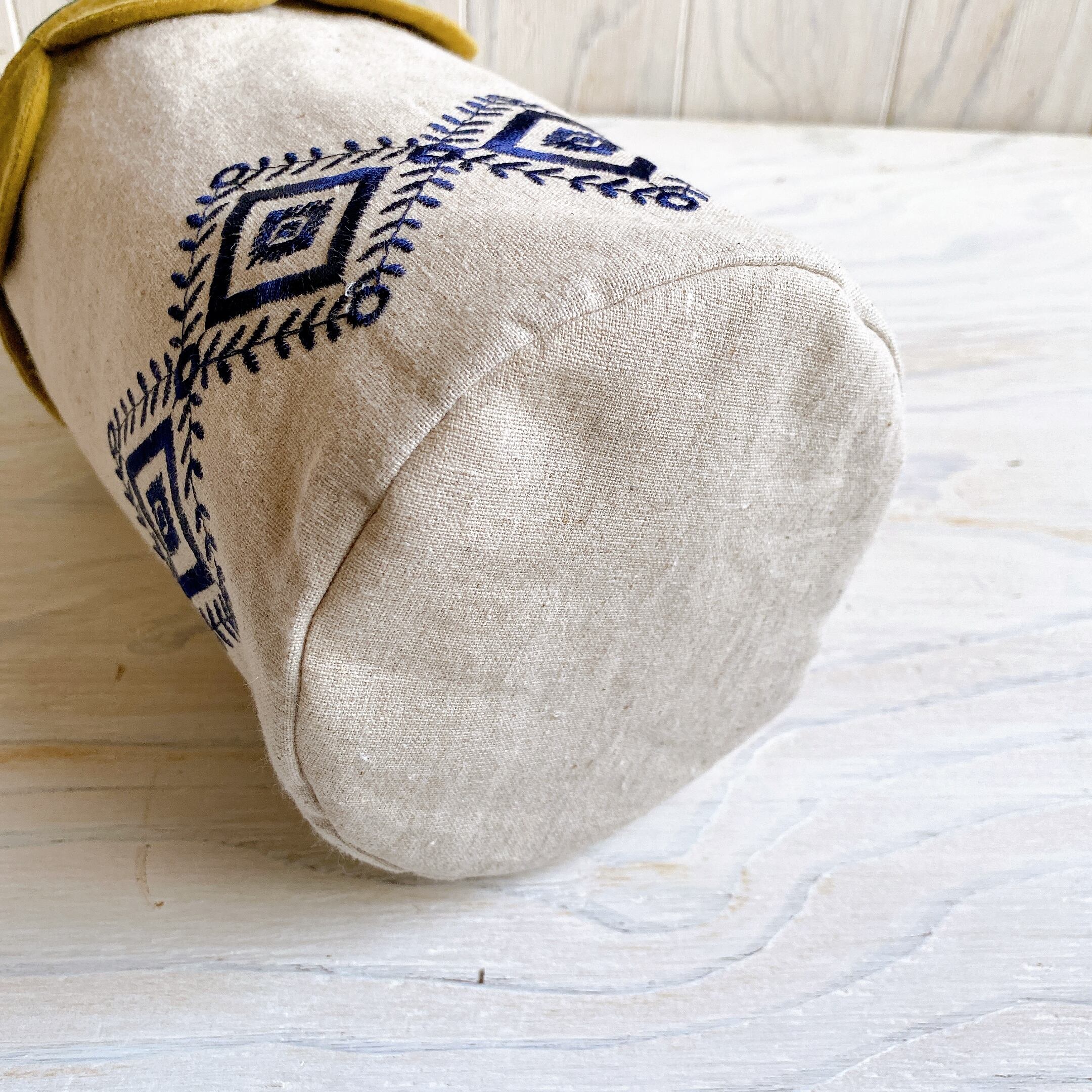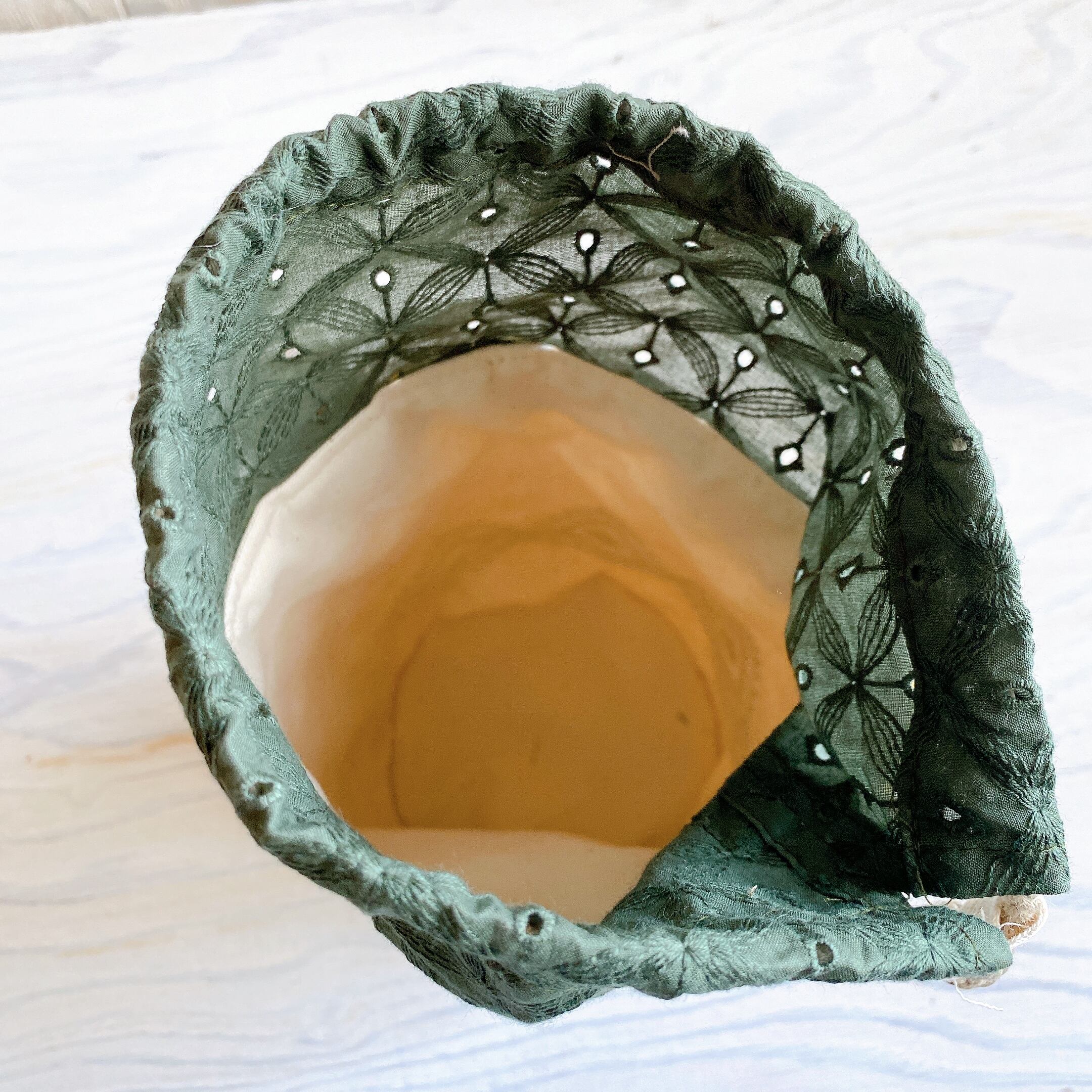 円柱おうち巾着*ひしがた刺繍×カーキ
