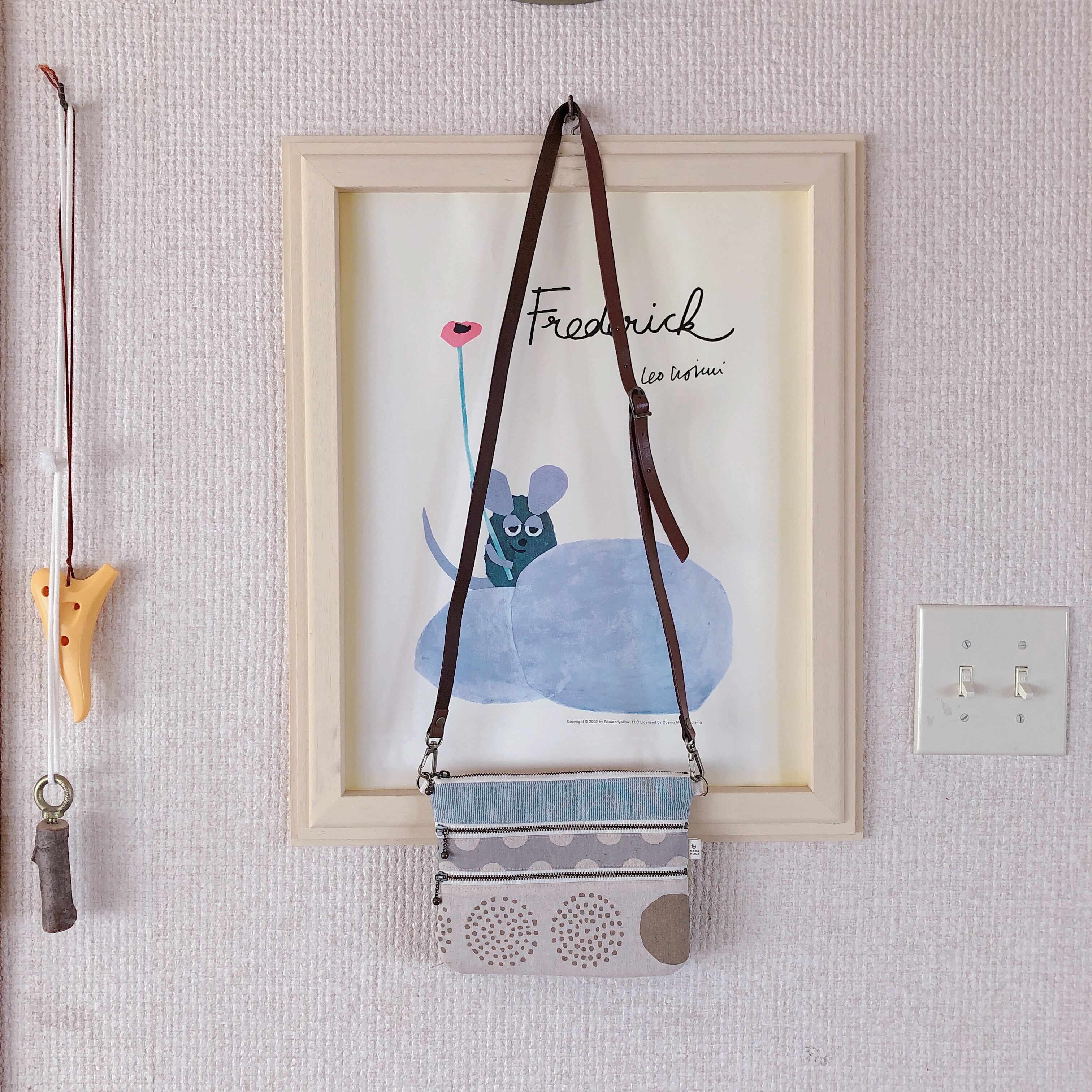 別途販売のストラップをつけるとポシェットになります。