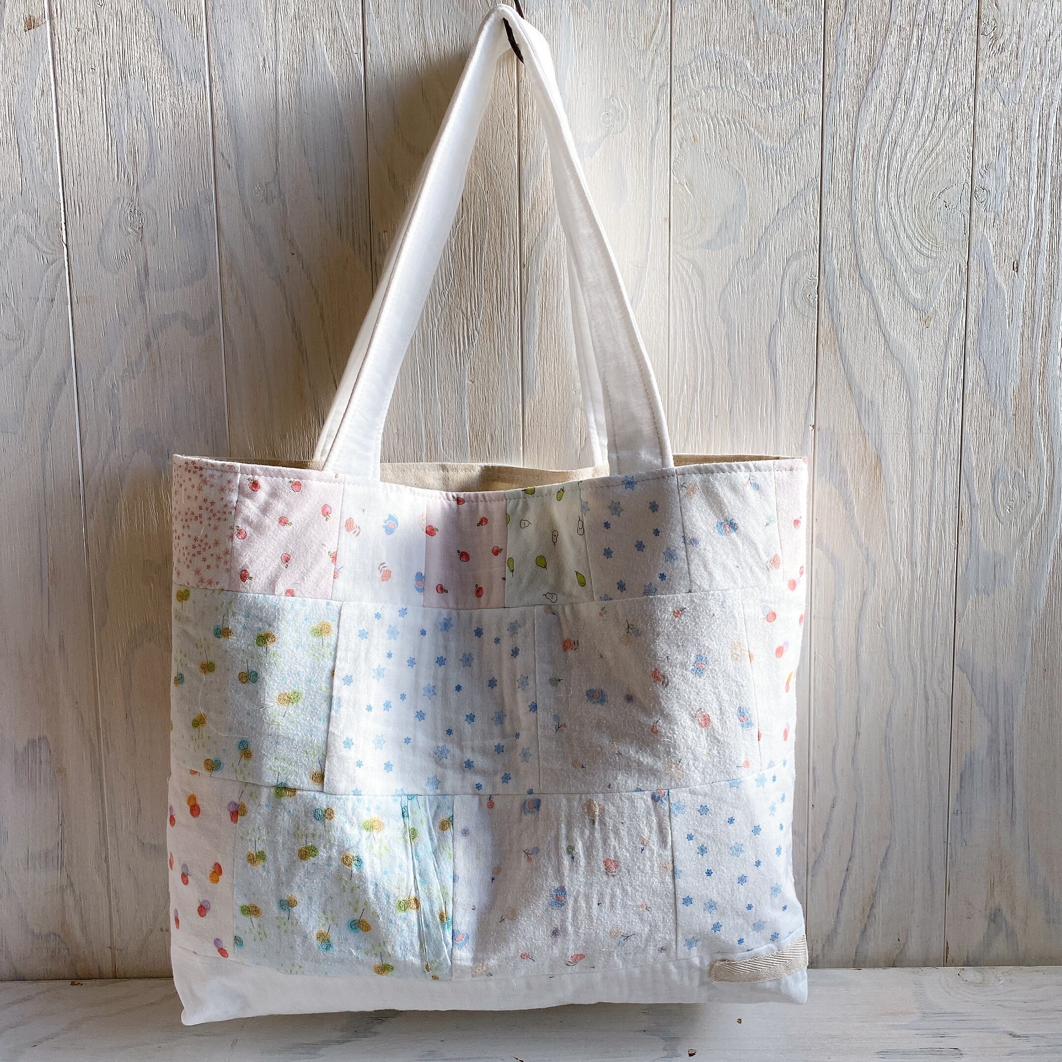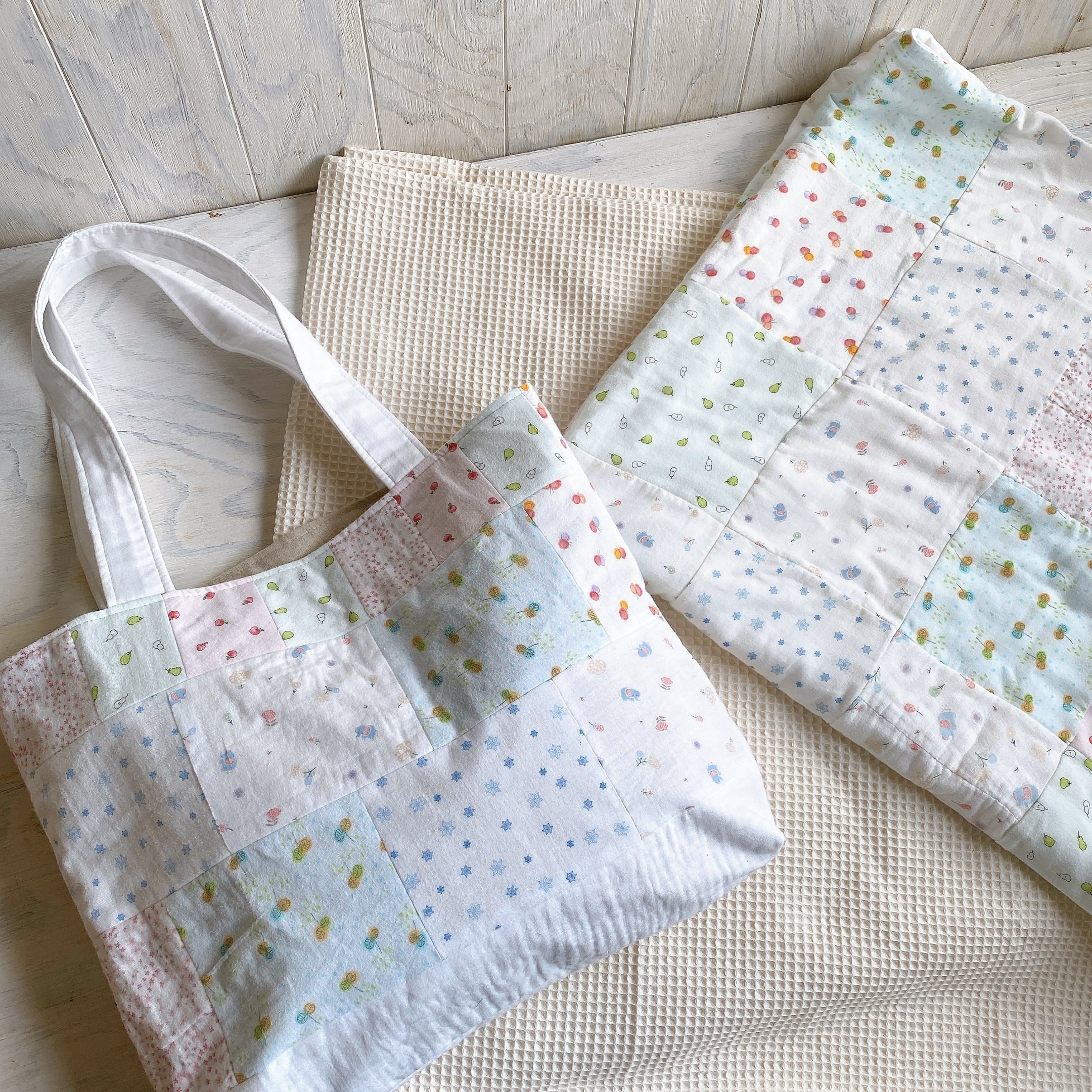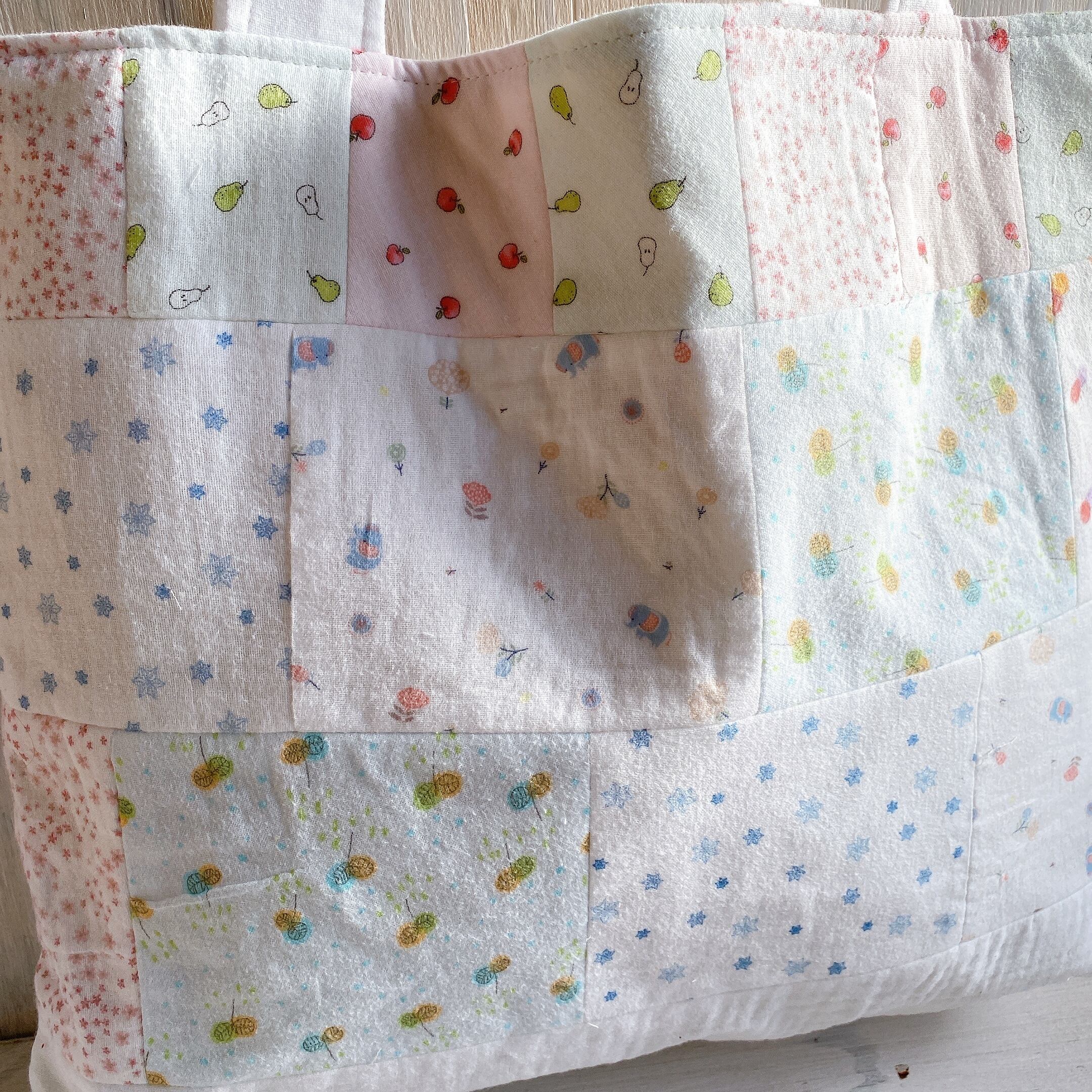ガーゼ肌着をパッチワークして作った毛布カバー