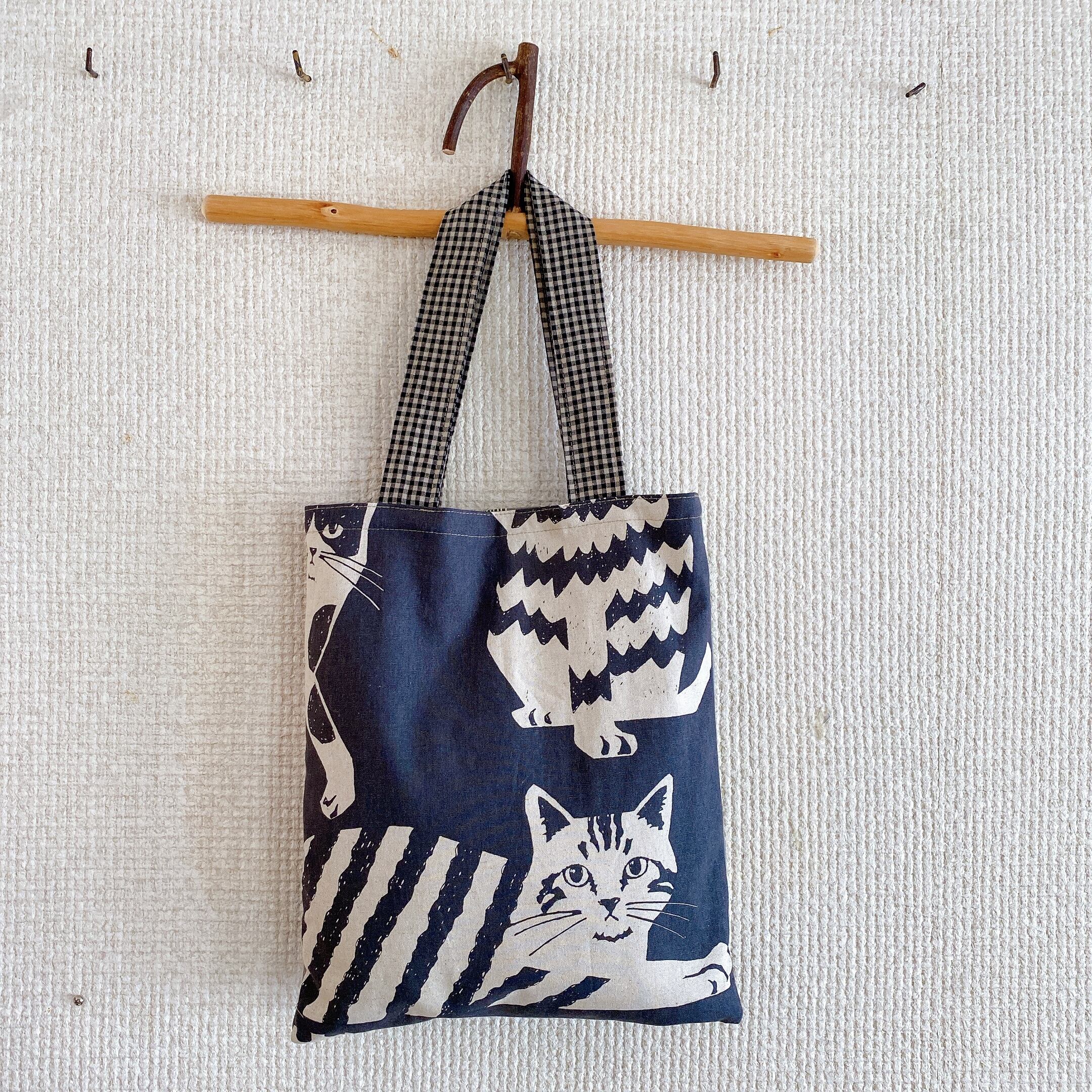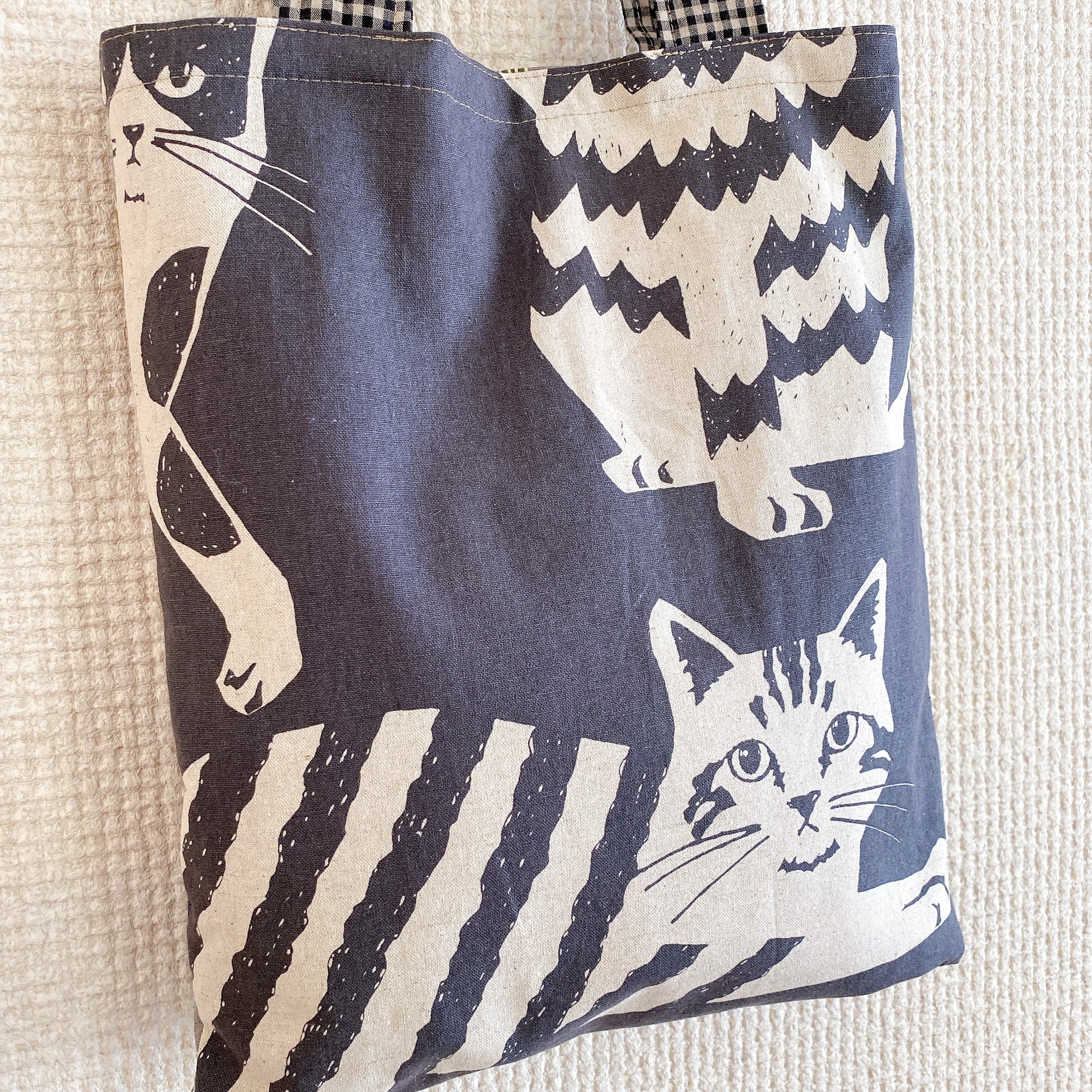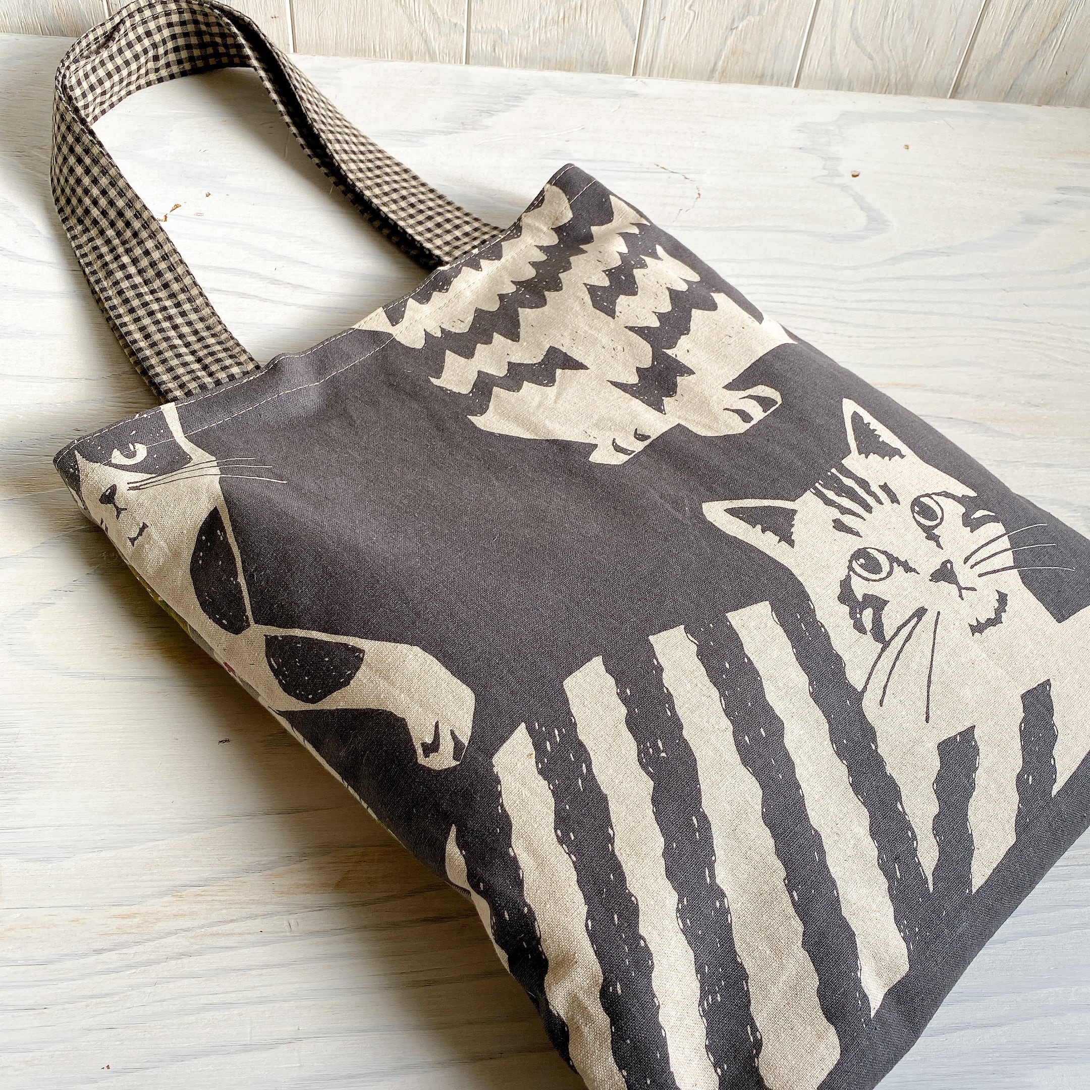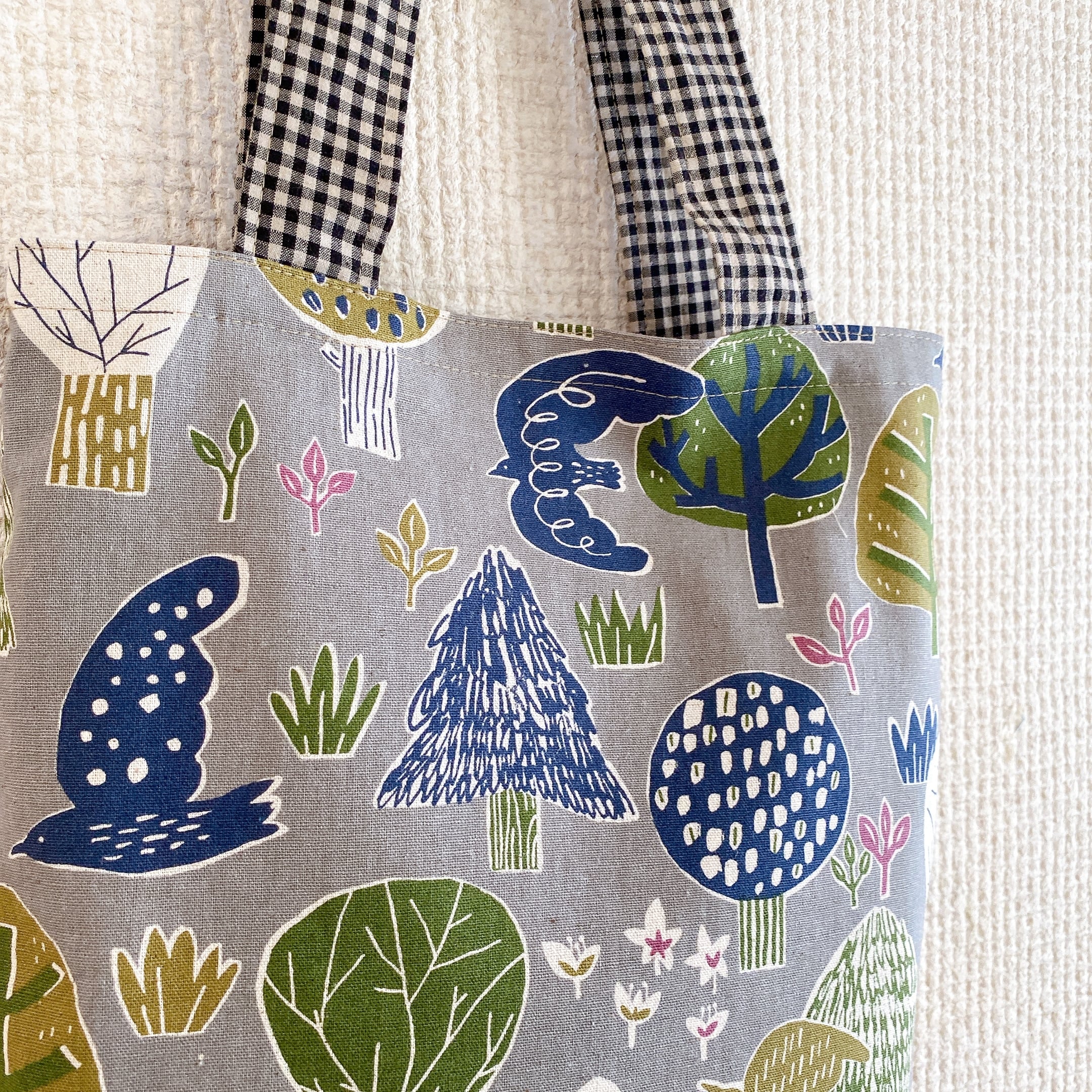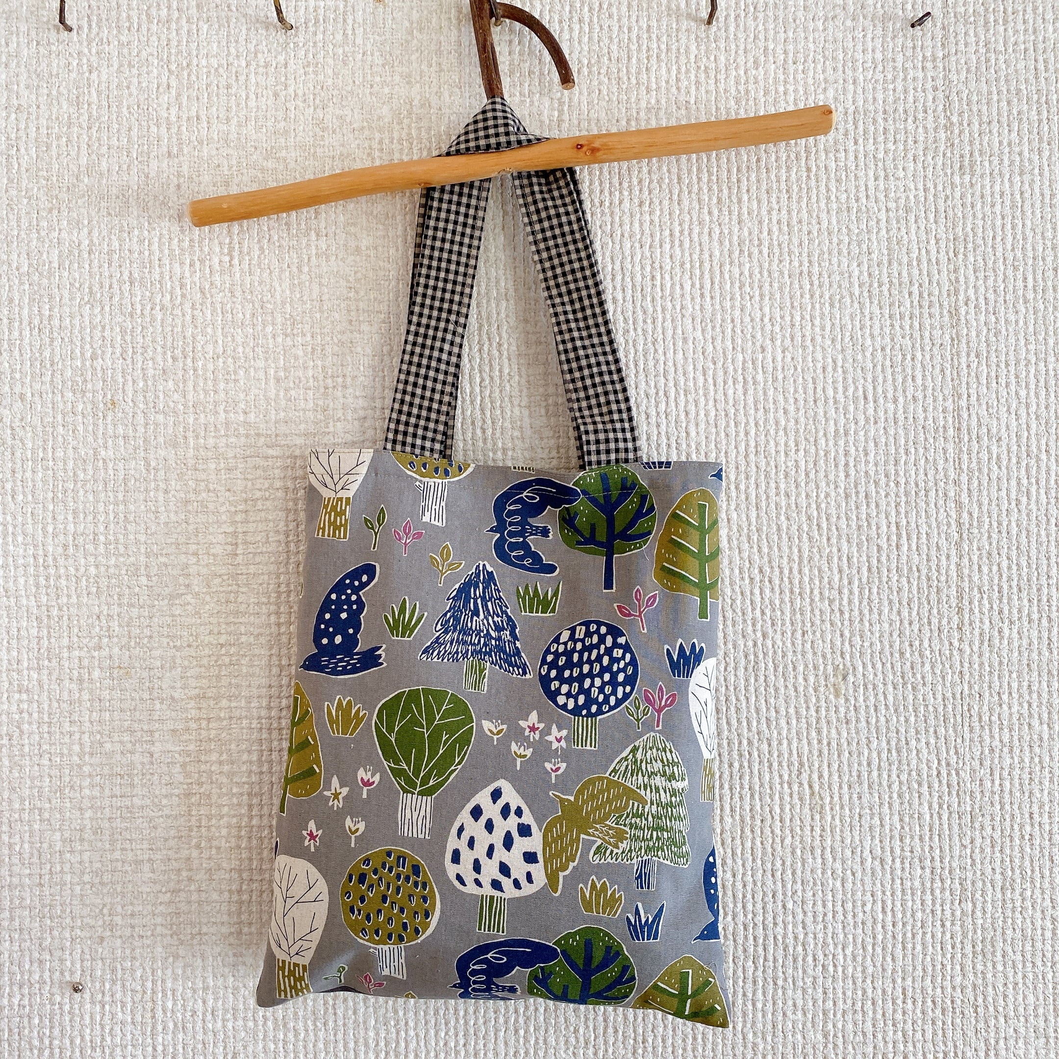 両面楽しめる手提げバック(A4サイズ)ネコ×森・グレー
