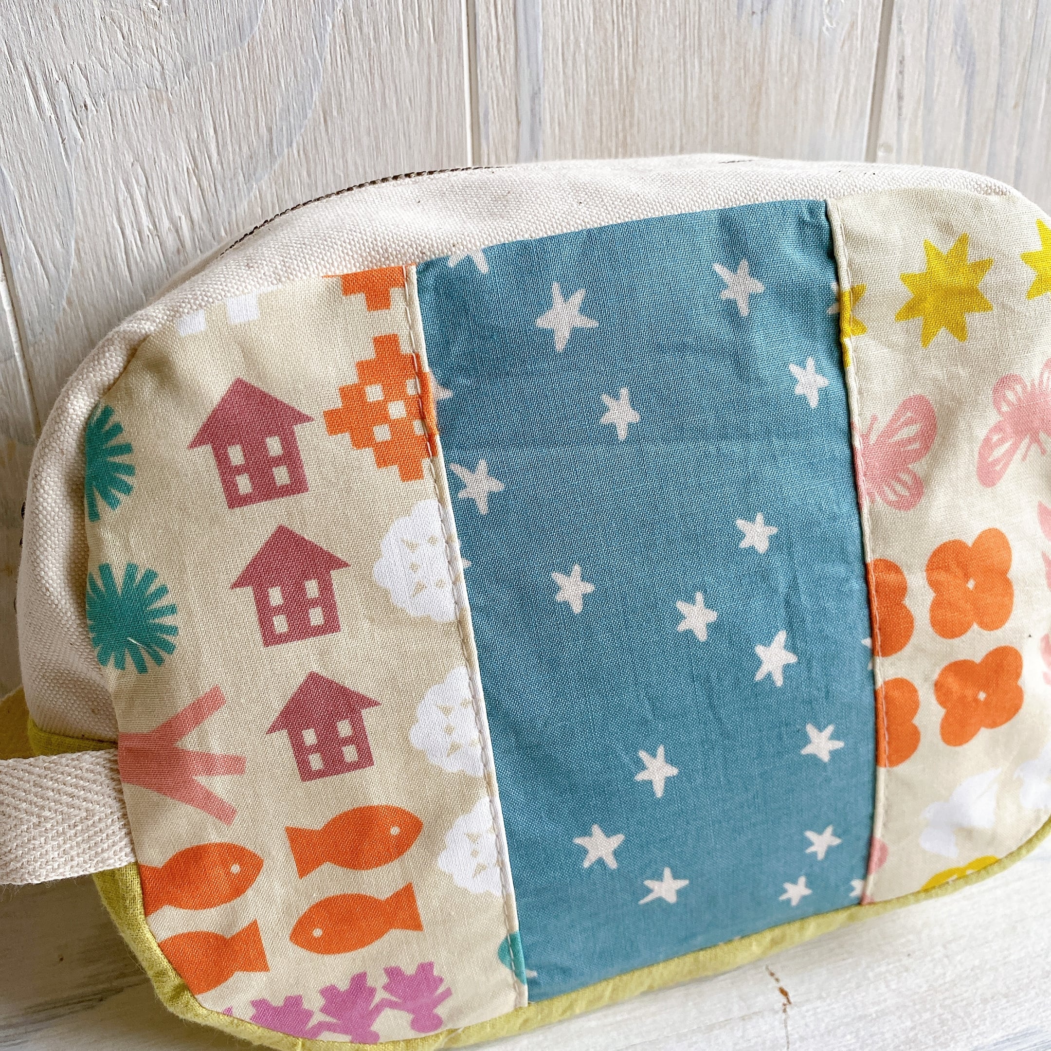 マチが広くて、使いやすい大きさのポーチ作りました。