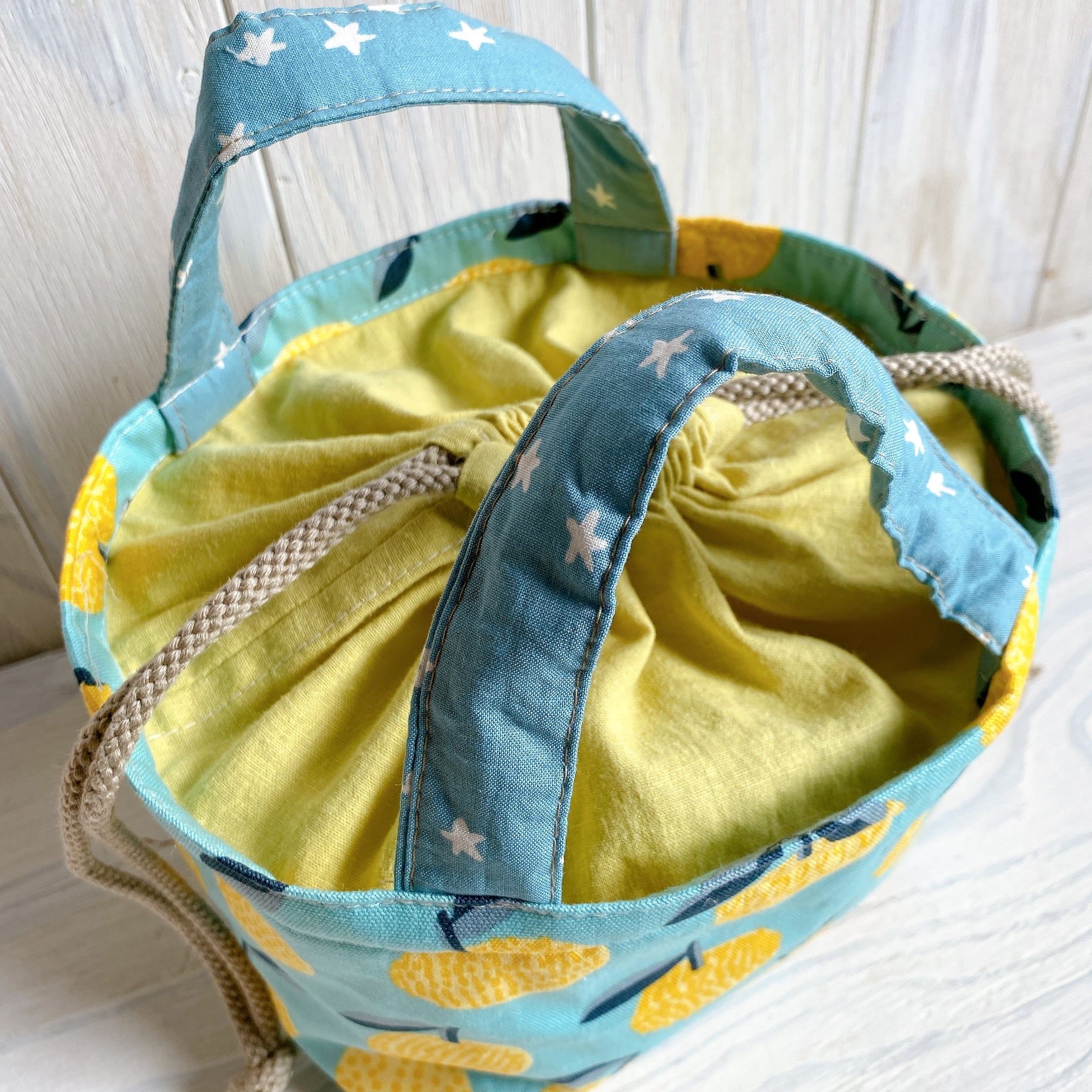 3種類の生地を組み合わせて、巾着付きのバックを作りました。