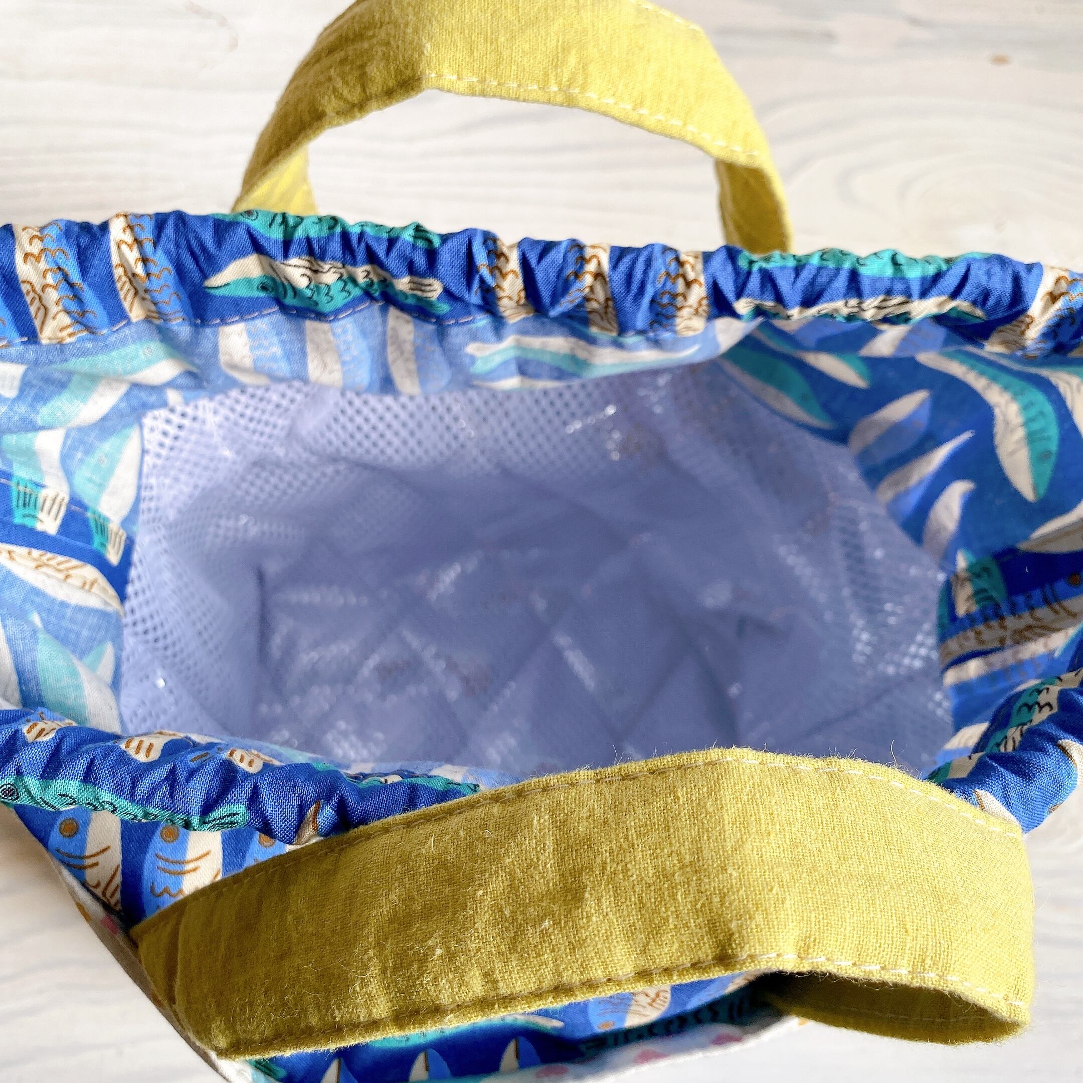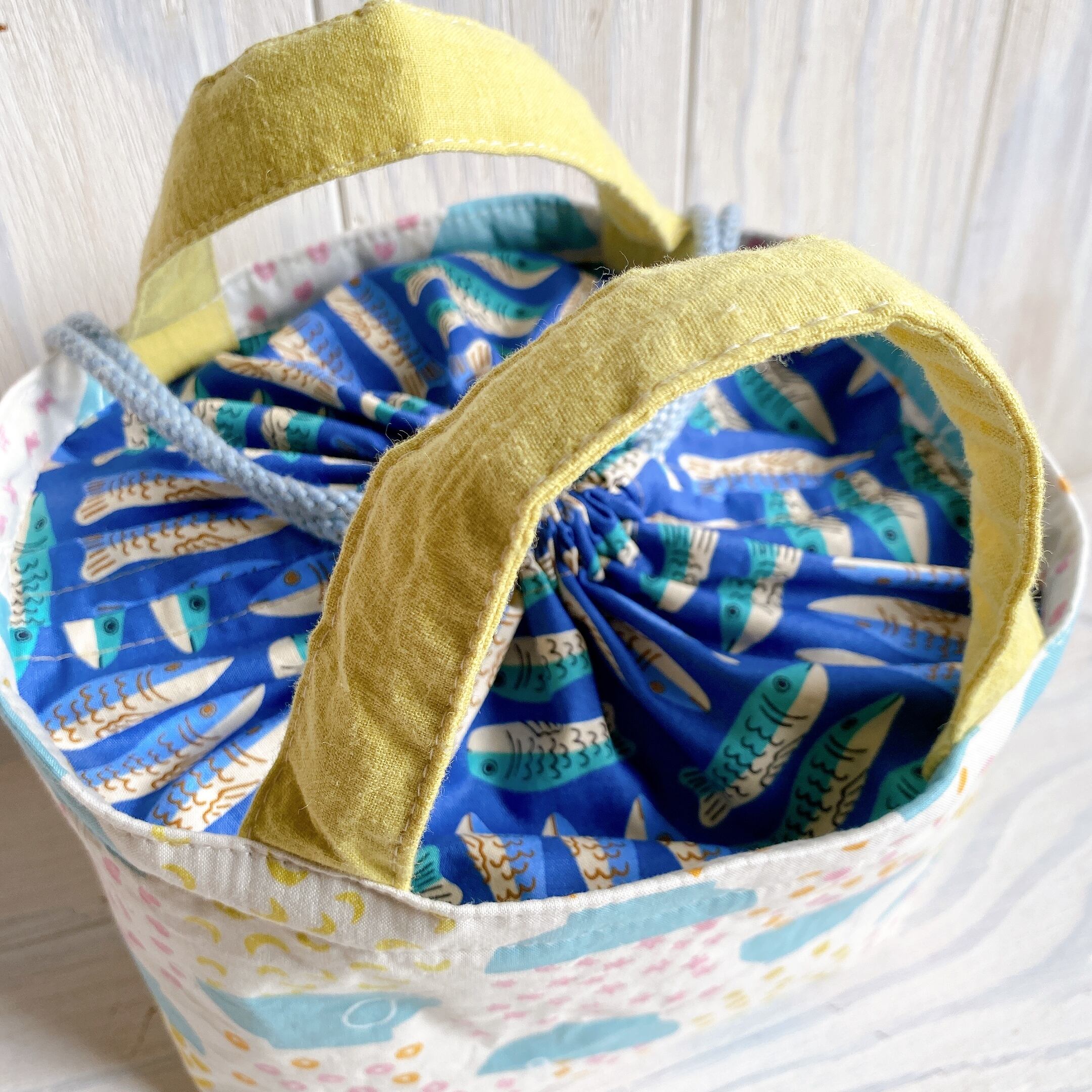 3種類の生地を組み合わせて、巾着付きのバックを作りました。