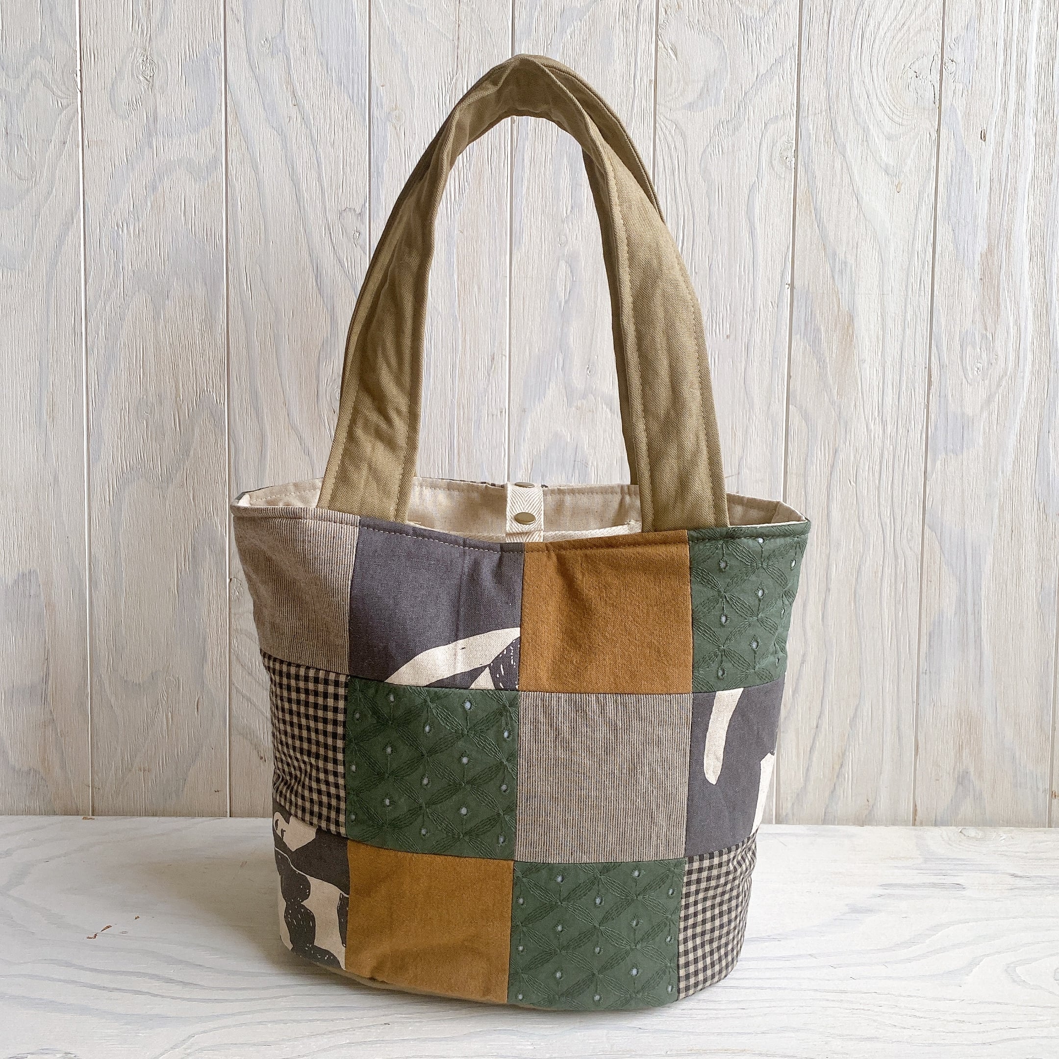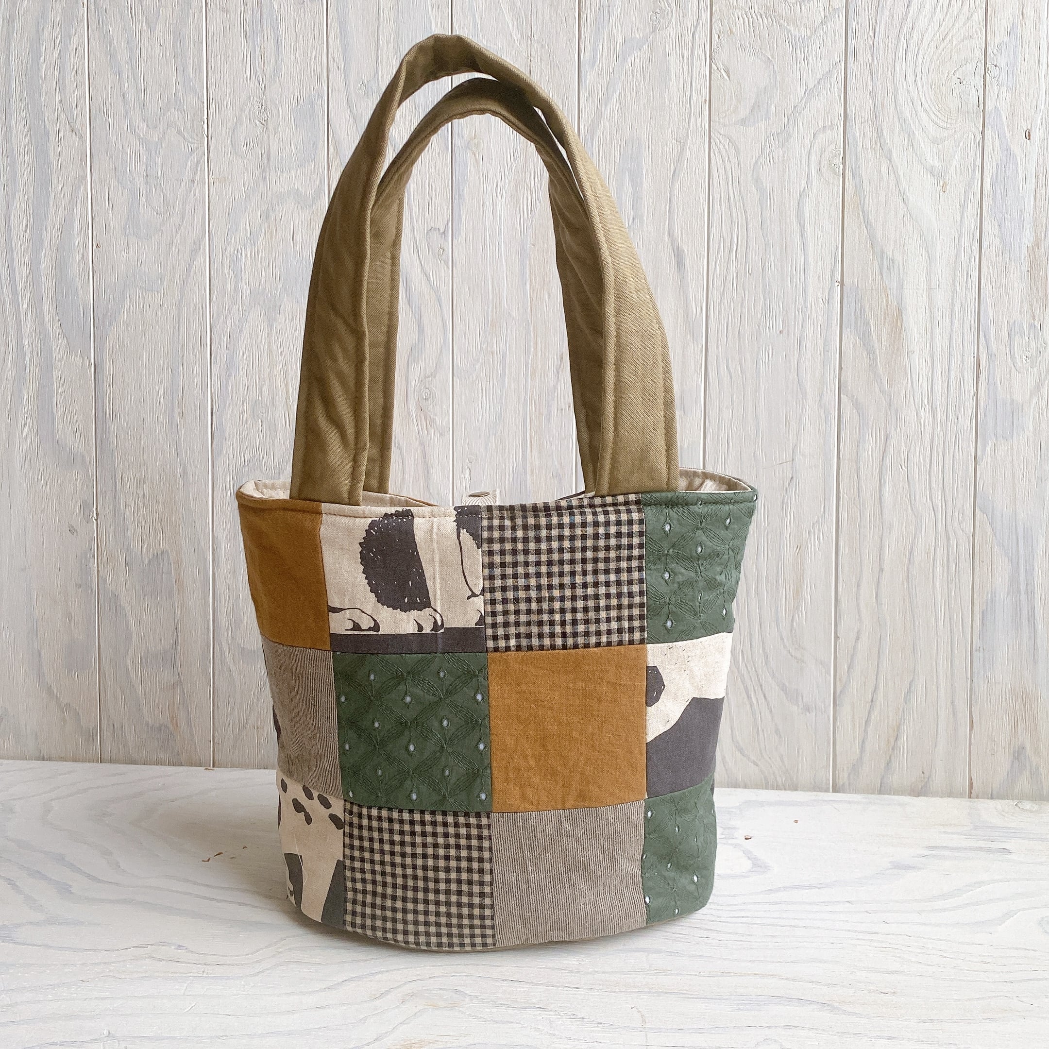 パッチワークのふんわりバケツトート(ねこ)