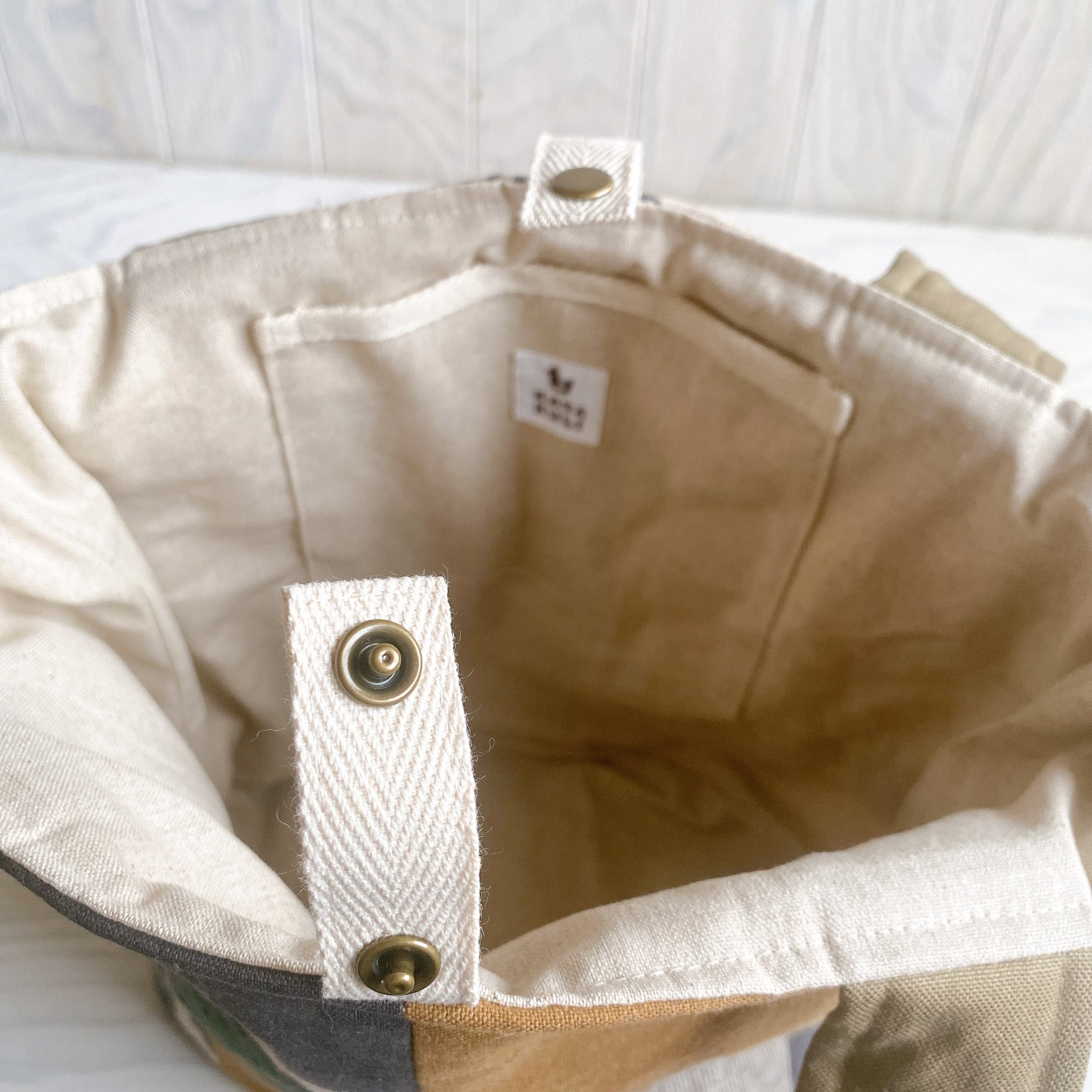 入り口にはアンティークゴールドのスナップを付けました