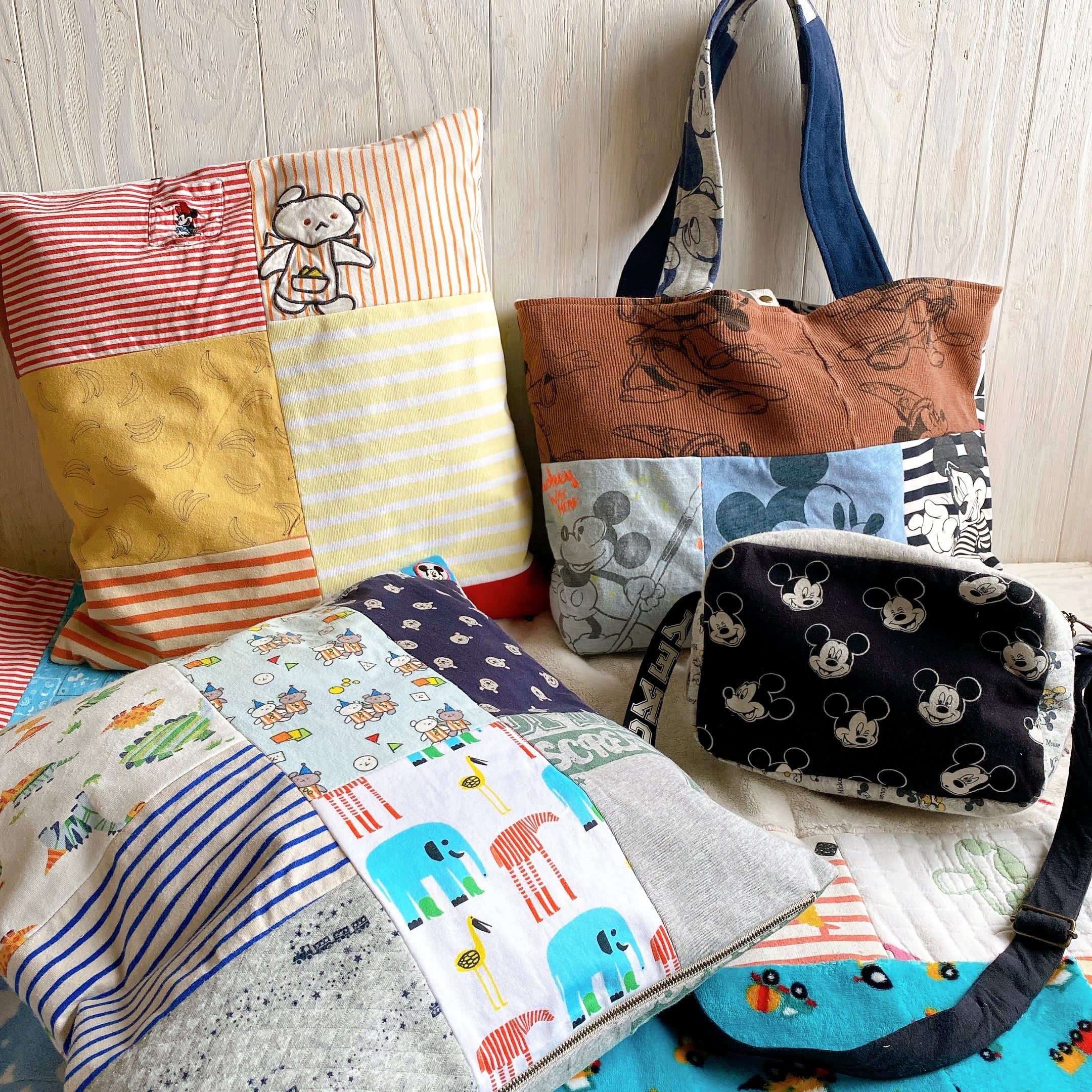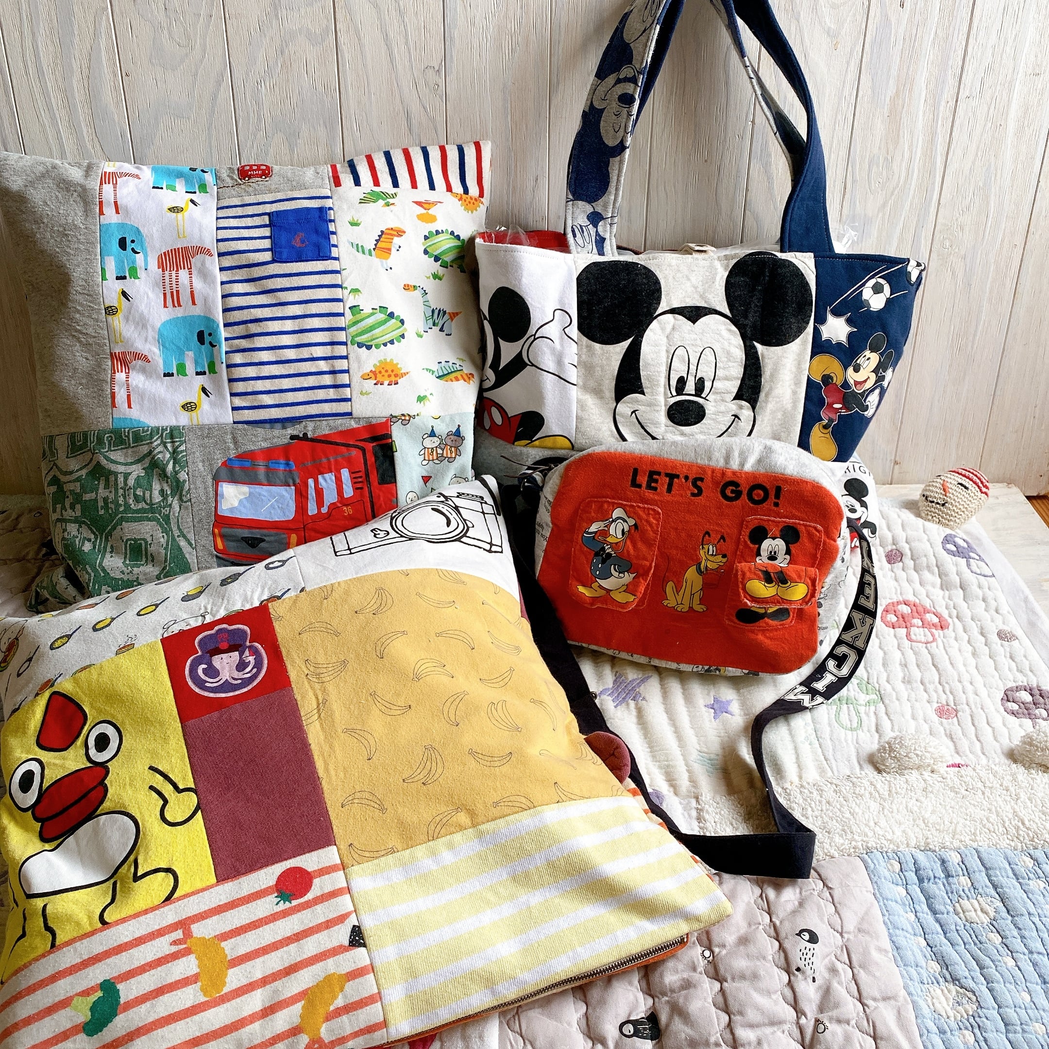 サイズアウトしたお洋服やスリーパーなどをリメイクしました