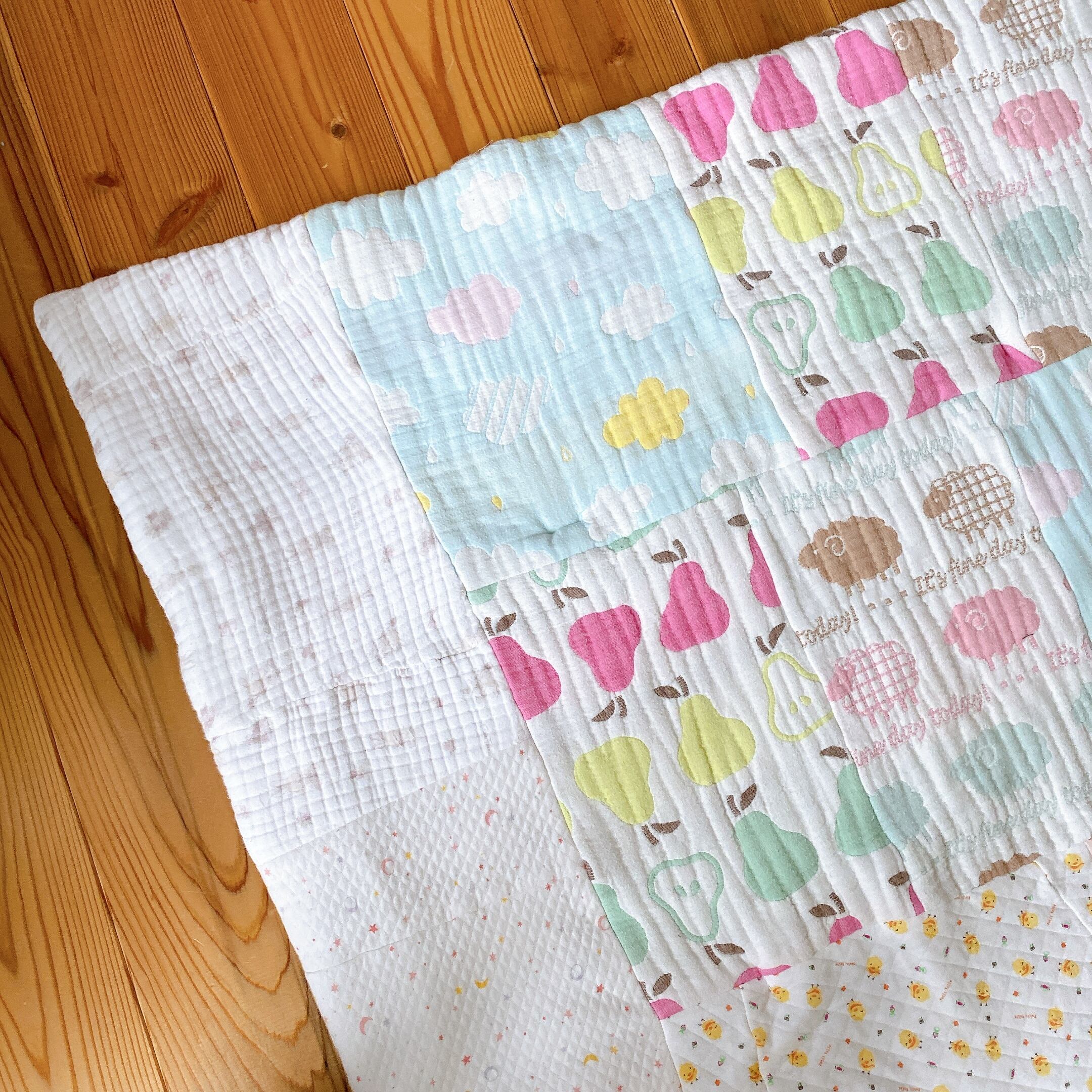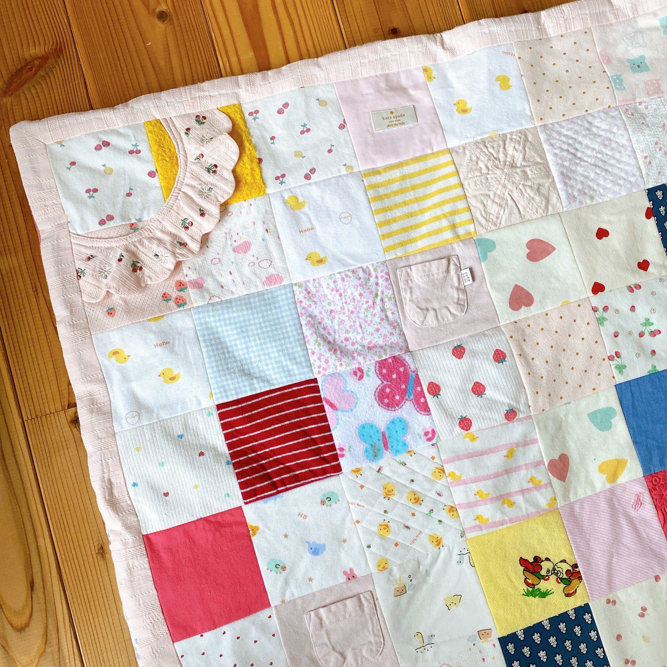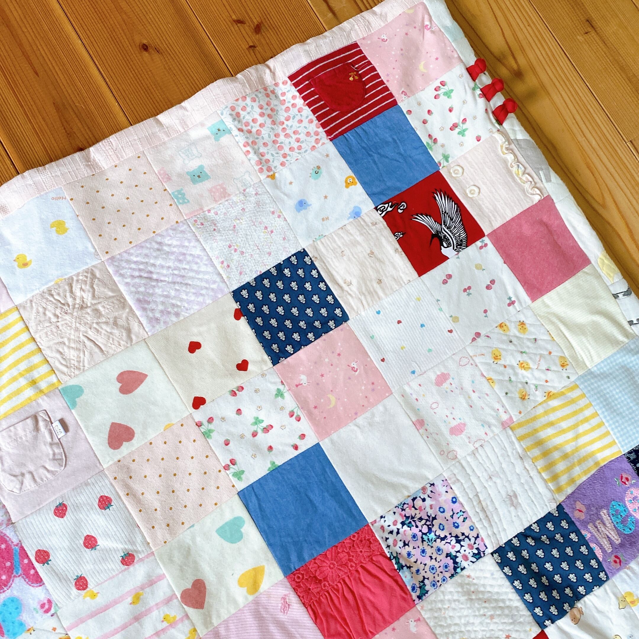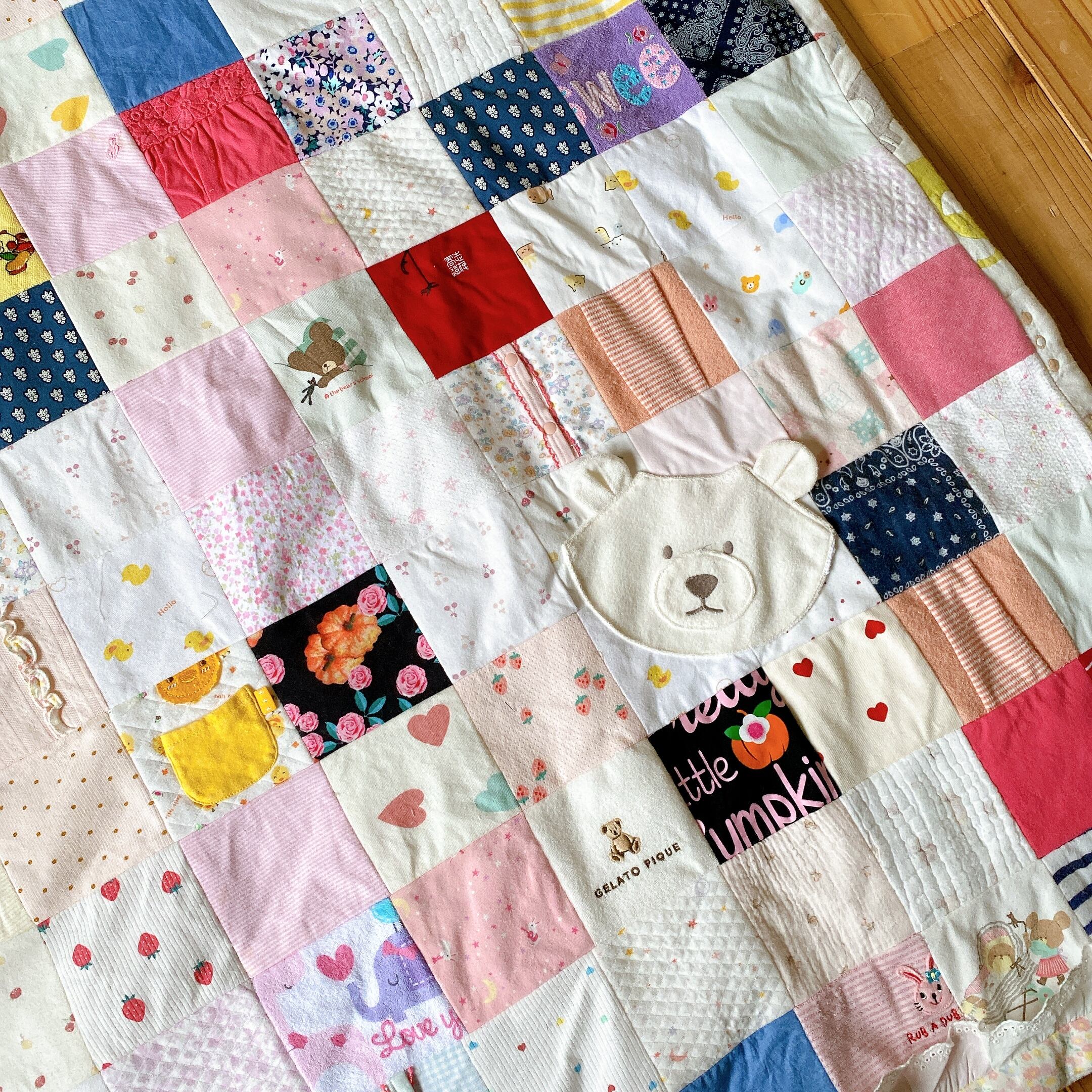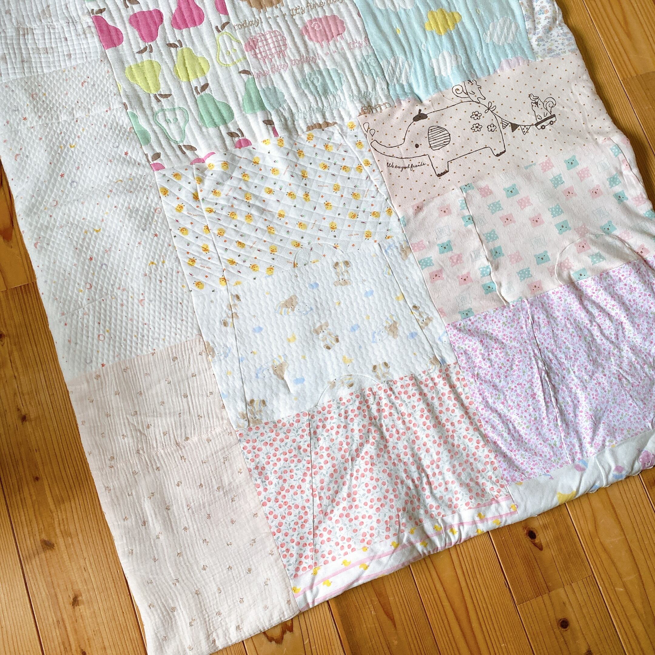サイズアウトしたベビー服をパッチワークしました。