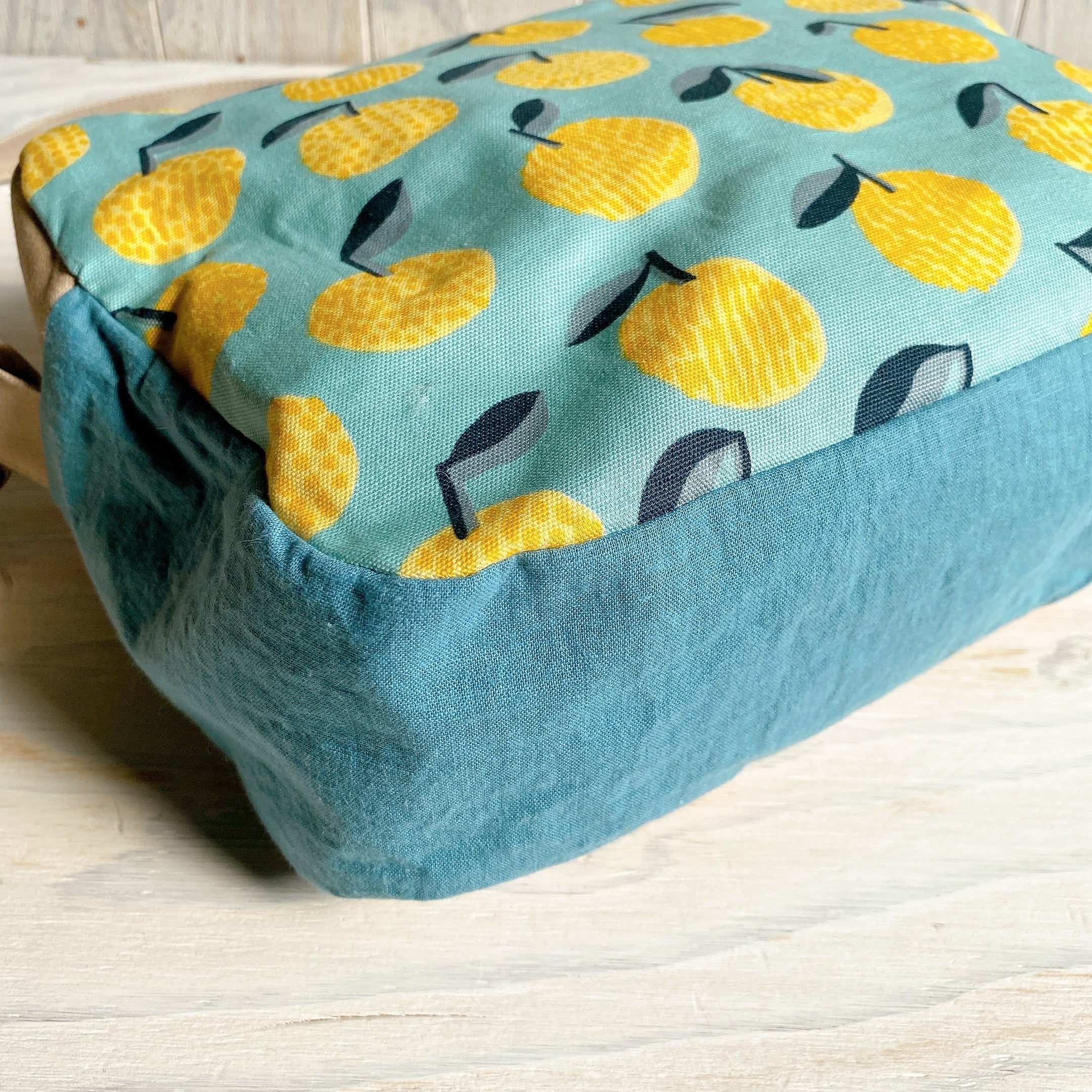 裏地は綿麻キャンバス、マチの部分はハンプの生地を使っていますのでハリがあります
