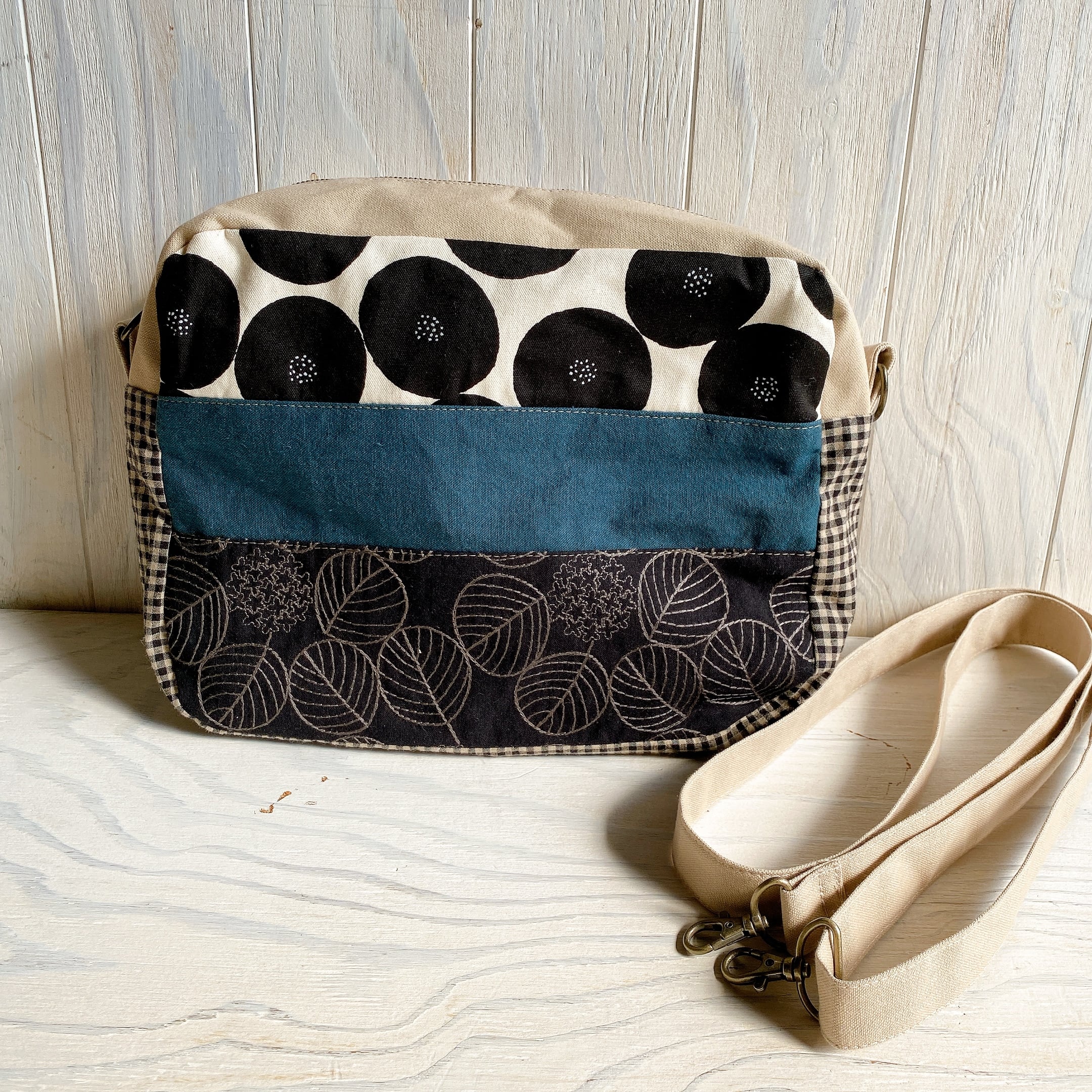 裏地は綿麻キャンバス、マチの部分はハンプの生地を使っていますのでハリがあります