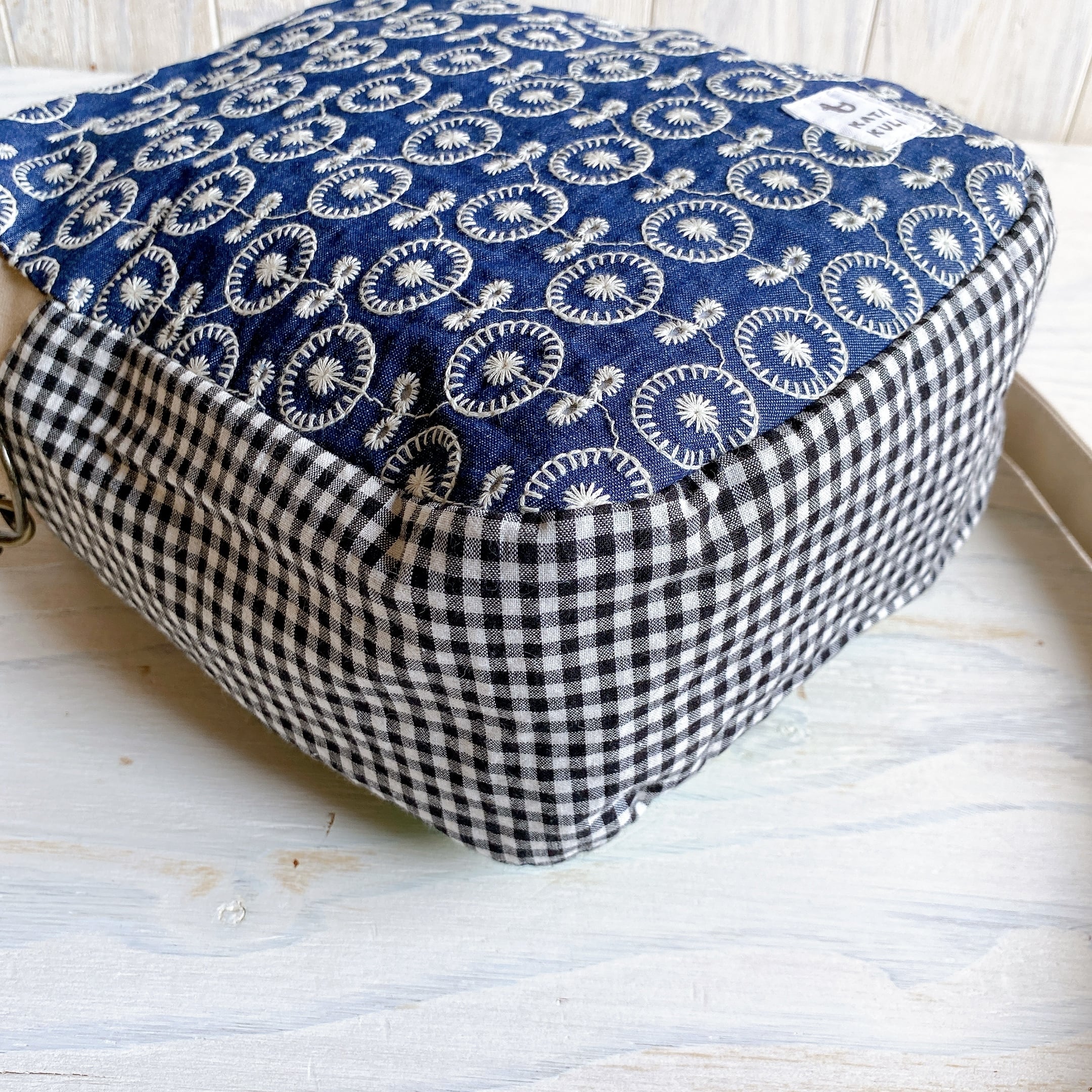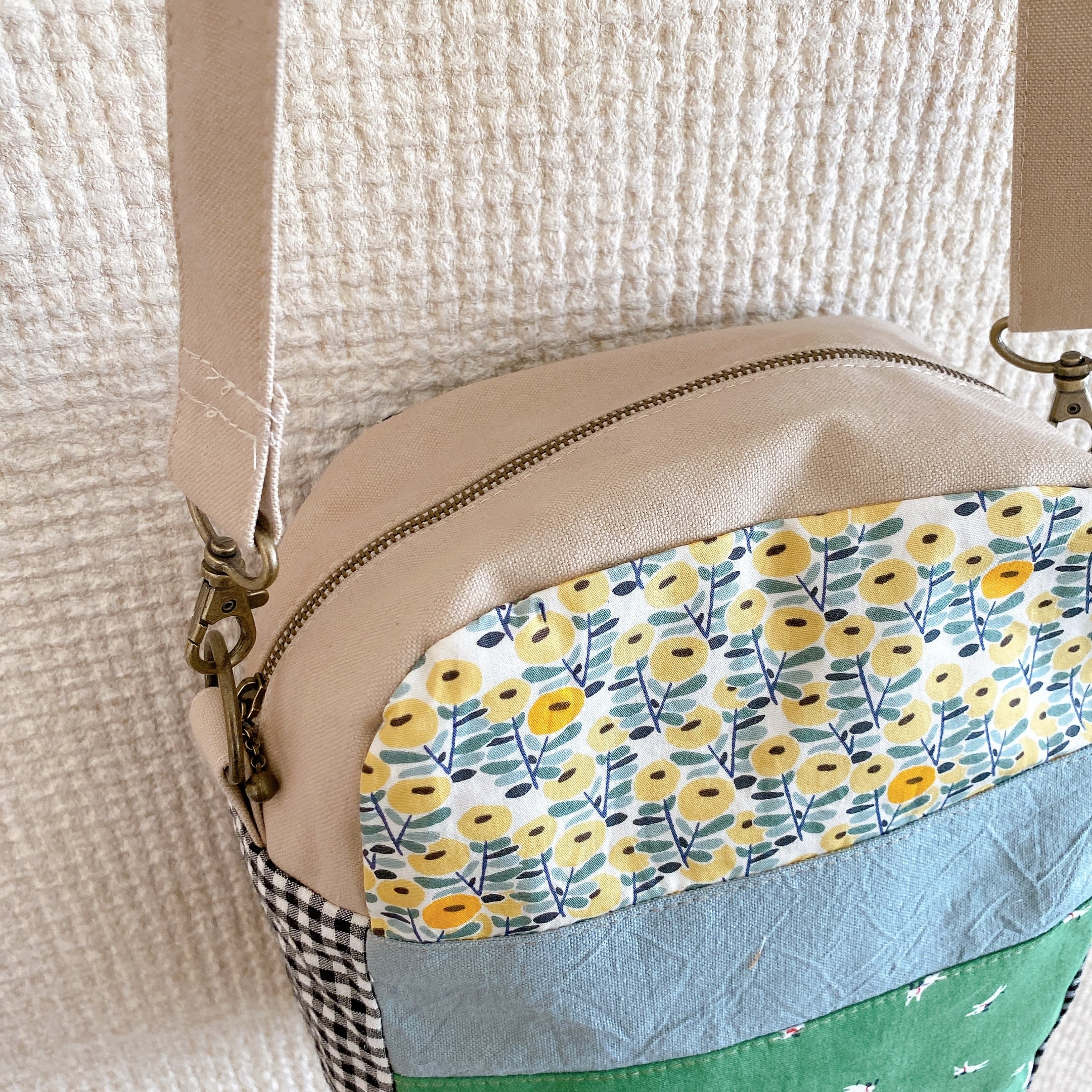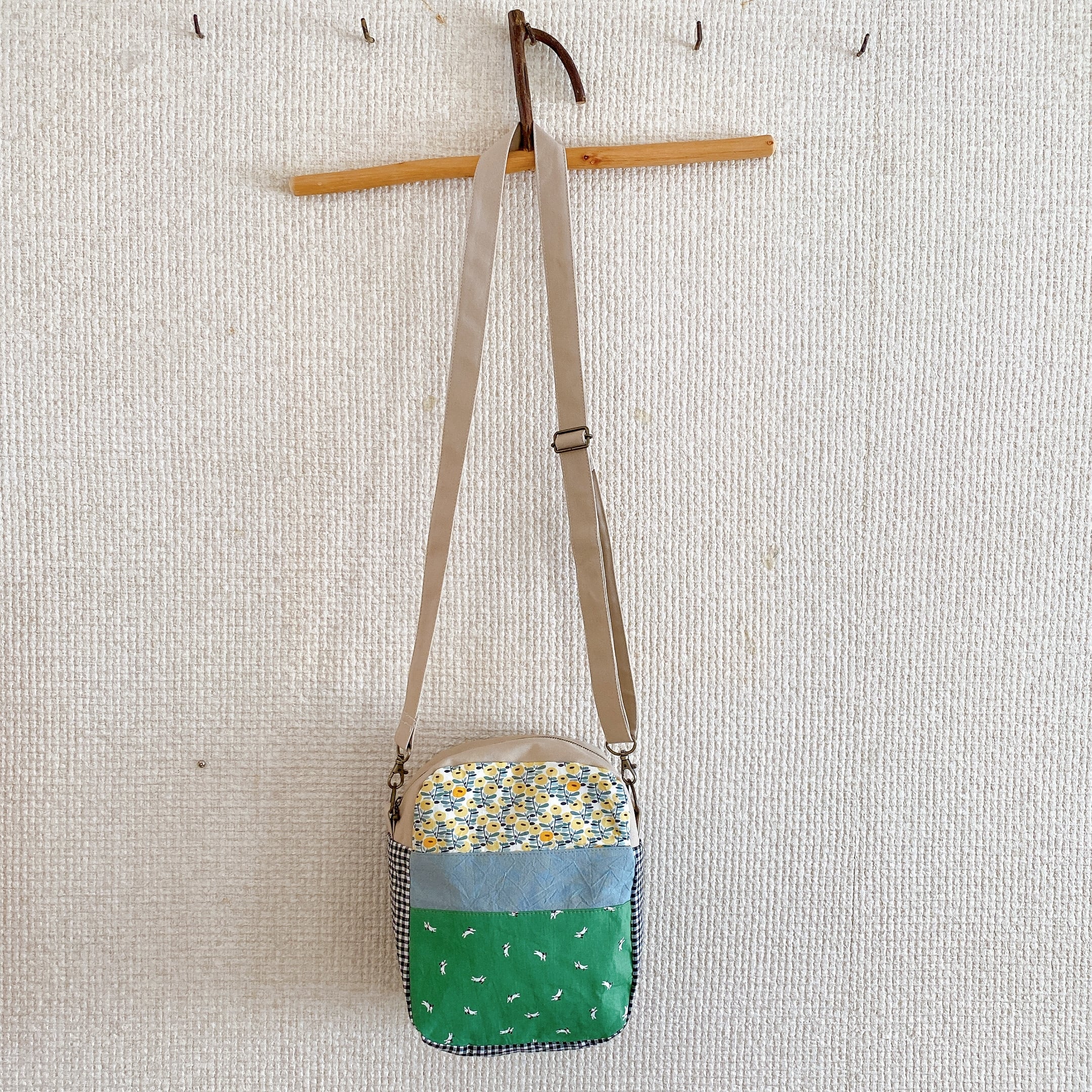 両面さまざまな相性の良い生地を組み合わせて斜め掛けできるおとなのポシェットを作りました。