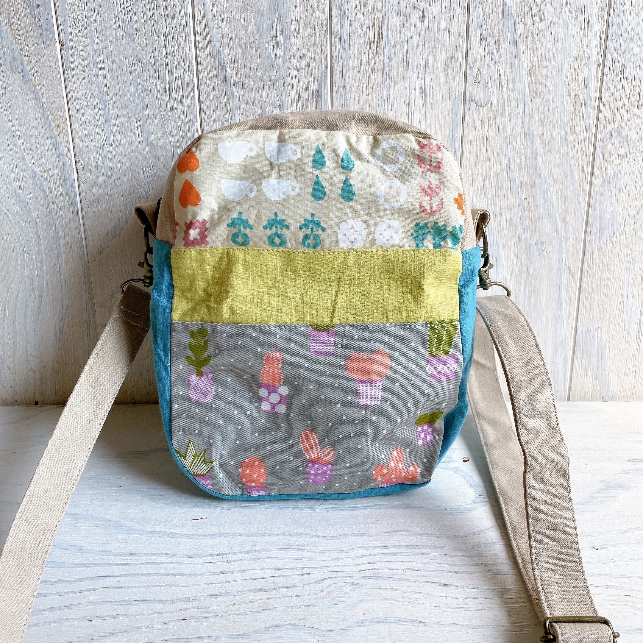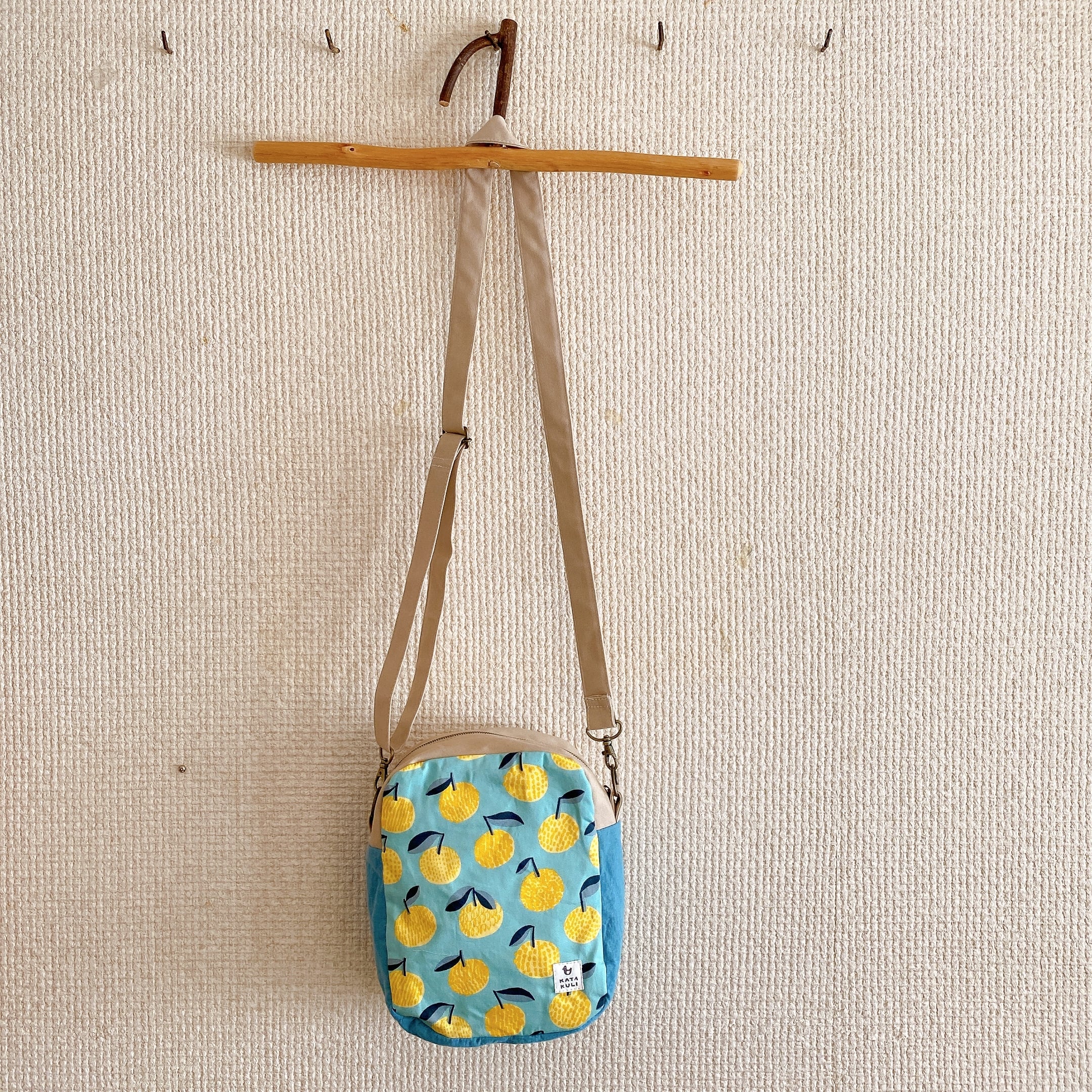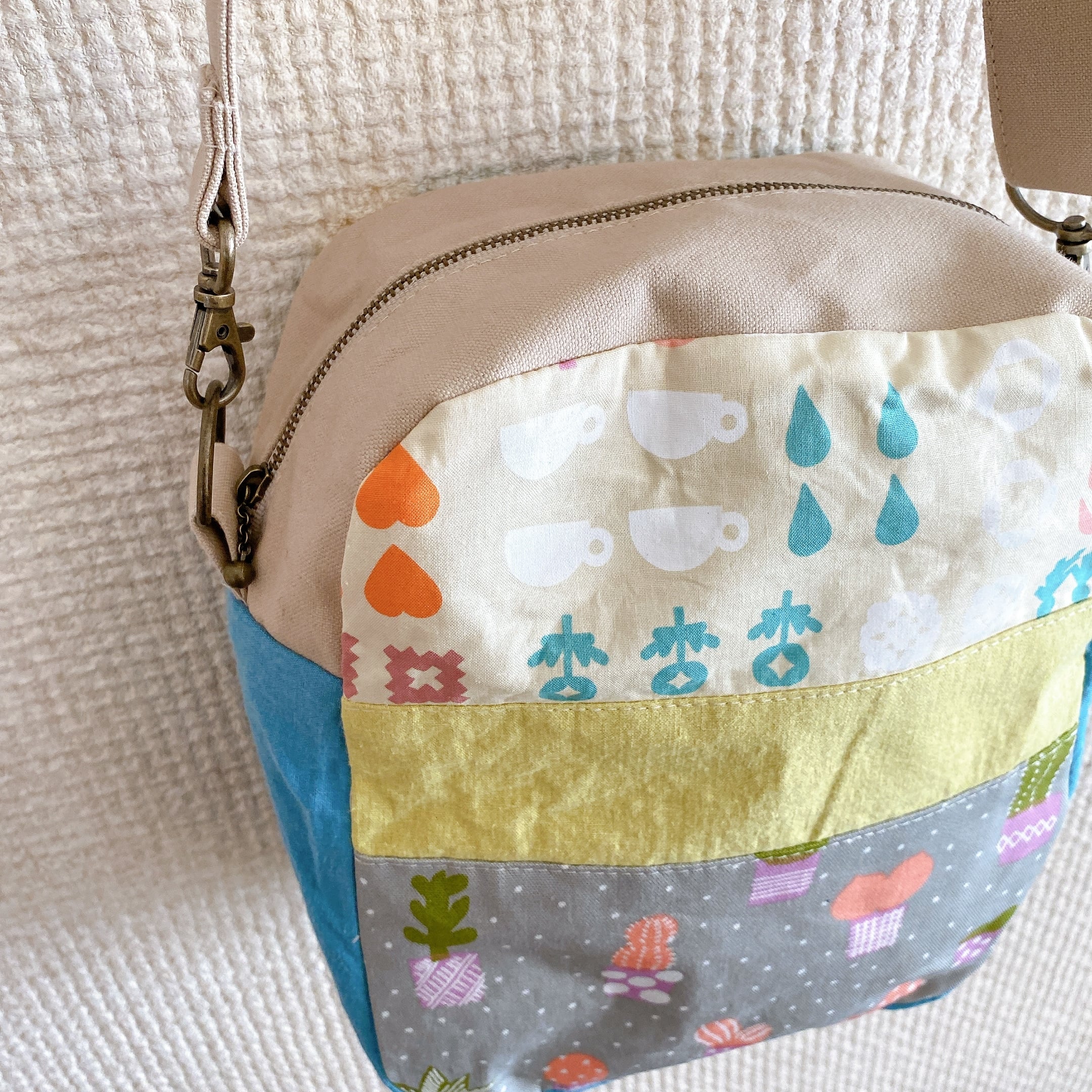 両面さまざまな相性の良い生地を組み合わせて斜め掛けできるおとなのポシェットを作りました。
