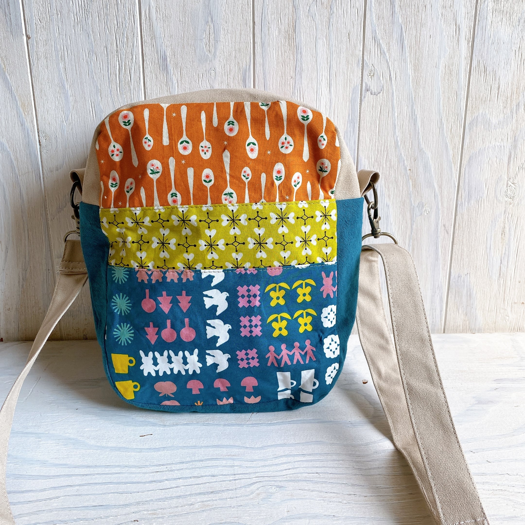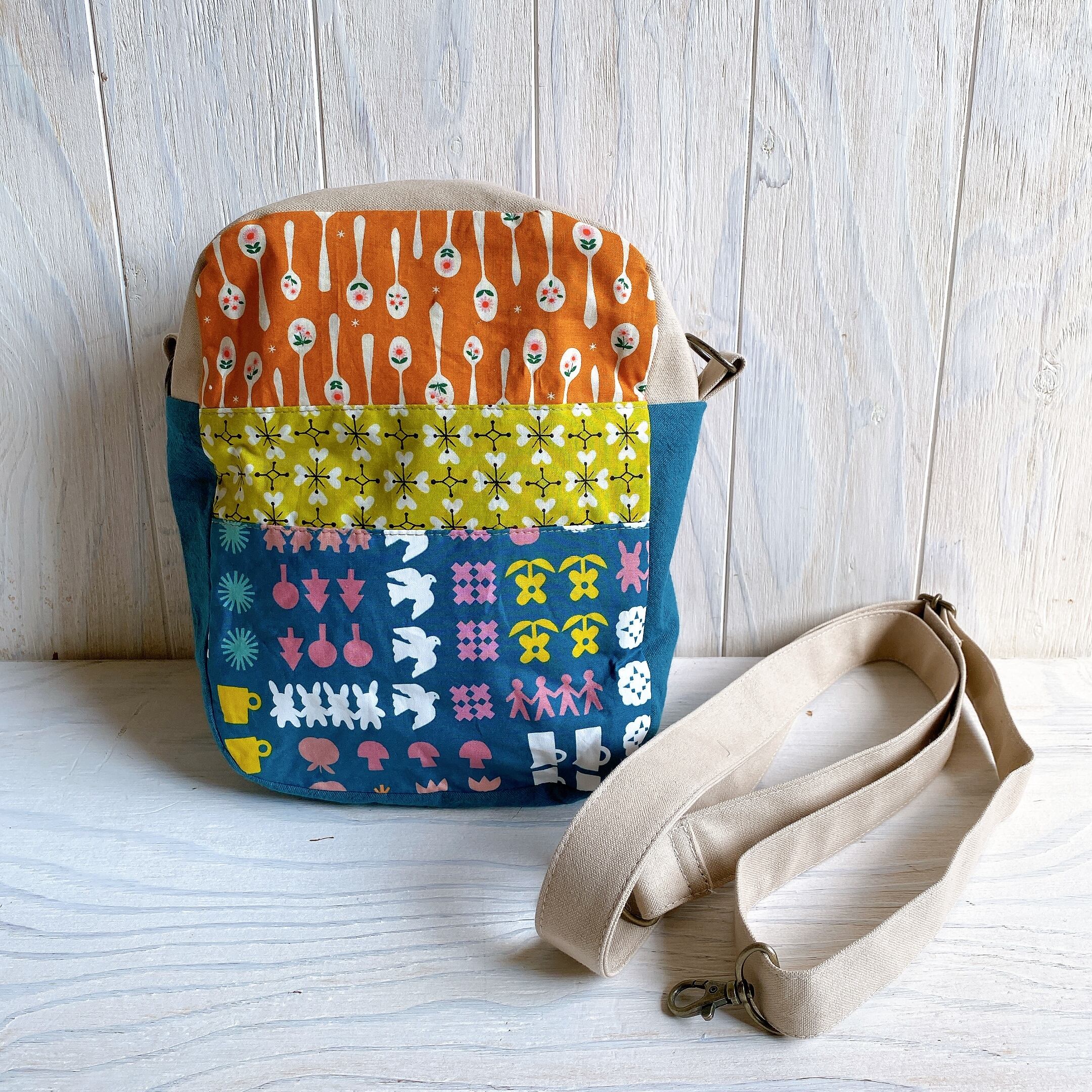 両面さまざまな相性の良い生地を組み合わせて斜め掛けできるおとなのポシェットを作りました。