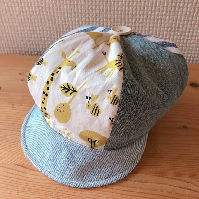 相性の良い3種類の生地を組み合わせて賑やかなキャスケットにしてみました。
